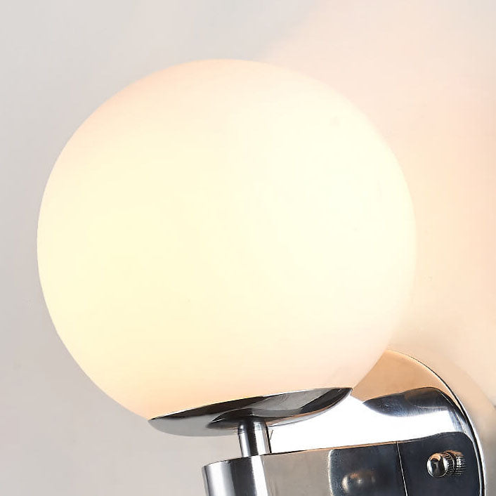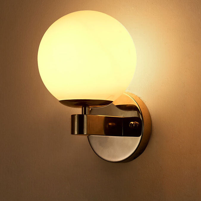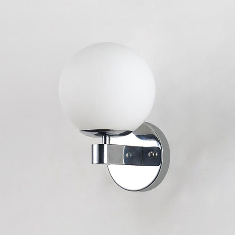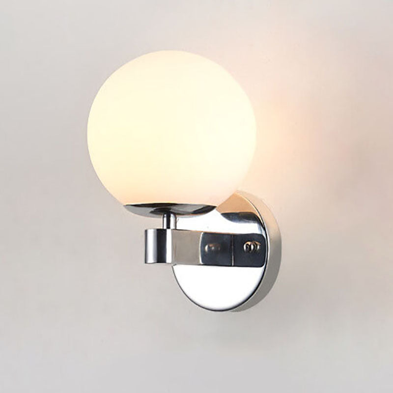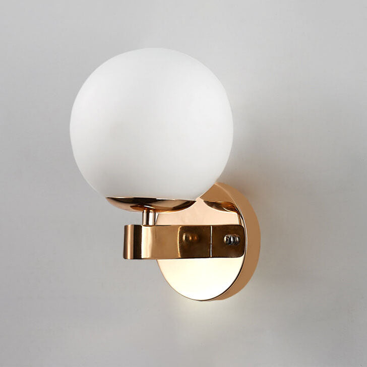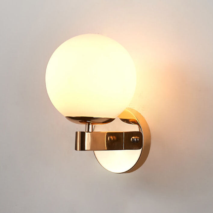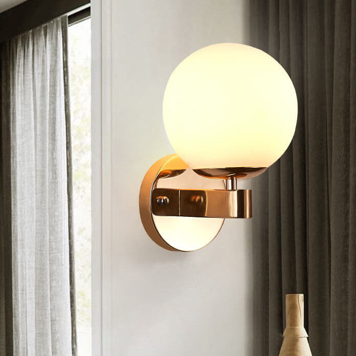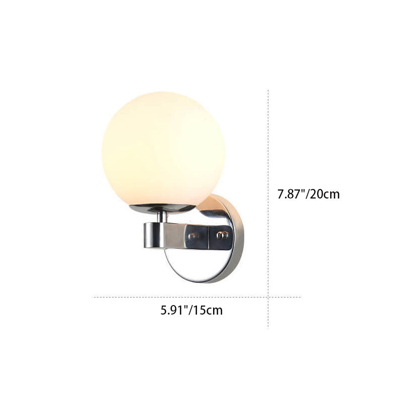 Contemporary Scandinavian Milk White Glass Orb Shade Iron Base 1-Light Wall Sconce Lamp For Living Room