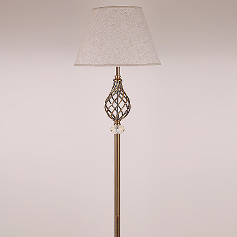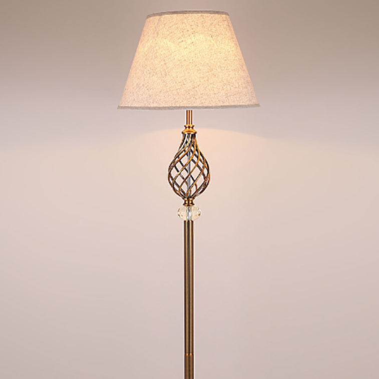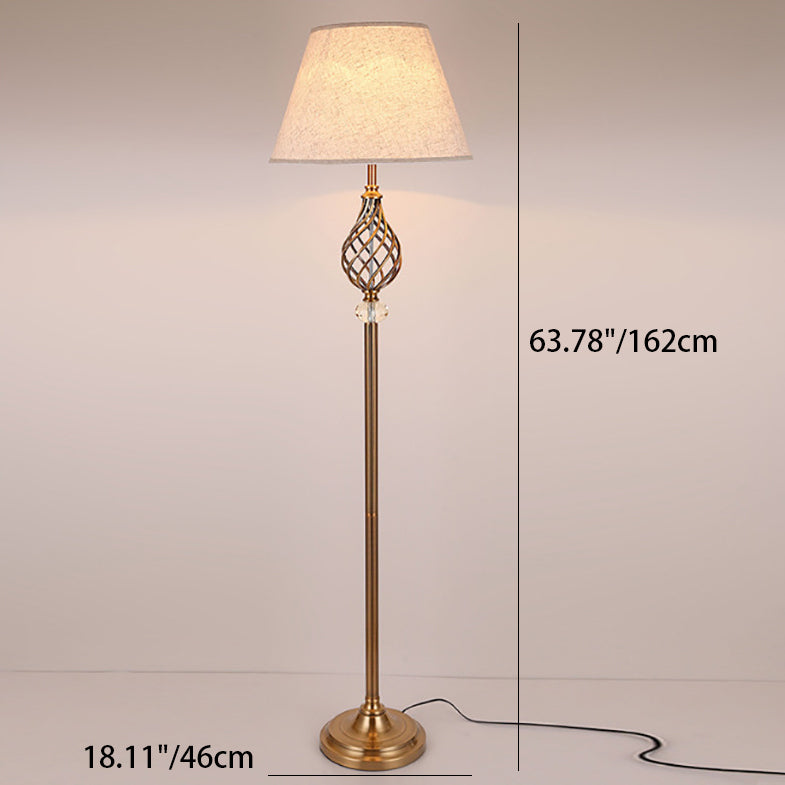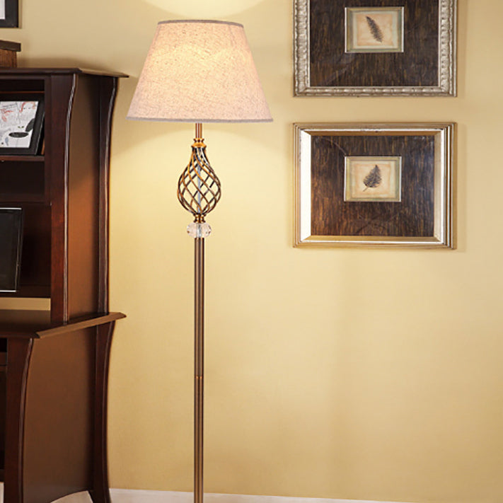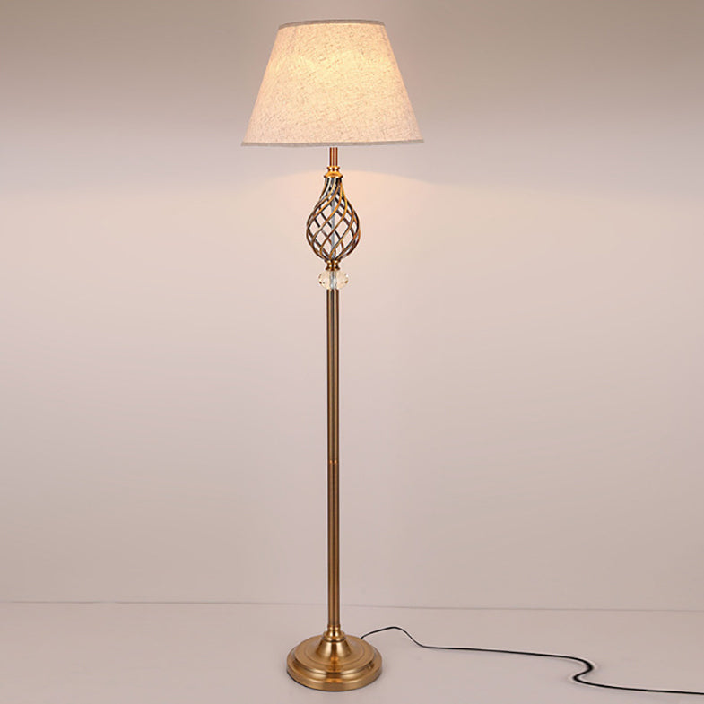 Contemporary Scandinavian Openwork Round Fabric Crystal Iron 1-Light Standing Floor Lamp For Bedroom