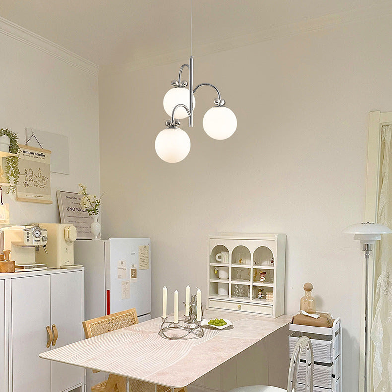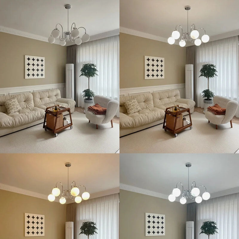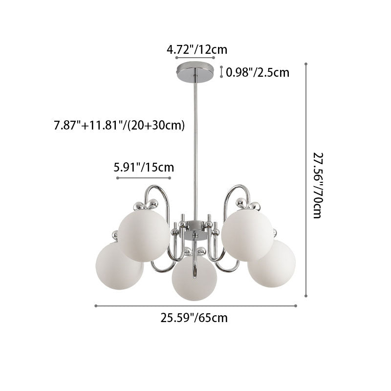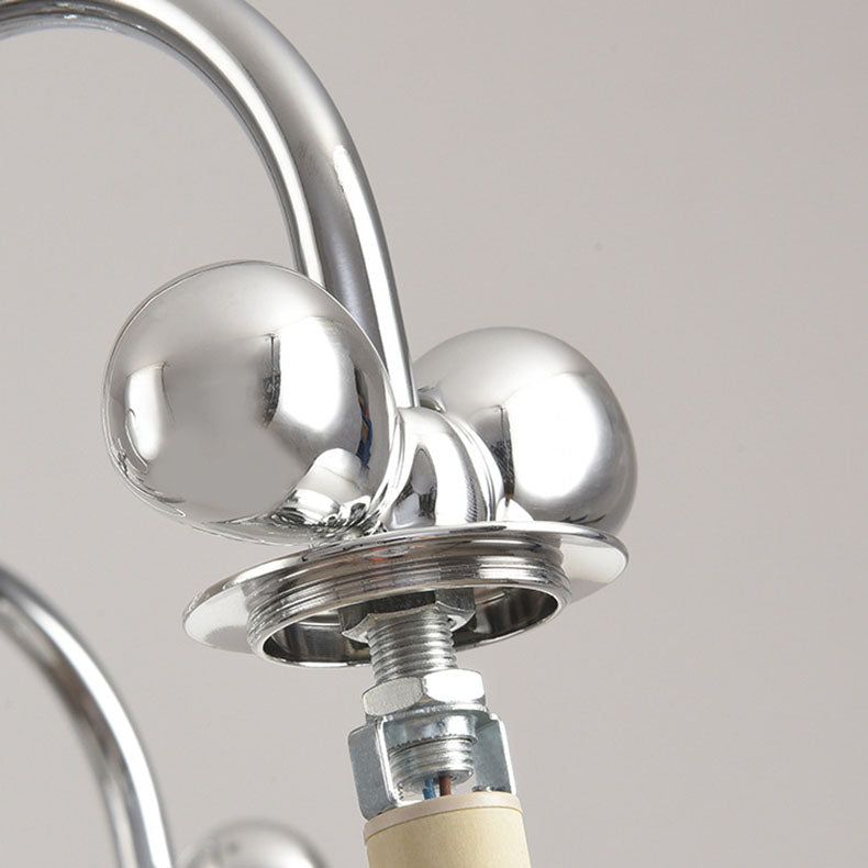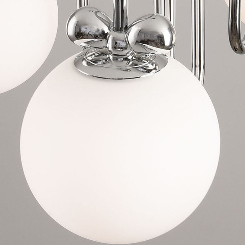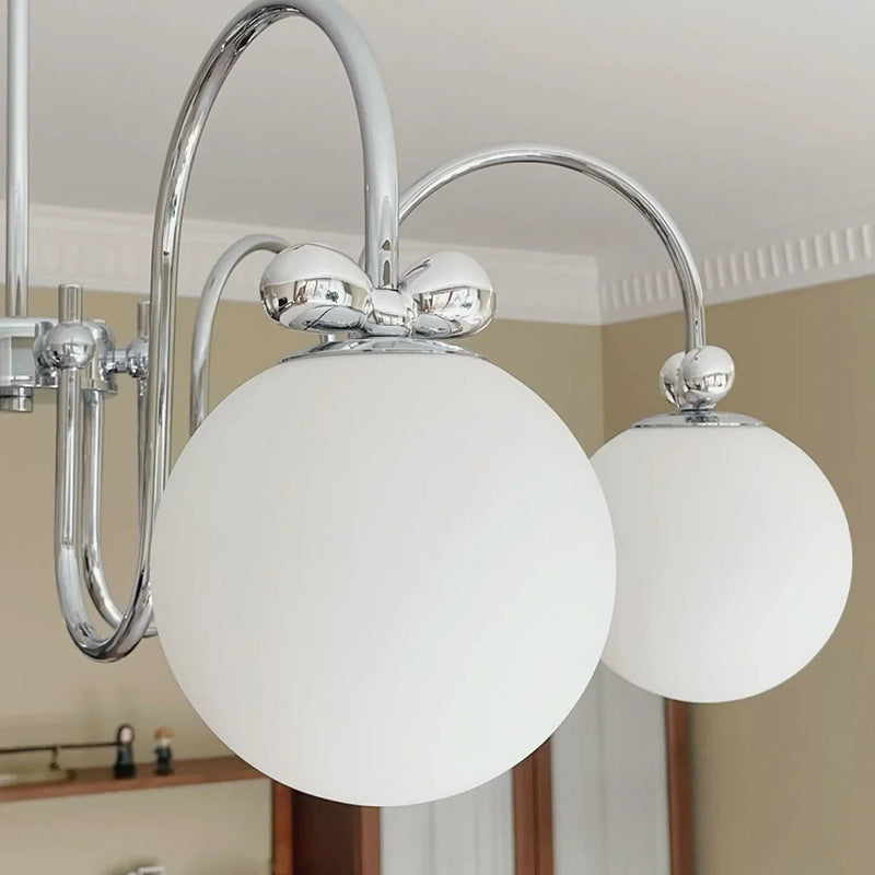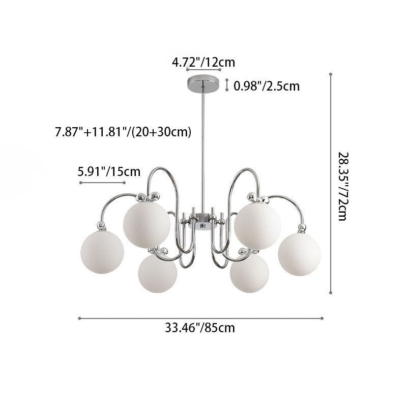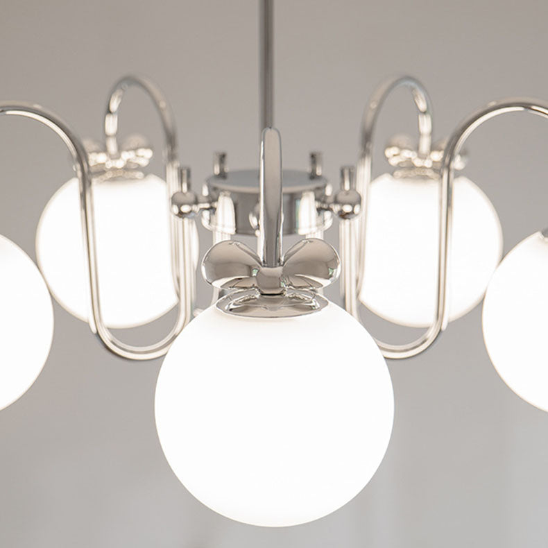 Contemporary Scandinavian Orb Bow Curved Rod Iron Glass 3/5/6 Light Chandelier For Living Room