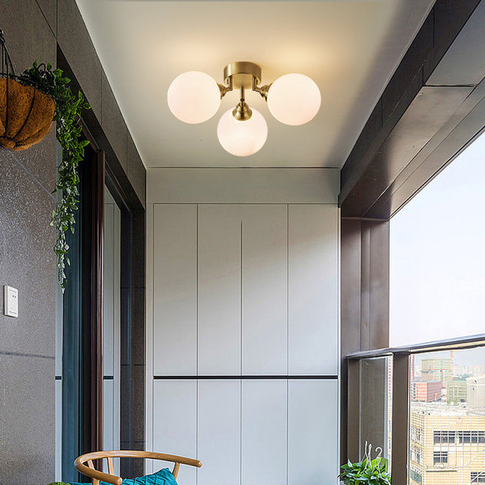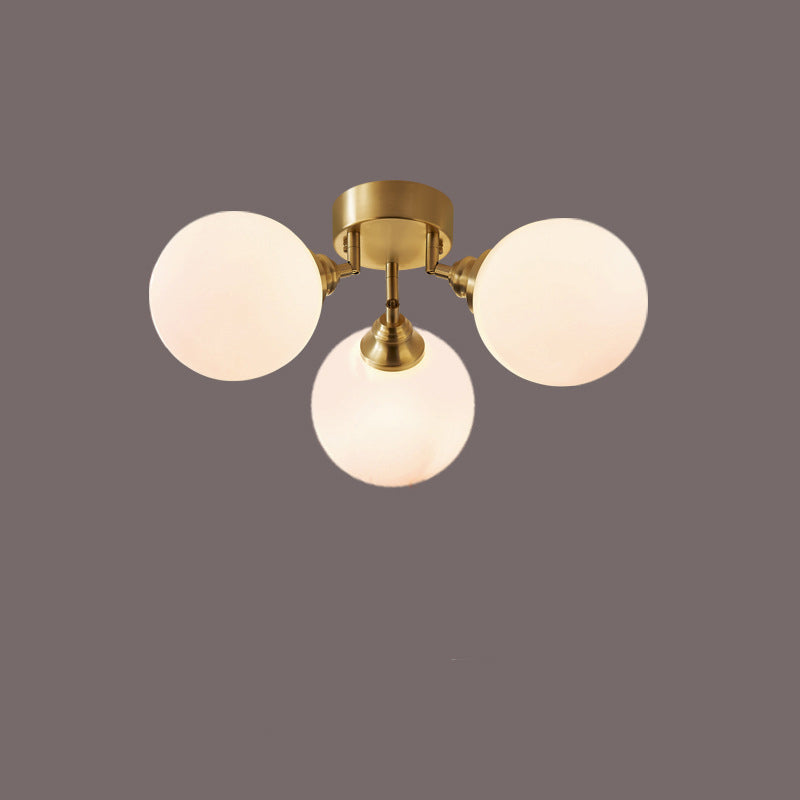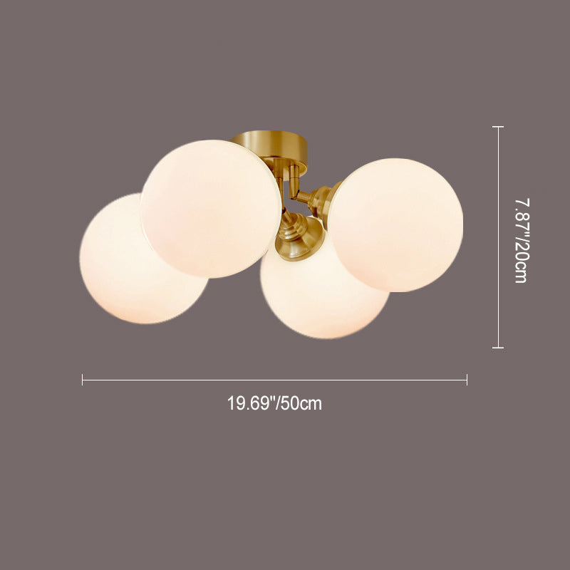 Contemporary Scandinavian Orb Branch Copper Glass 3/4 Light Semi-Flush Mount Ceiling Light For Living Room