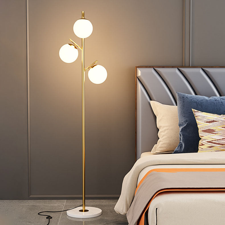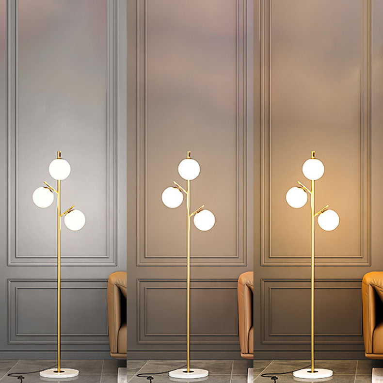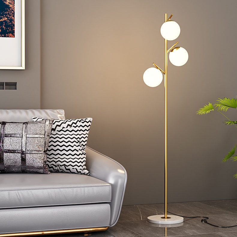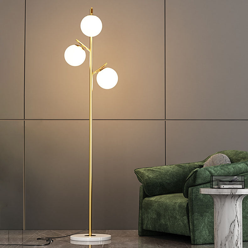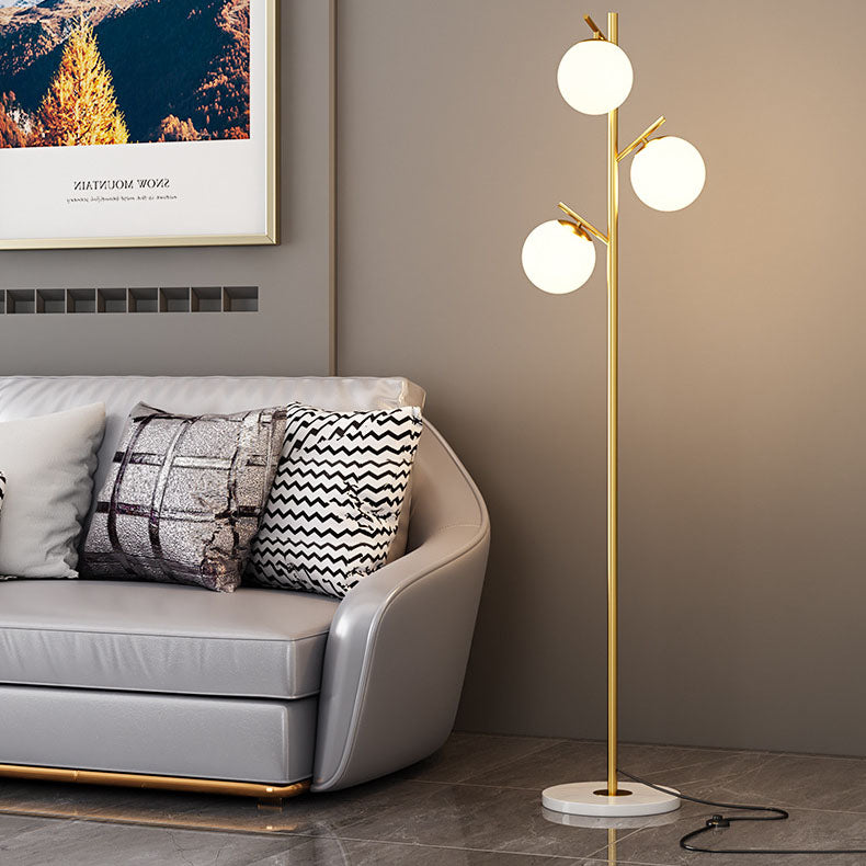 Contemporary Scandinavian Orb Pillar Metal Marble Glass 3-Light Standing Floor Lamp For Living Room