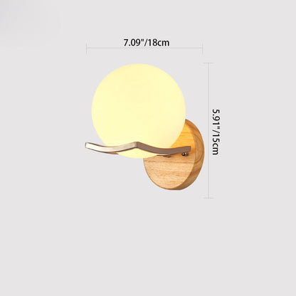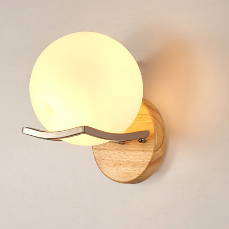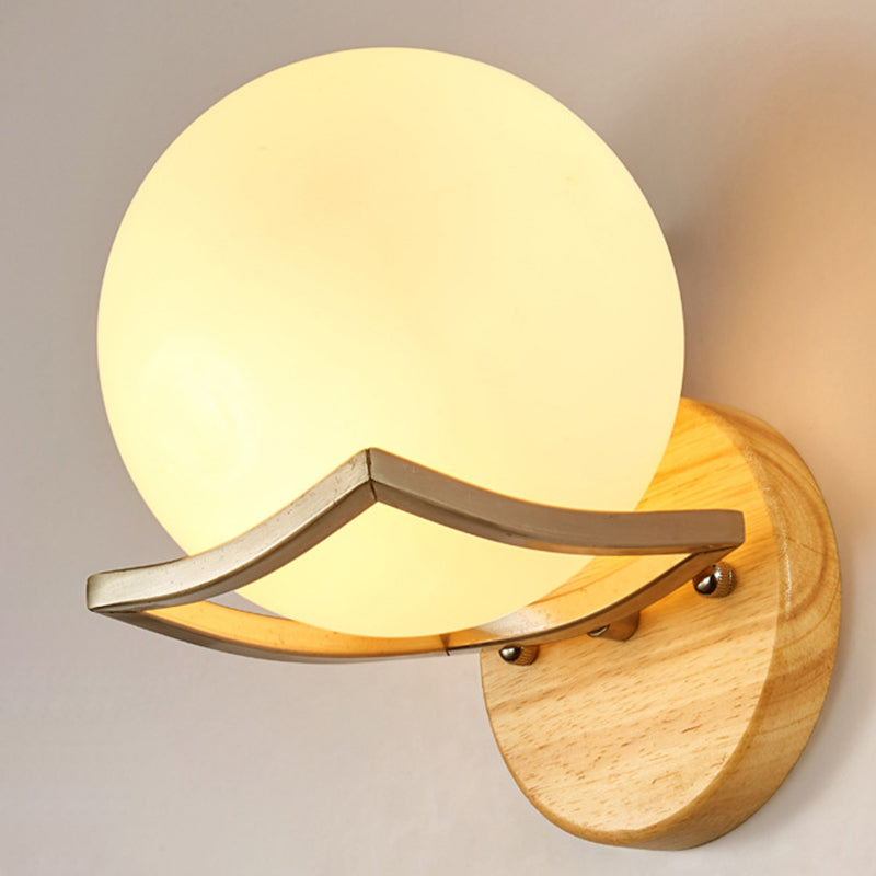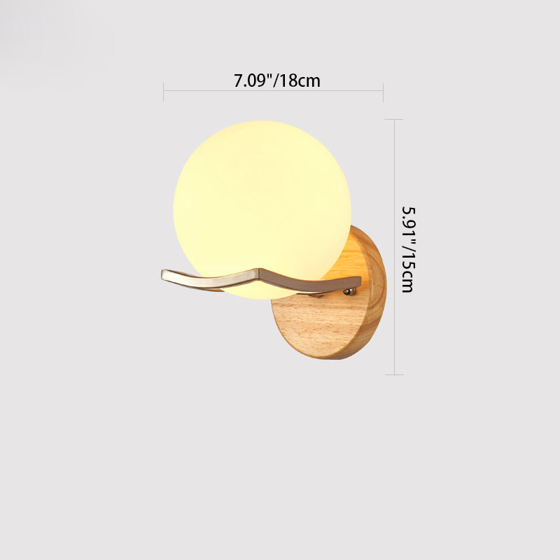Contemporary Scandinavian Orb Round Glass Wood Metal 1-Light Wall Sconce Lamp For Living Room