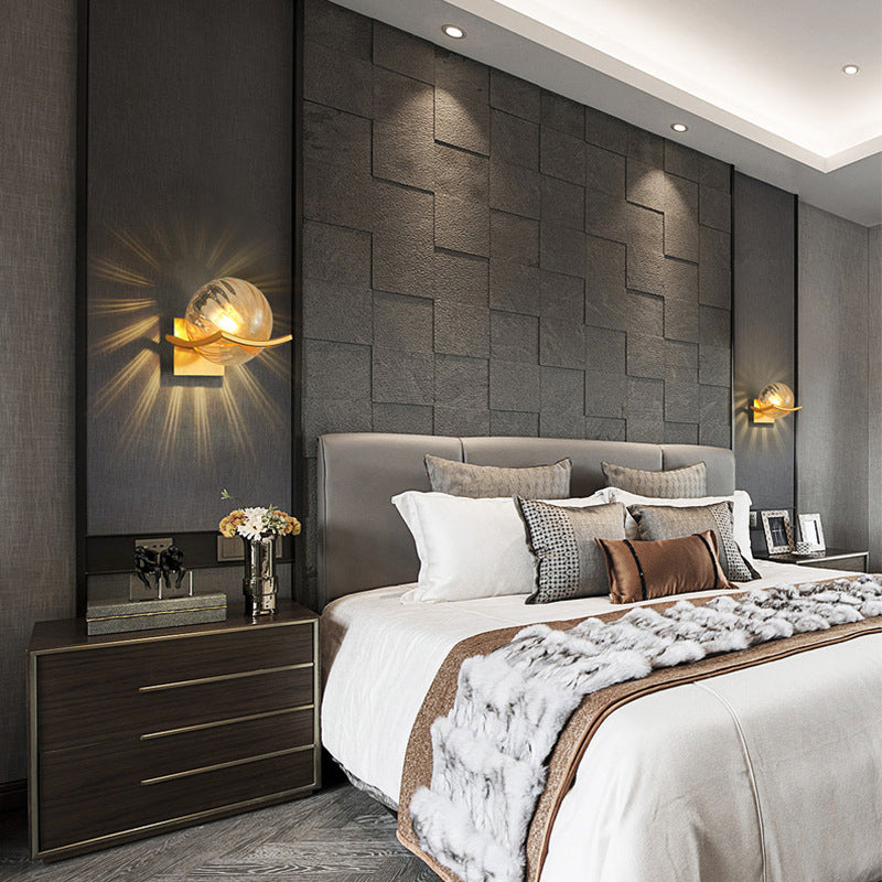 Contemporary Scandinavian Orb Watermarked Glass Hardware 1-Light Wall Sconce Lamp For Living Room