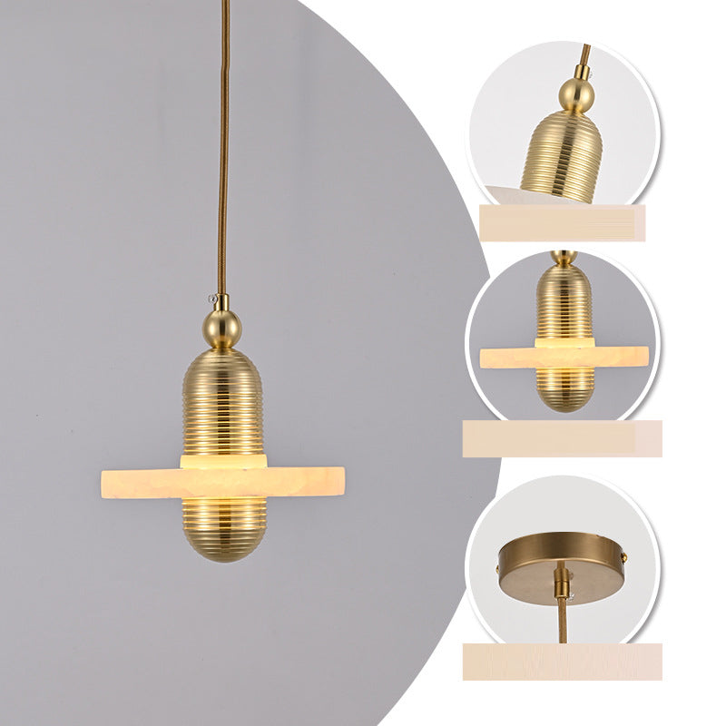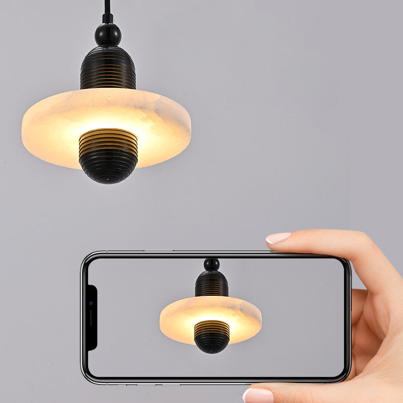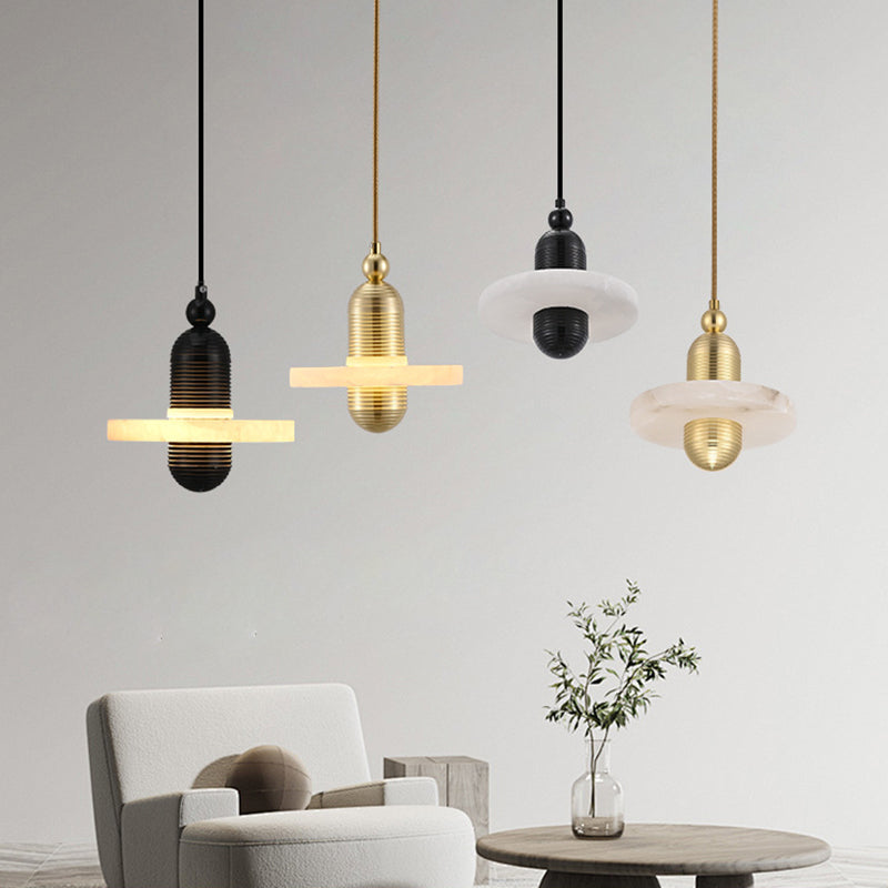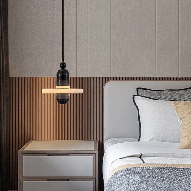 Contemporary Scandinavian Oval Round Iron Marble LED Pendant Light For Bedroom