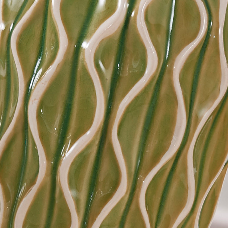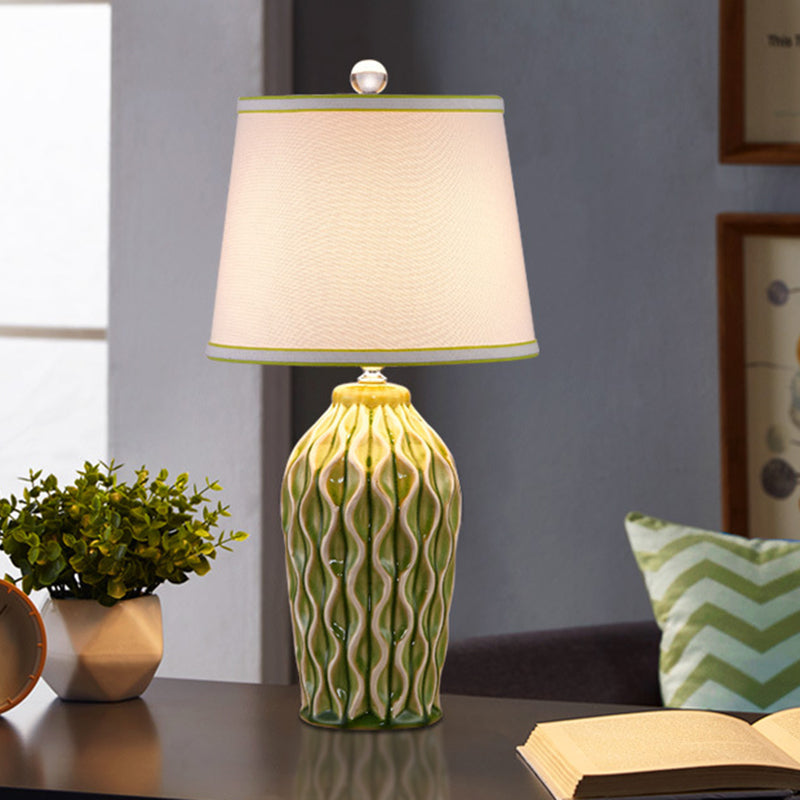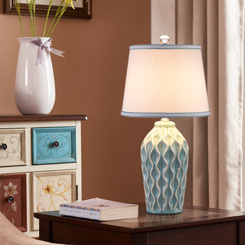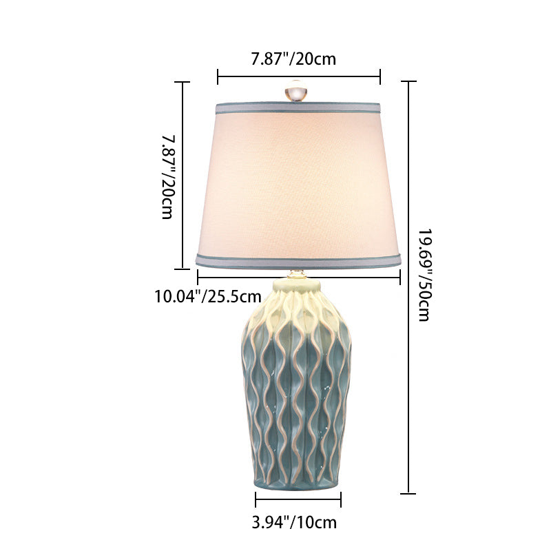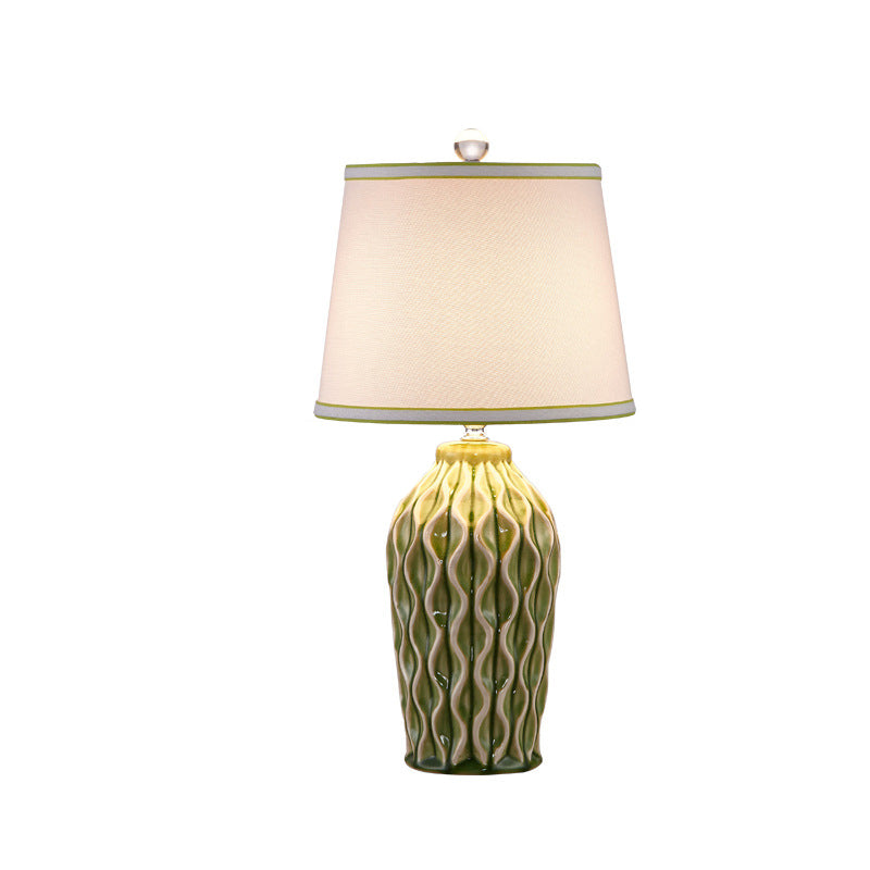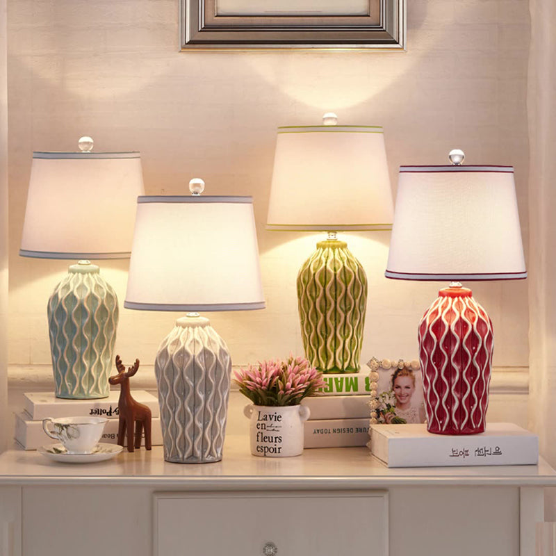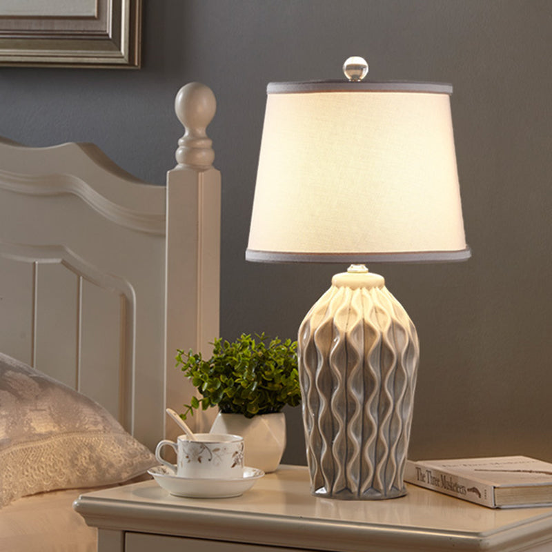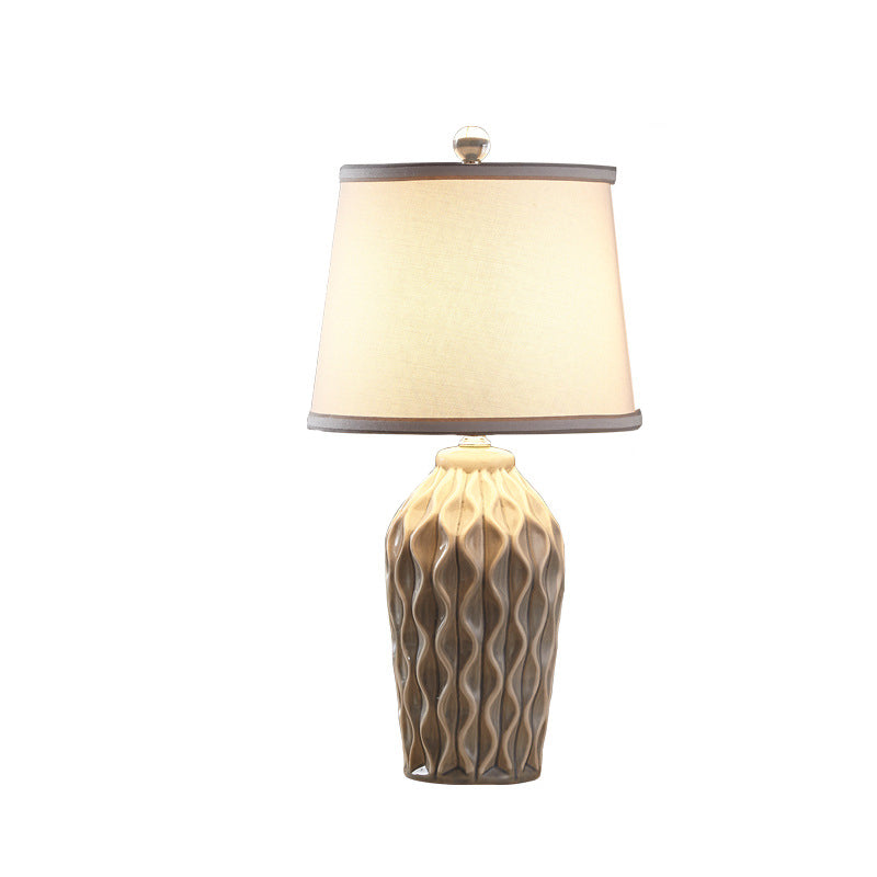Contemporary Scandinavian Patterned Sculpture Round Fabric Ceramic 1-Light Table Lamp For Bedroom