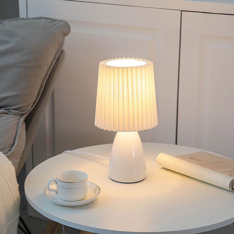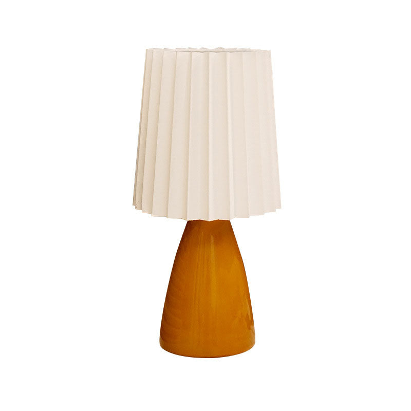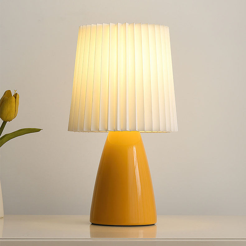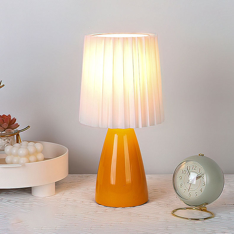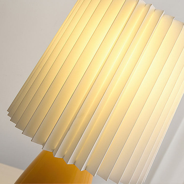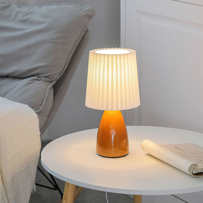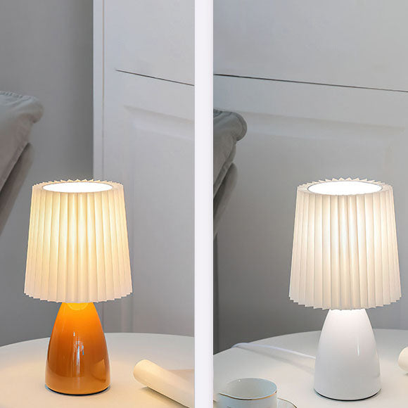 Contemporary Scandinavian Pleated Fabric Glass Base 1-Light Table Lamp For Bedroom