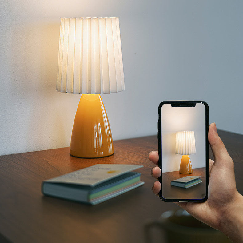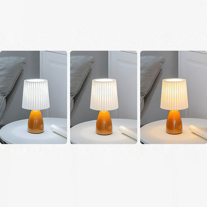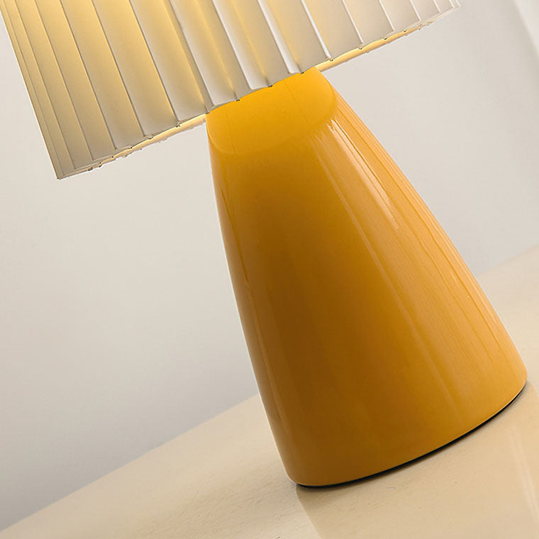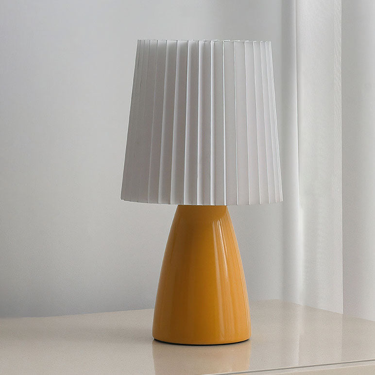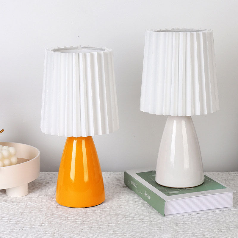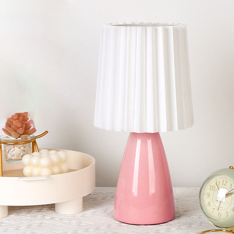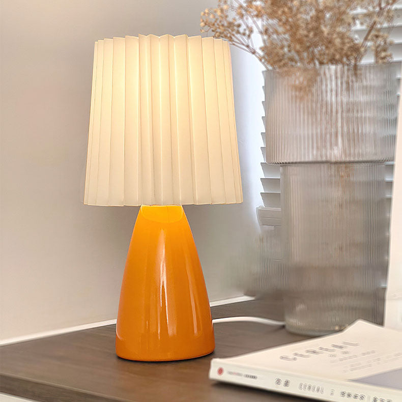 Contemporary Scandinavian Pleated Fabric Glass Base 1-Light Table Lamp For Bedroom