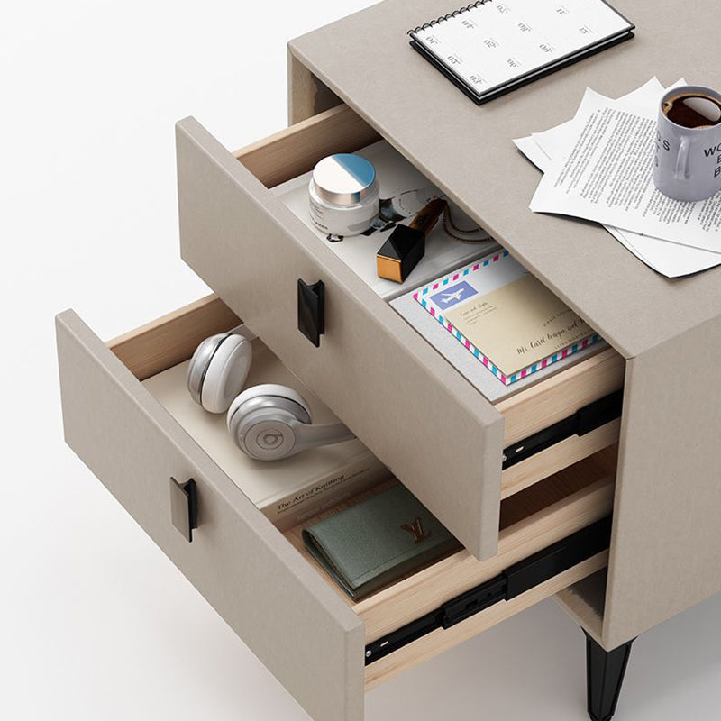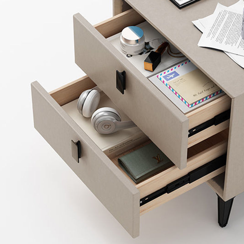 Contemporary Scandinavian Rectangular PU Leather Solid Wood Nightstand 2-Drawer For Bedroom