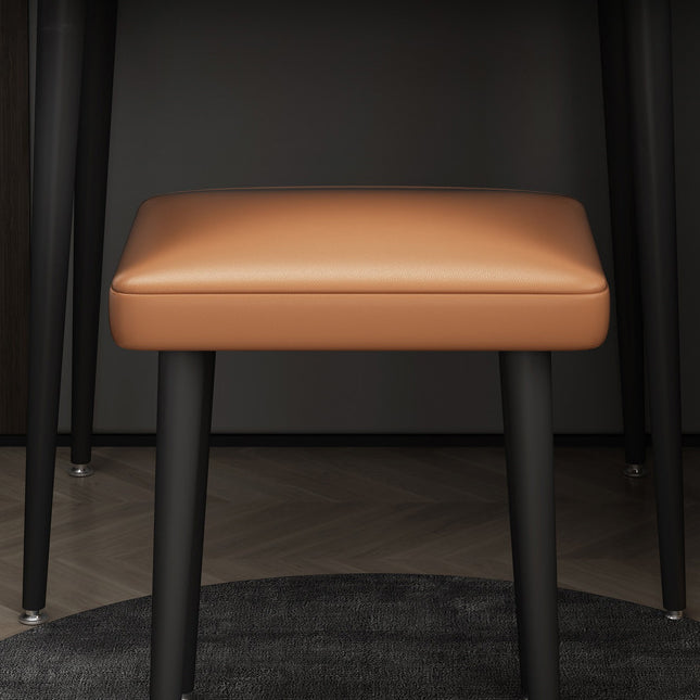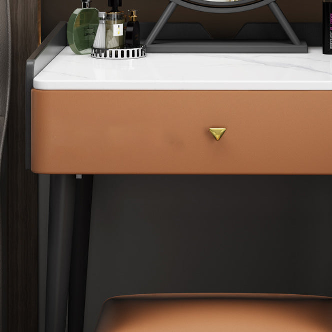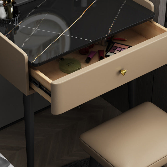Contemporary Scandinavian Rectangular Rock Panel Microfiber Leather Carbon Steel Makeup Vanity 1-Drawer For Bedroom