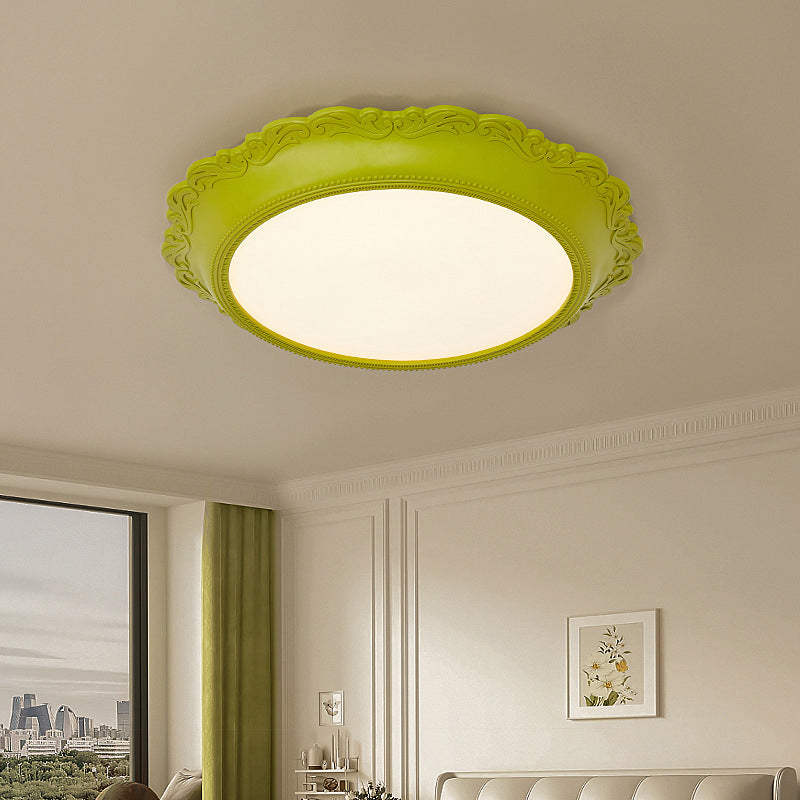 Contemporary Scandinavian Round Acrylic Resin Iron LED Flush Mount Ceiling Light For Bedroom