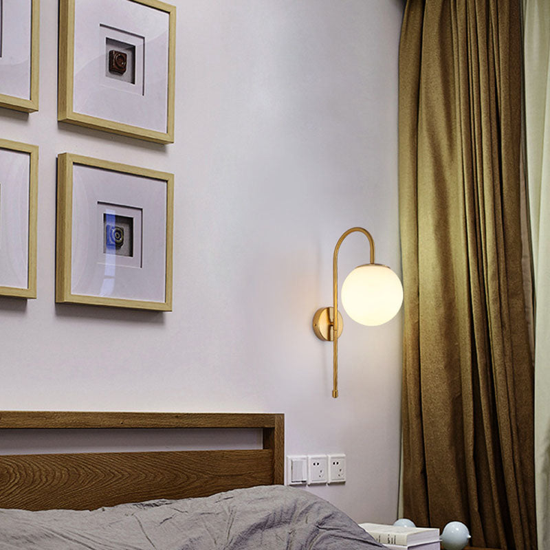 Contemporary Scandinavian Round Ball Iron Glass 1-Light Wall Sconce Lamp For Bedroom