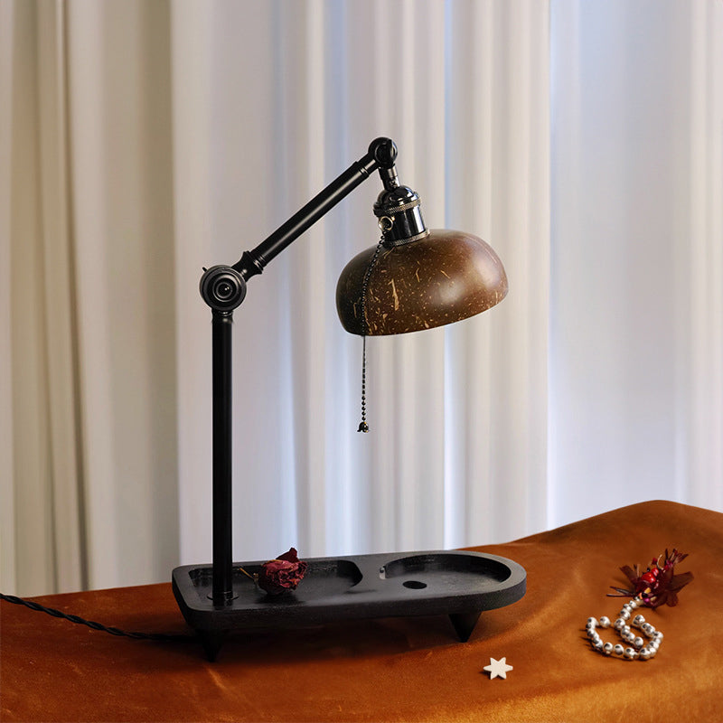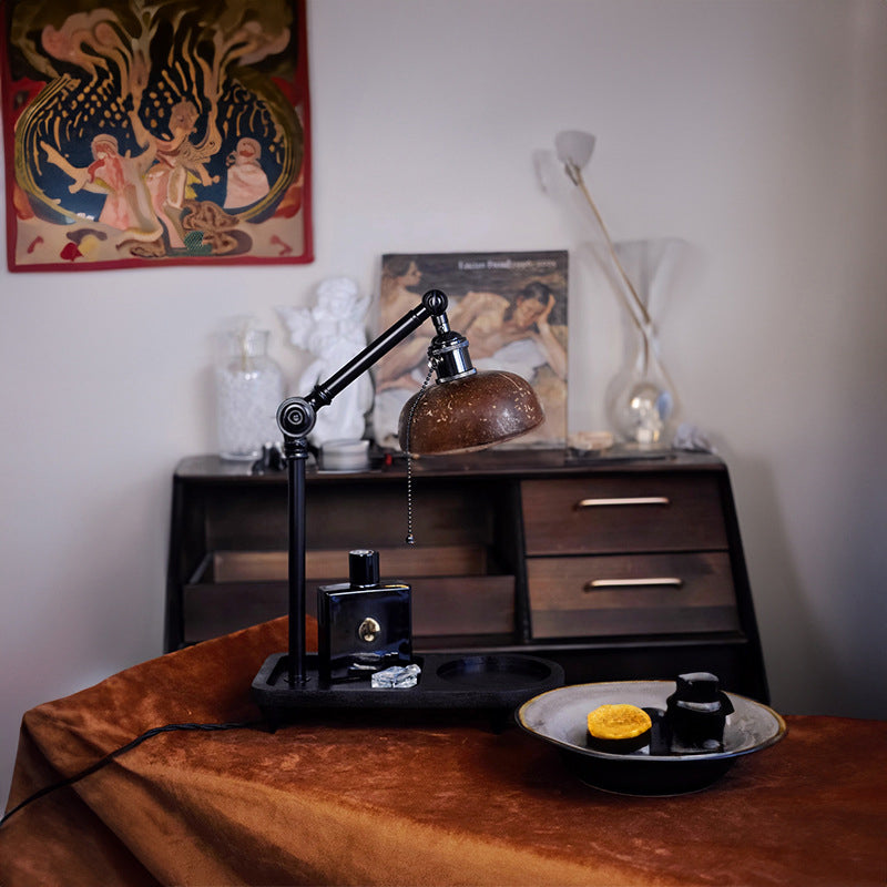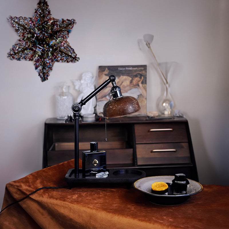 Contemporary Scandinavian Round Coconut Shell Metal 1-Light Aroma Melting Wax Table Lamp For Living Room