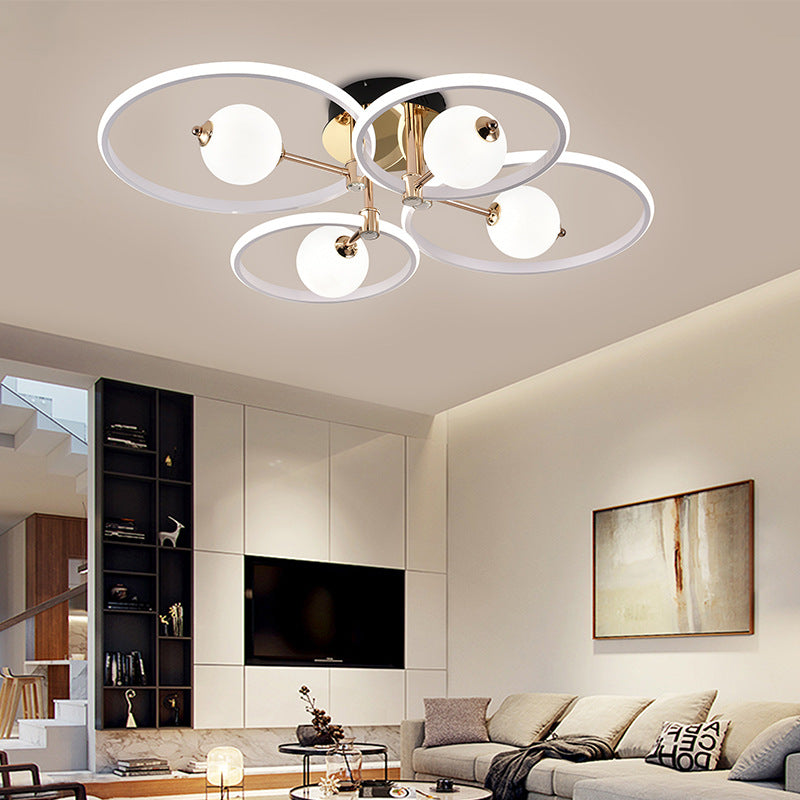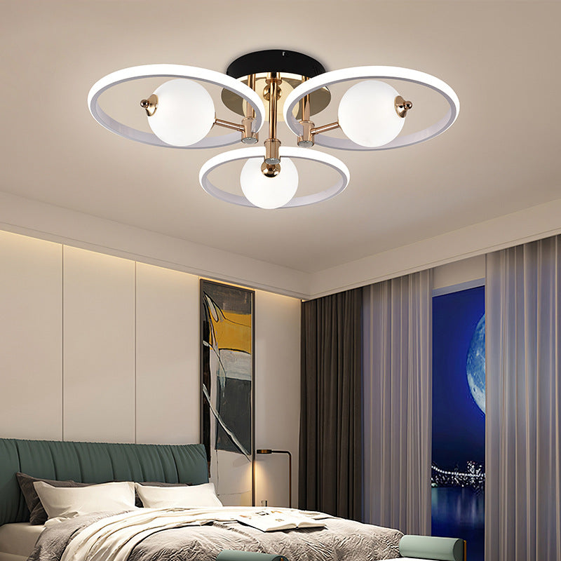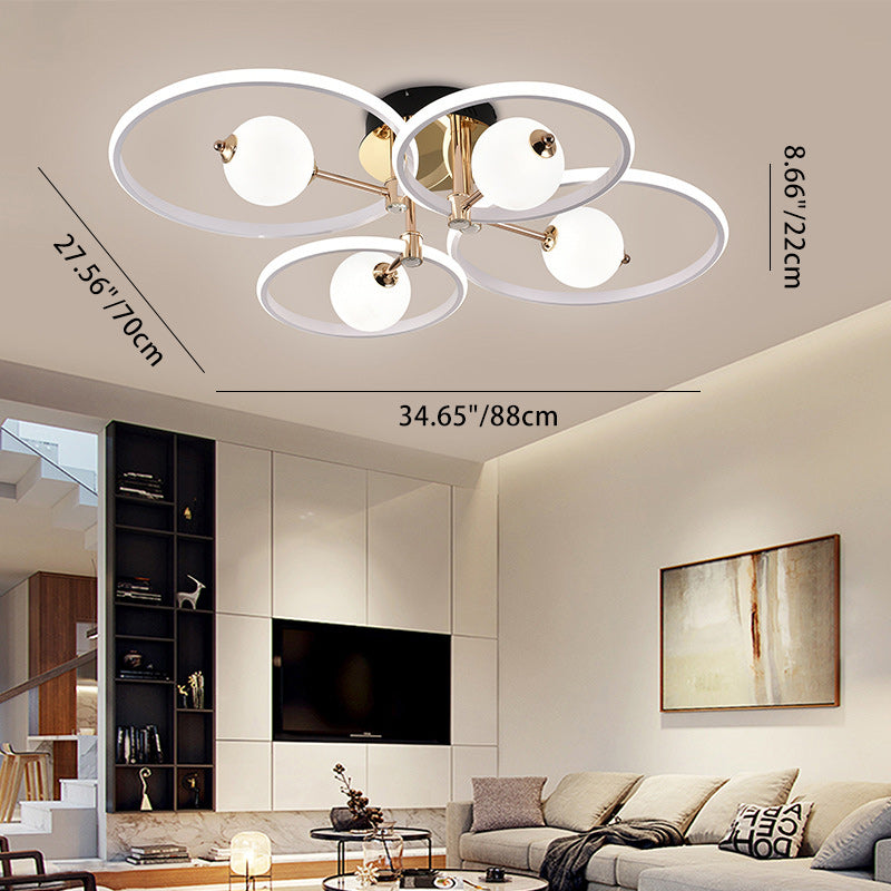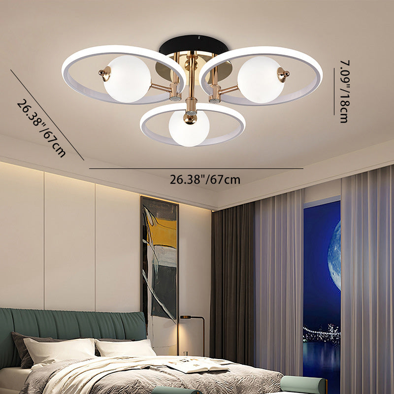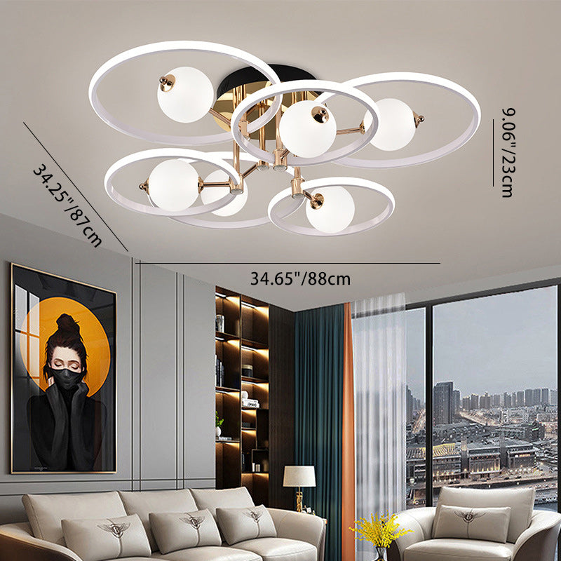 Contemporary Scandinavian Round Dome Orb Aluminum Acrylic LED Semi-Flush Mount Ceiling Light For Living Room