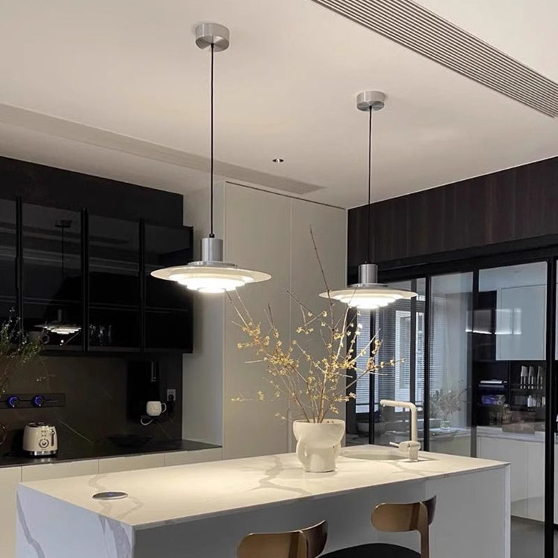 Contemporary Scandinavian Round Flying Saucer Aluminum 1-Light Pendant Light For Living Room