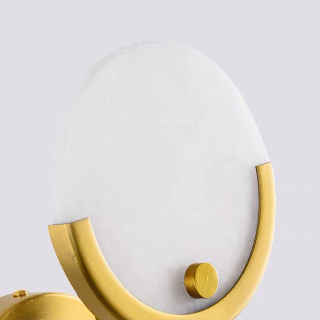 Contemporary Scandinavian Round Linear Iron Marble 1-Light Wall Sconce Lamp For Bedroom