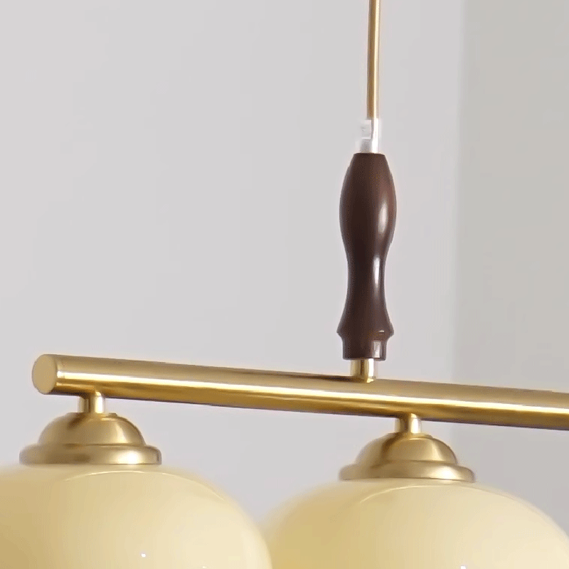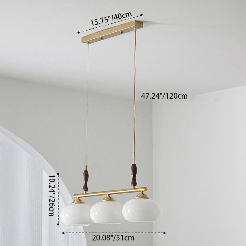 Contemporary Scandinavian Round Linear Iron Wood Glass 3-Light Chandelier For Dining Room