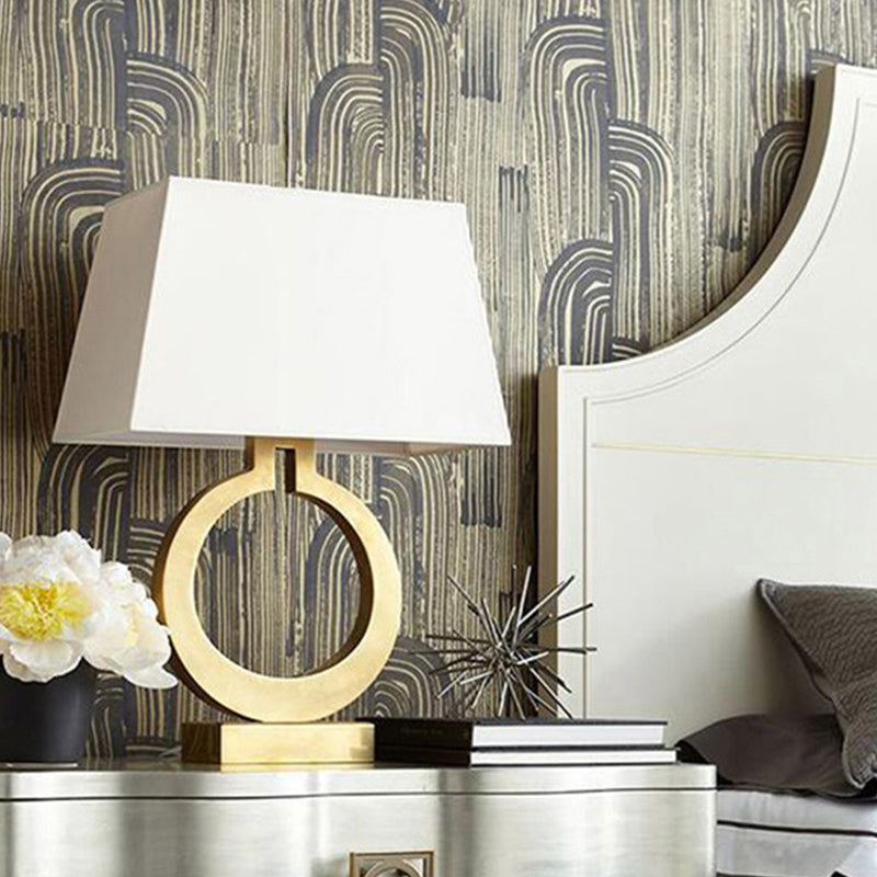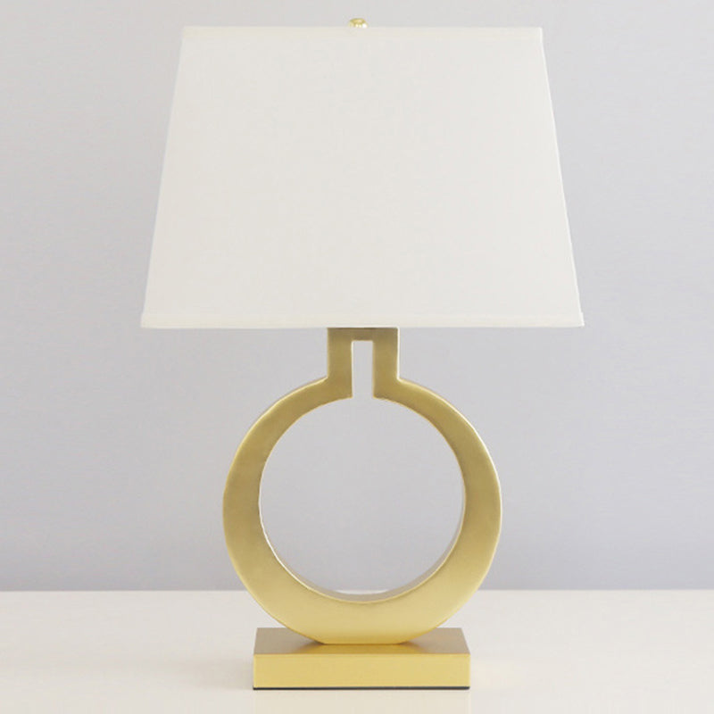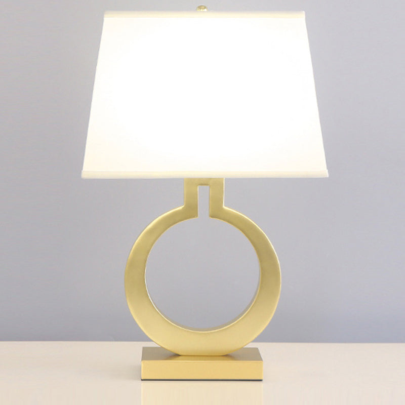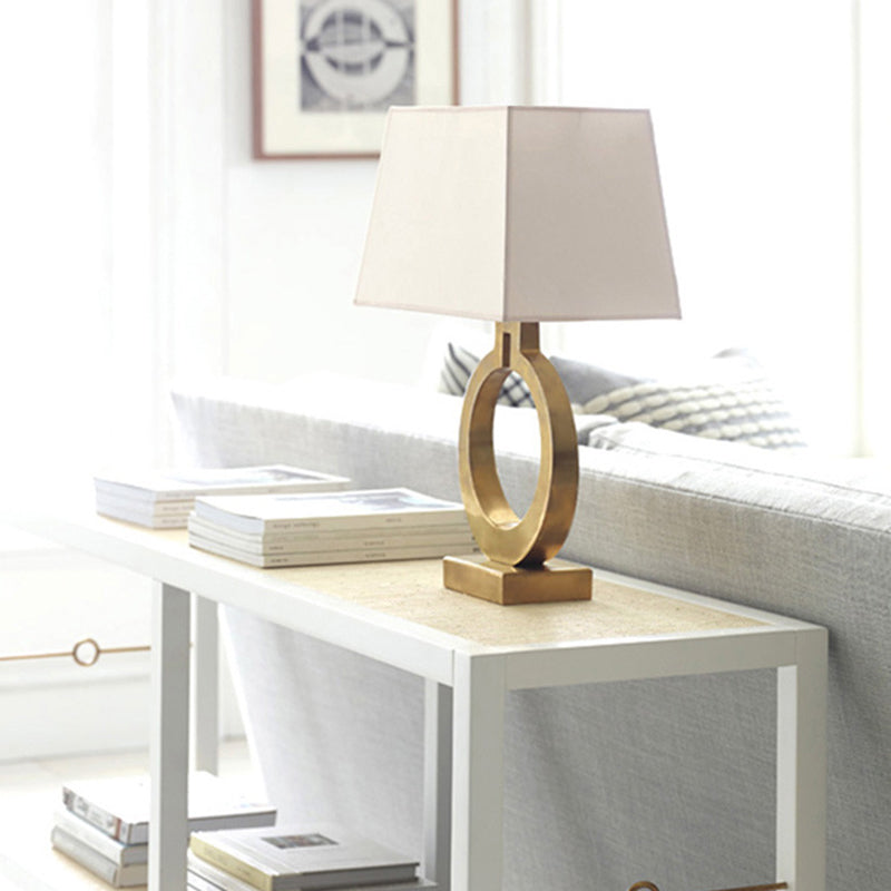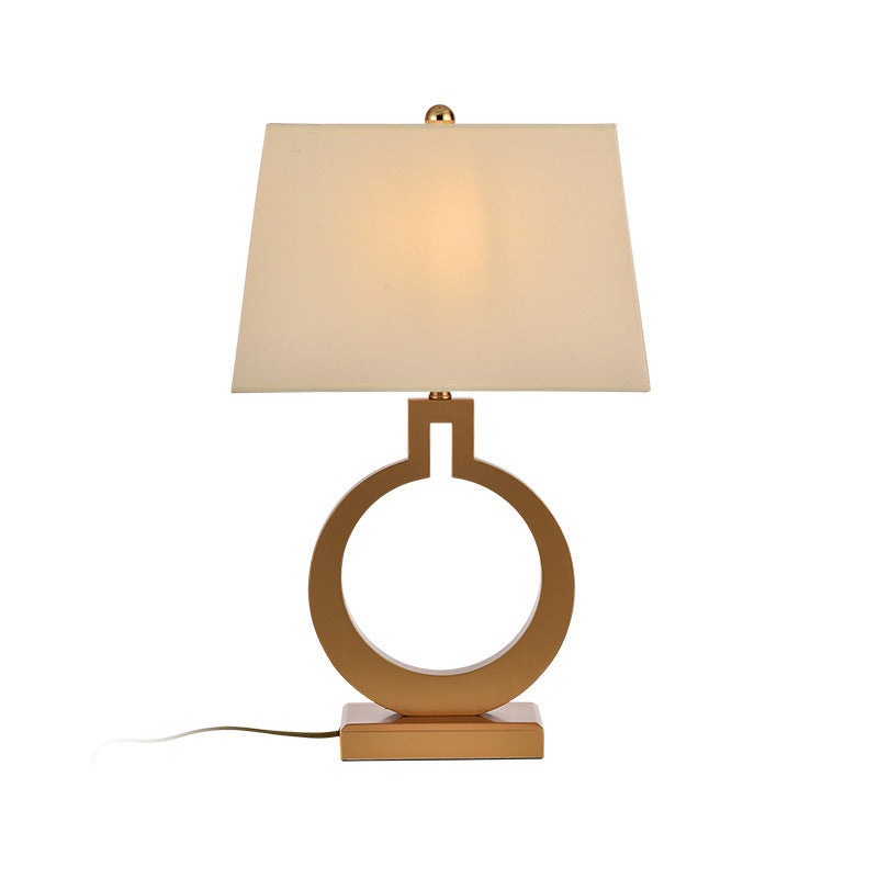 Contemporary Scandinavian Round Square Fabric Hardware 1-Light Table Lamp For Bedroom