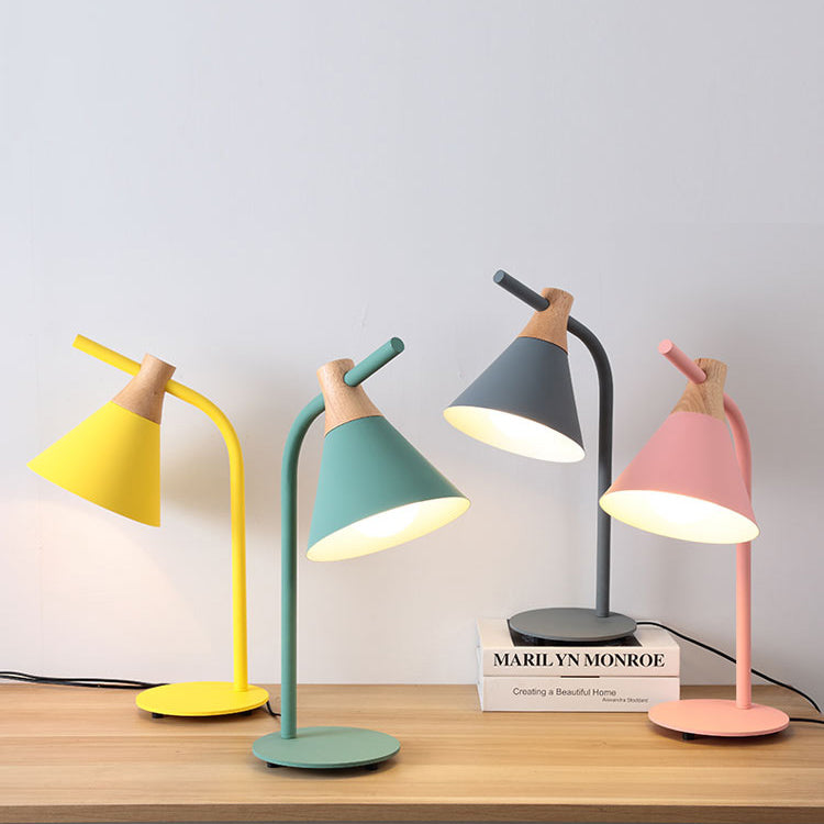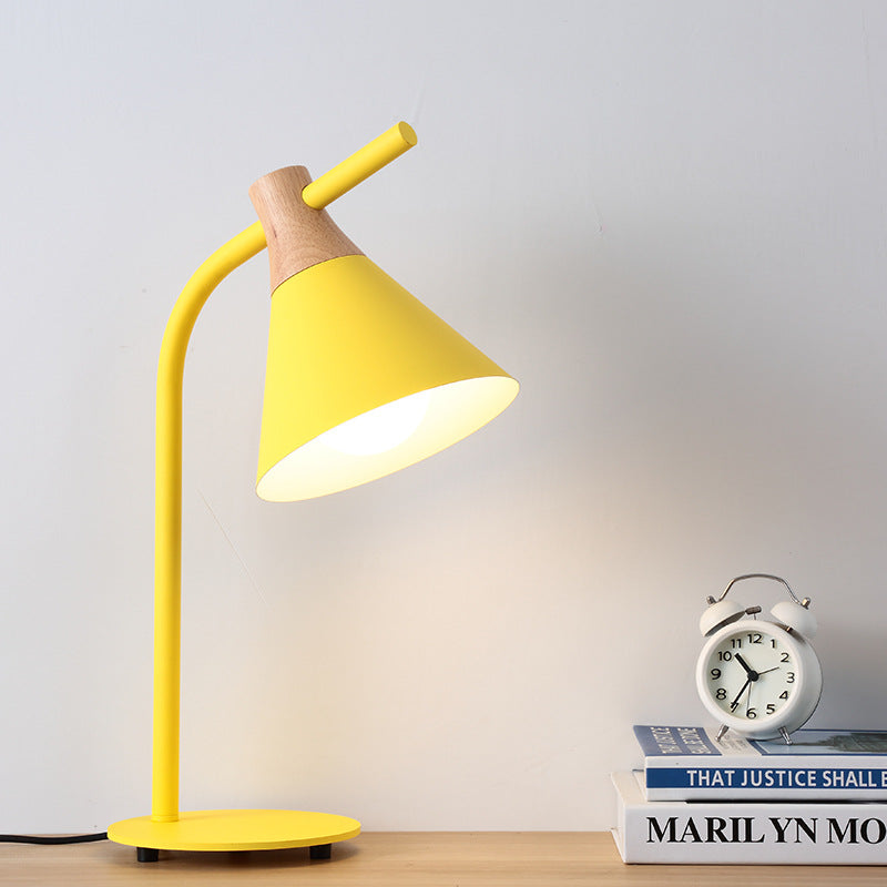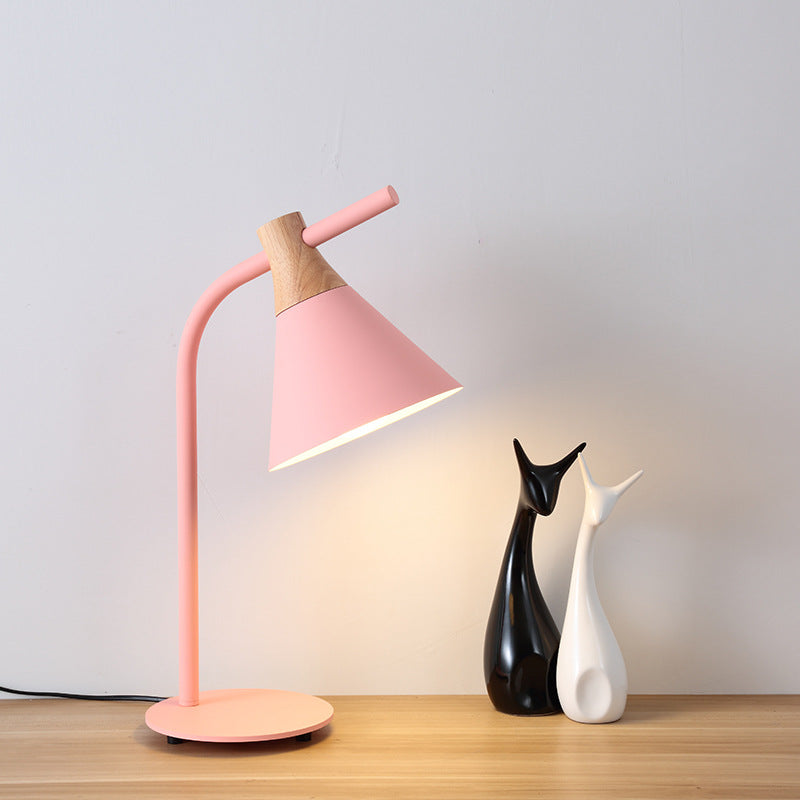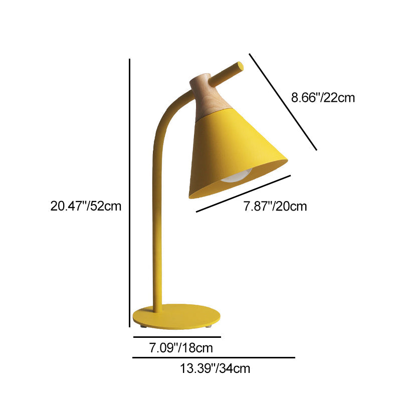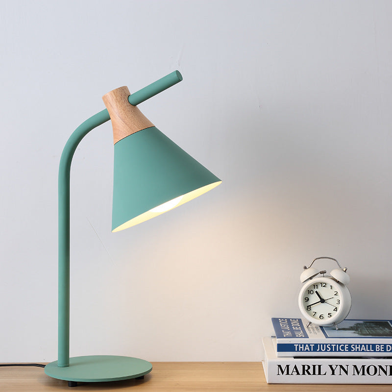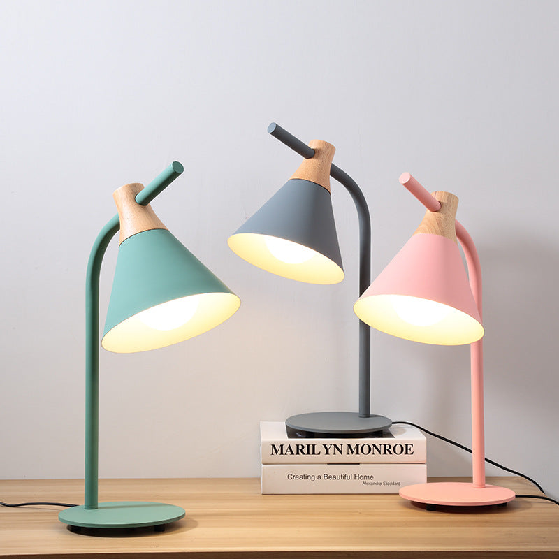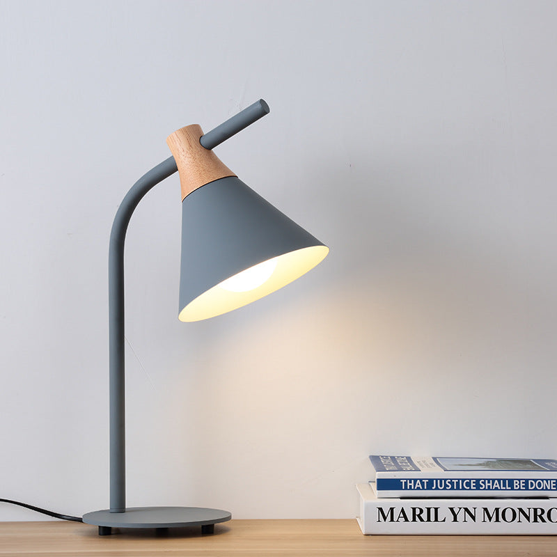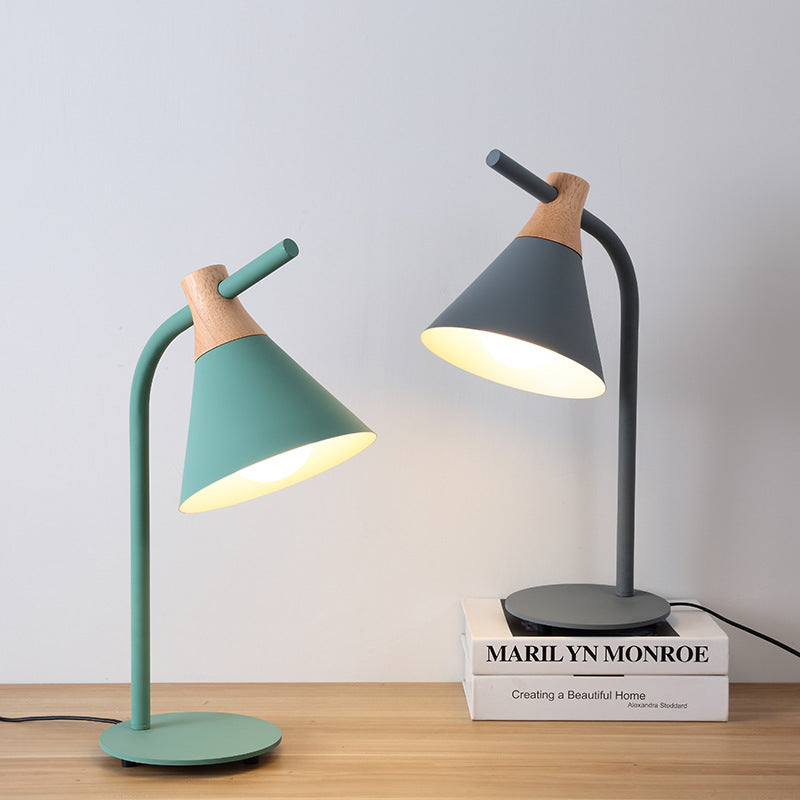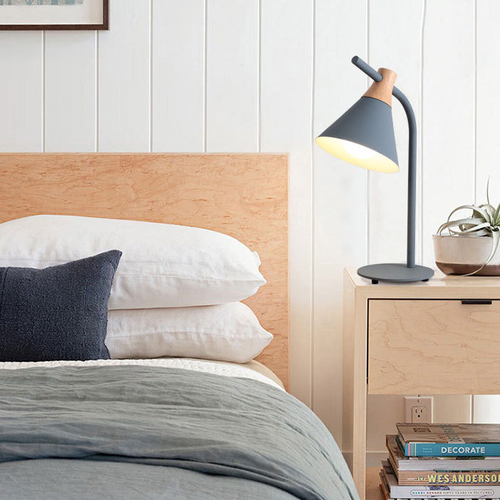 Contemporary Scandinavian Solid Wood Iron Conical Shade 1-Light Table Lamp For Bedroom