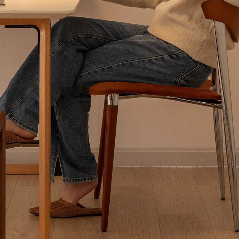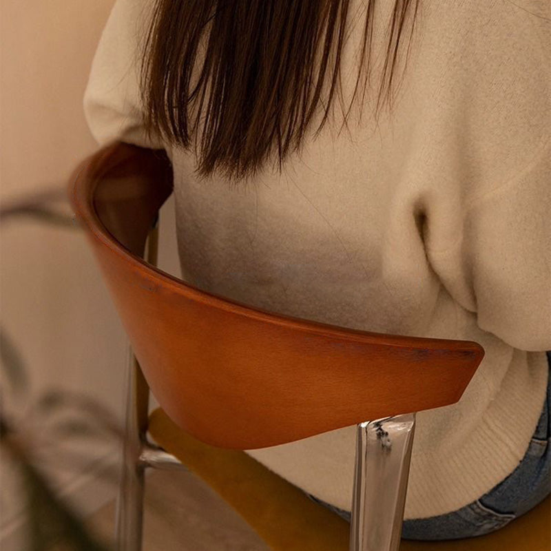 Contemporary Scandinavian Square Curved Arc Velvet Iron Wood Dining Chair Backrest Armless For Dining Room