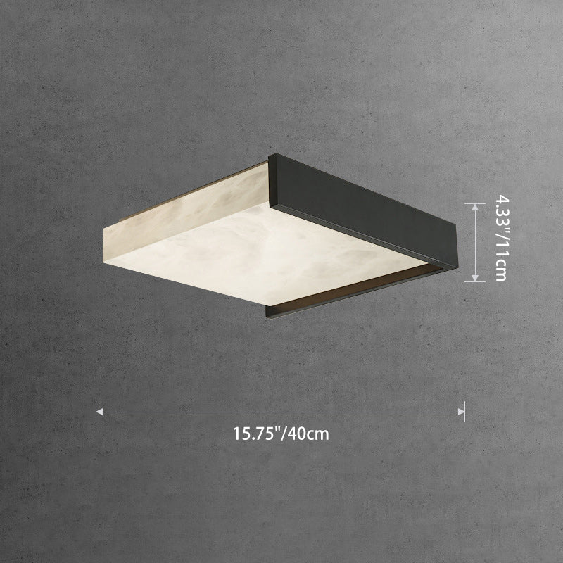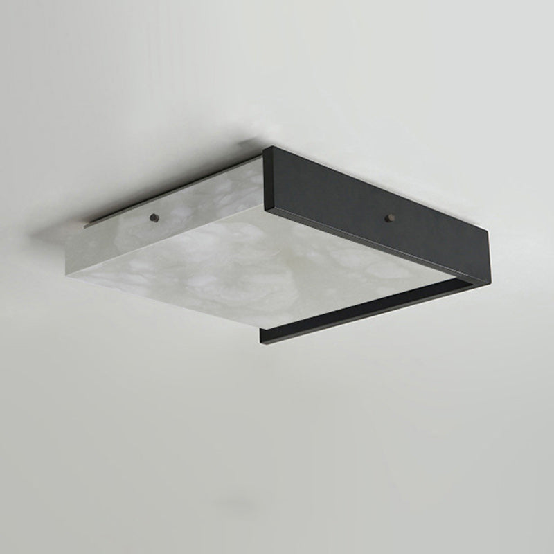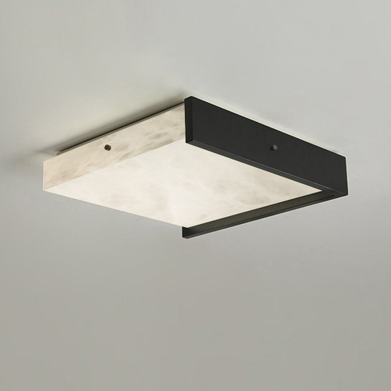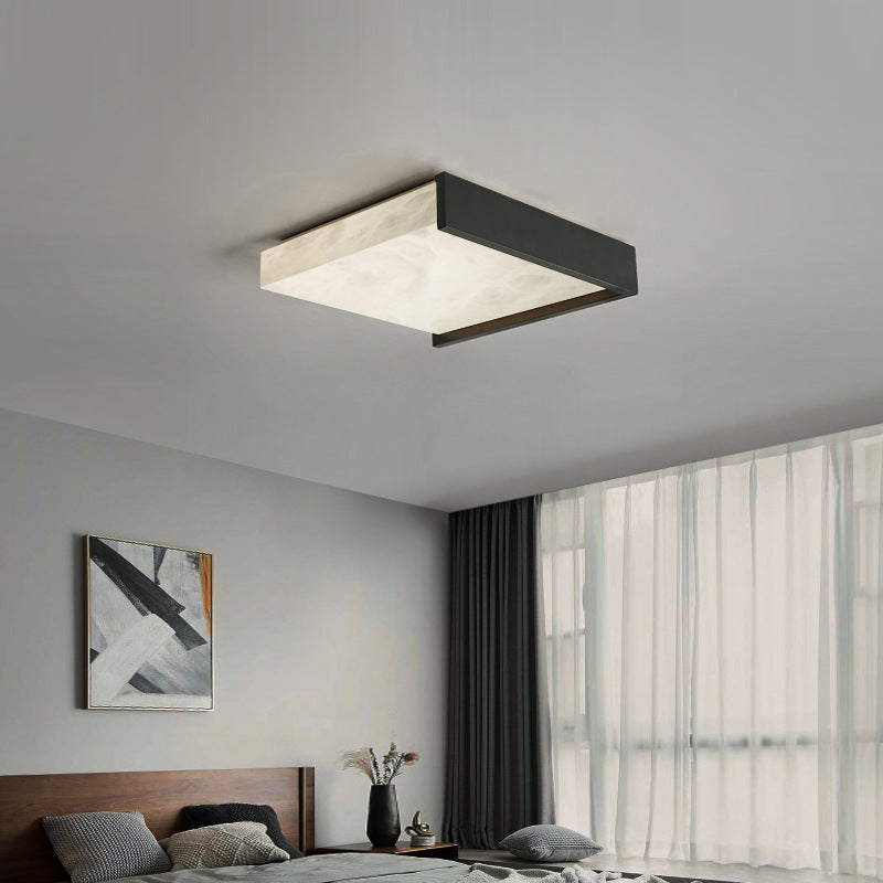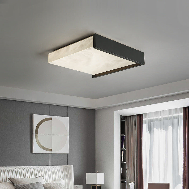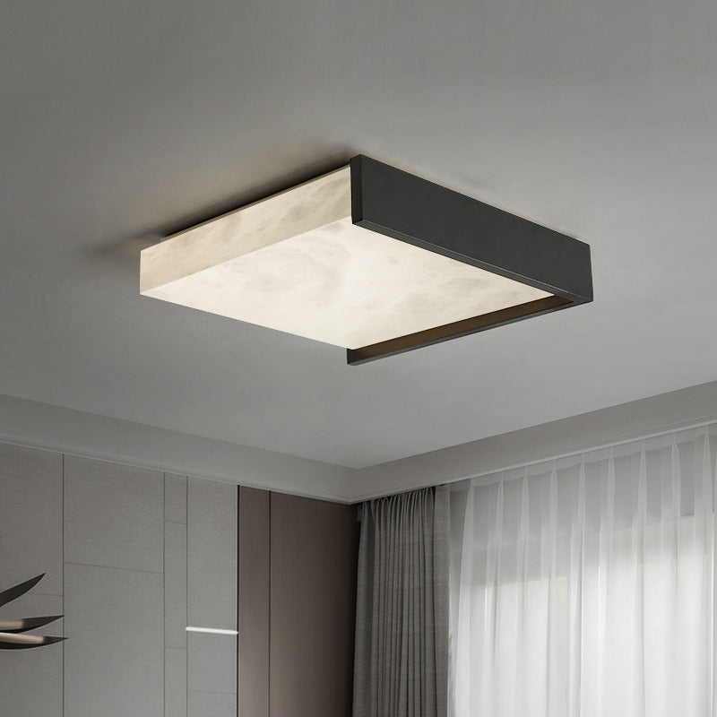 Contemporary Scandinavian Square Marble Copper LED Flush Mount Ceiling Light For Bedroom