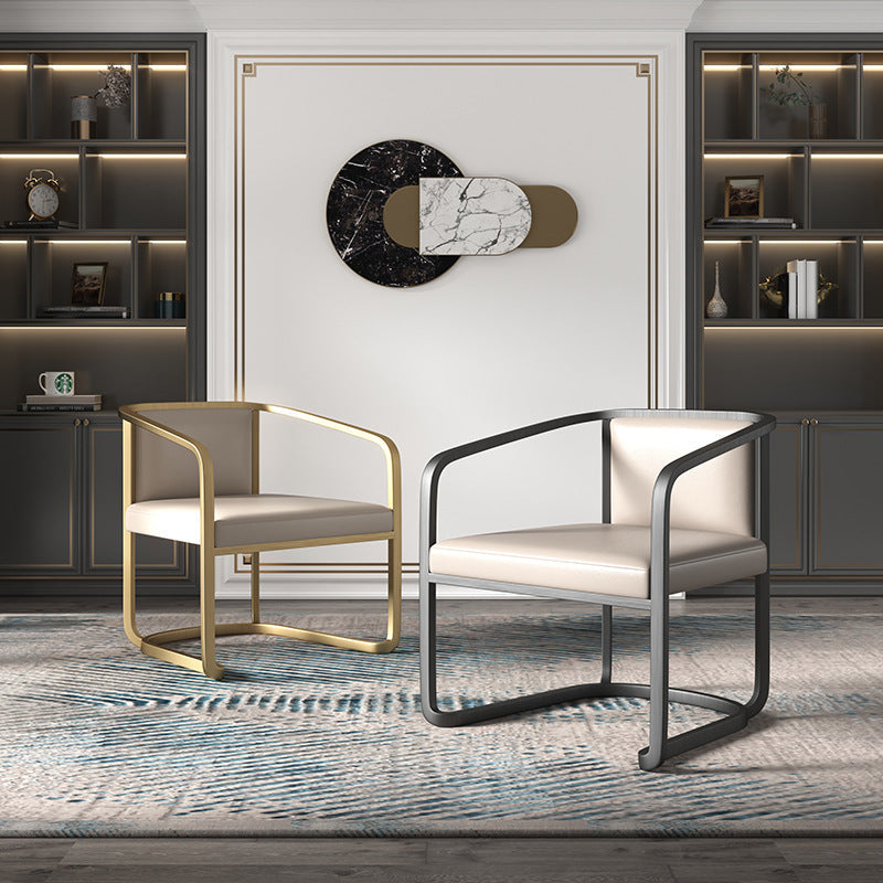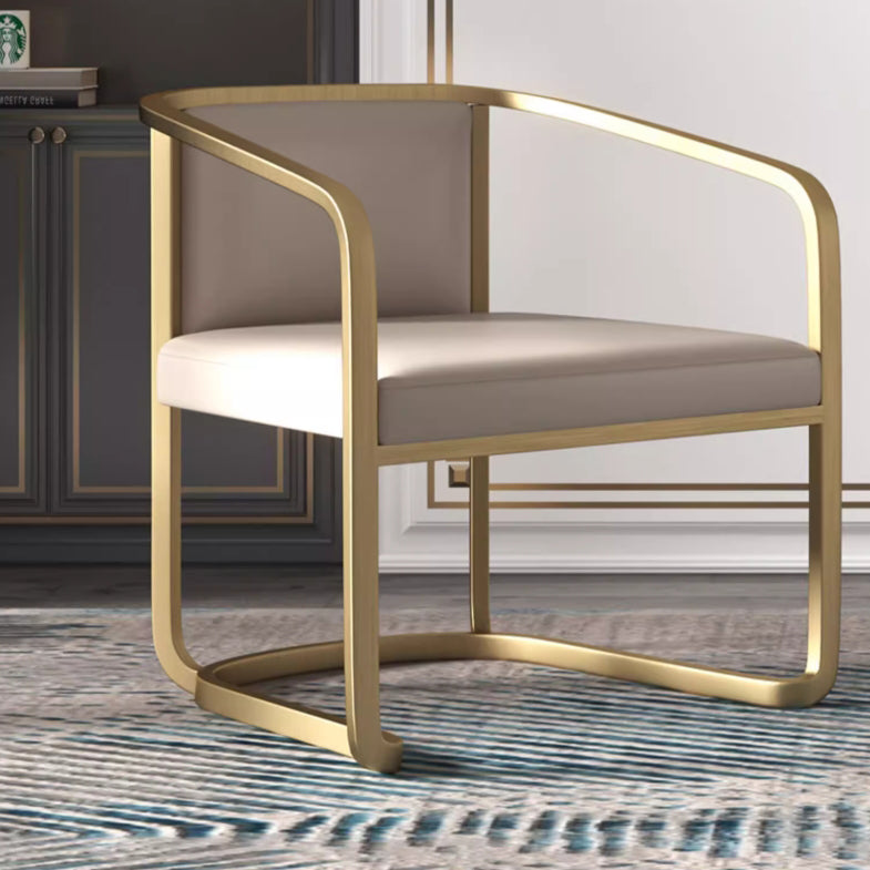 Contemporary Scandinavian Square Round Half Wrap Microfiber Leather Stainless Steel Dining Chair Backrest Armrest For Dining Room