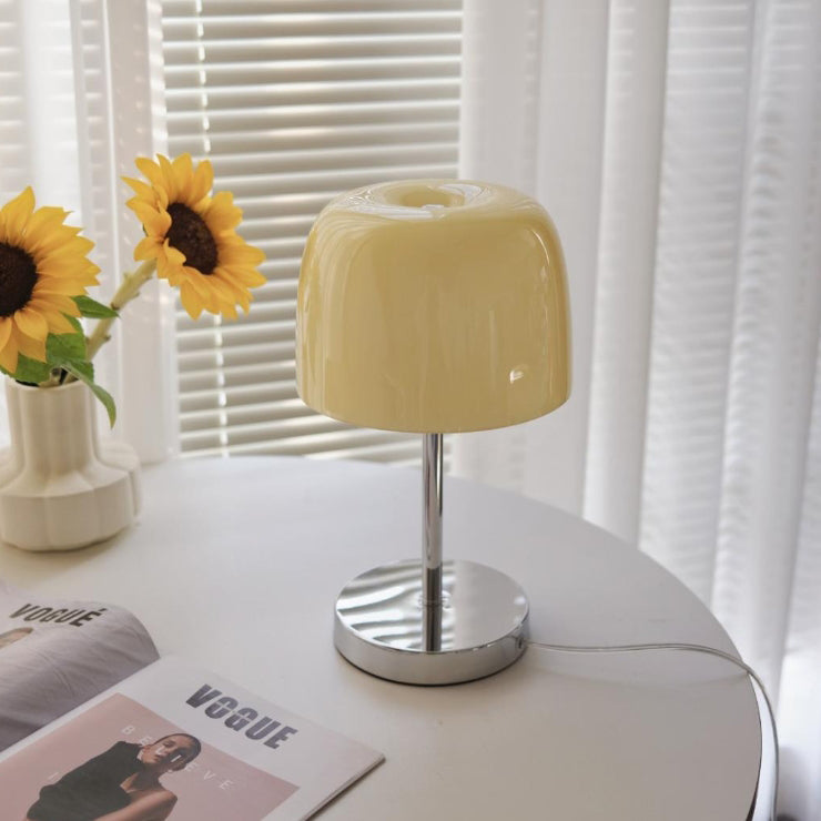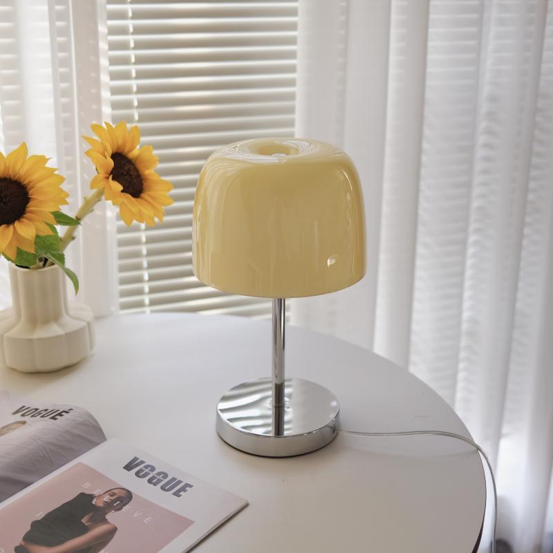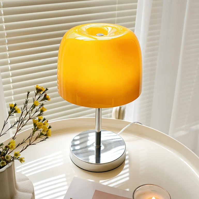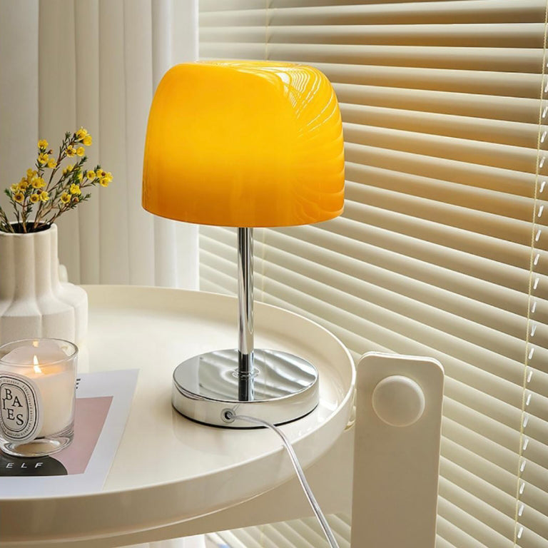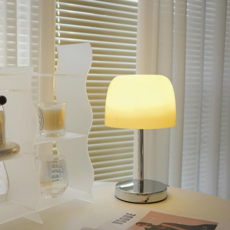 Contemporary Scandinavian Stainless Steel Glass Round Shade 1-Light Table Lamp For Bedroom