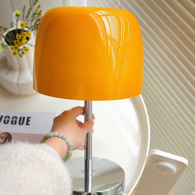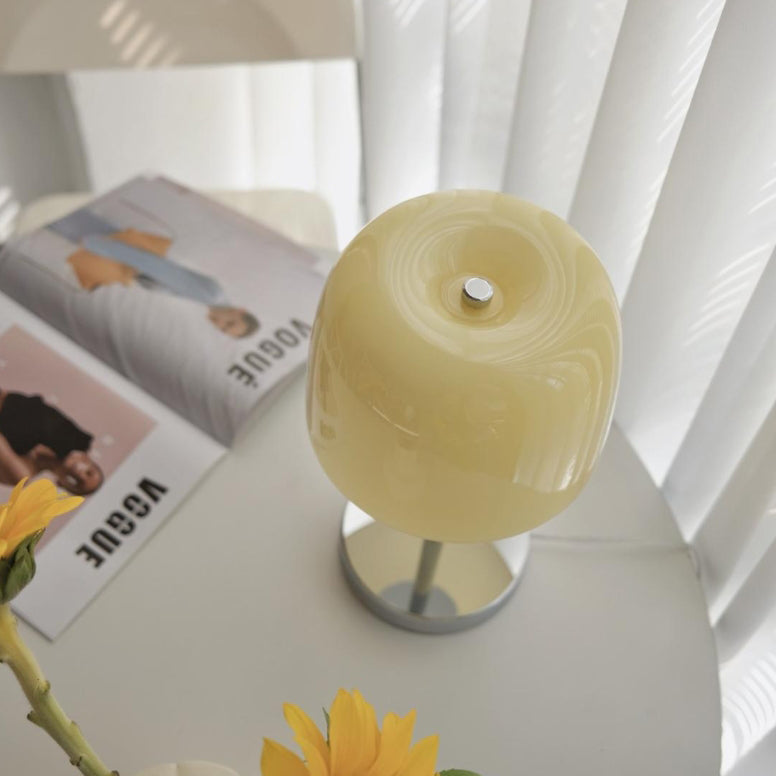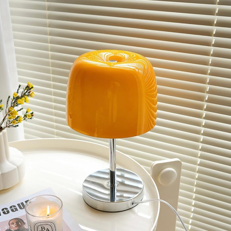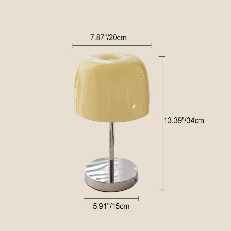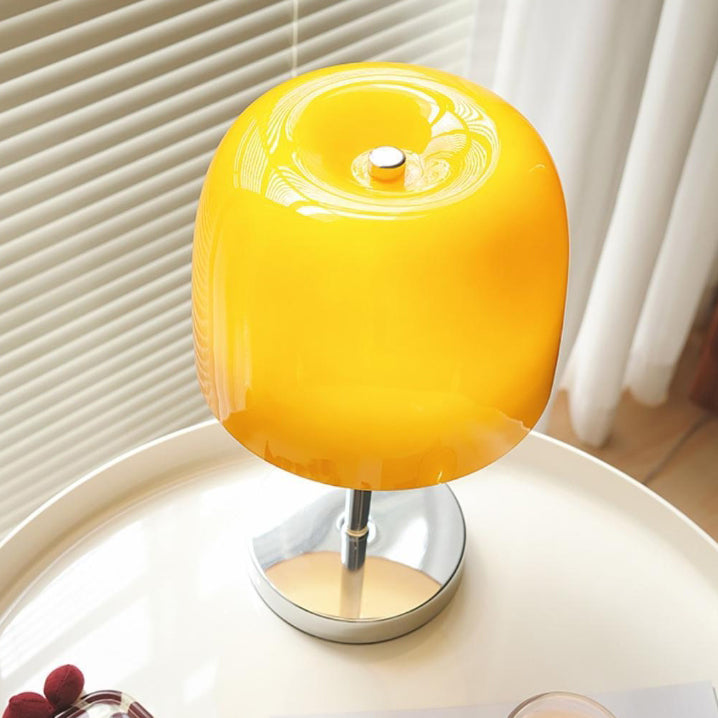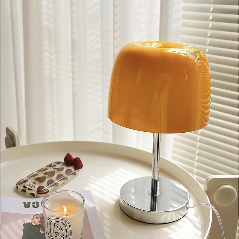 Contemporary Scandinavian Stainless Steel Glass Round Shade 1-Light Table Lamp For Bedroom