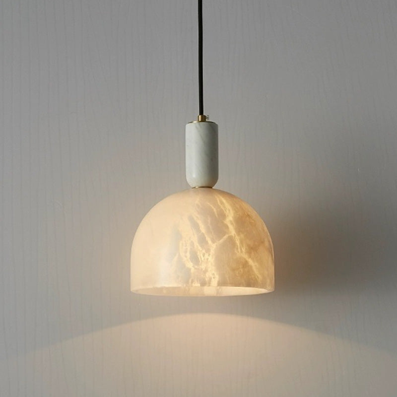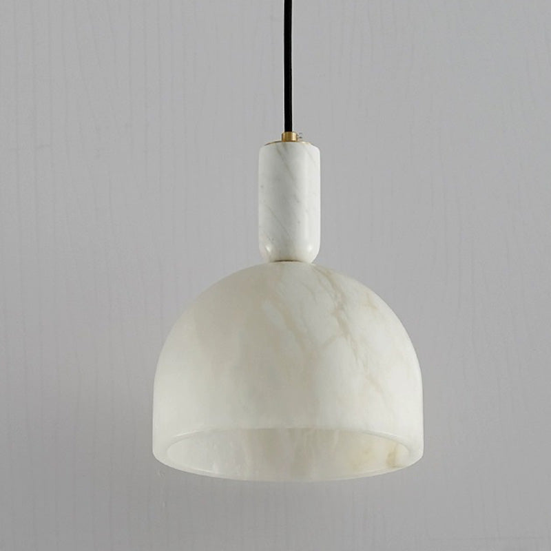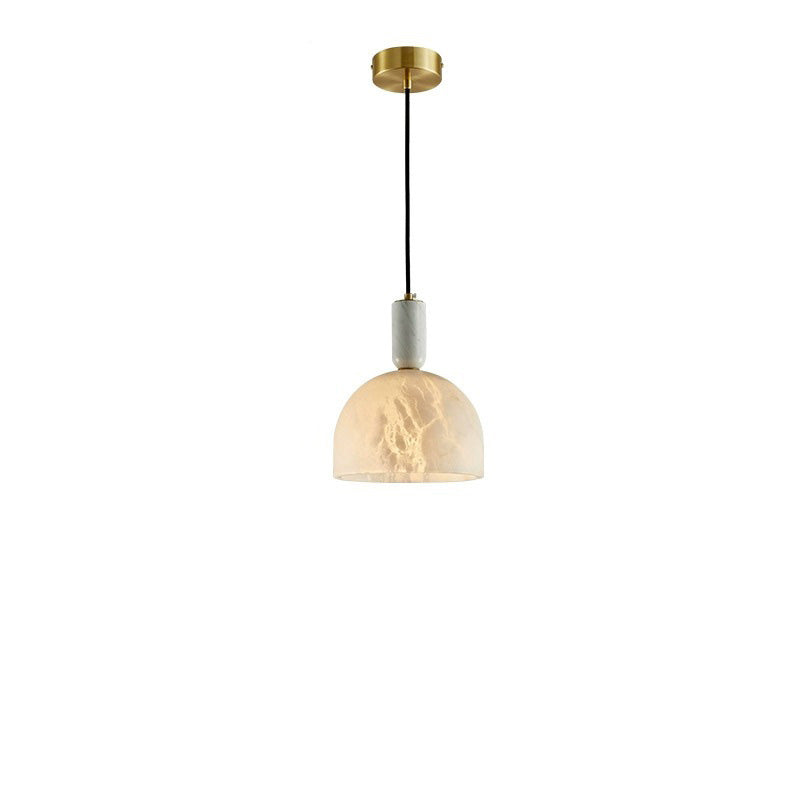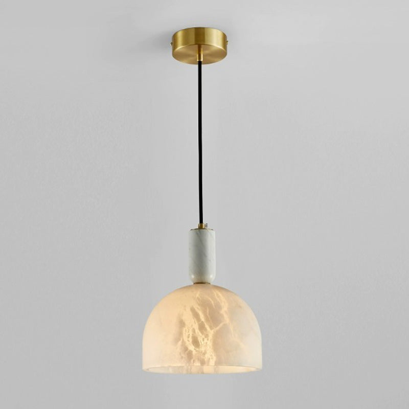 Contemporary Scandinavian Textured Round Column Marble Copper 1-Light Pendant Light For Bedroom