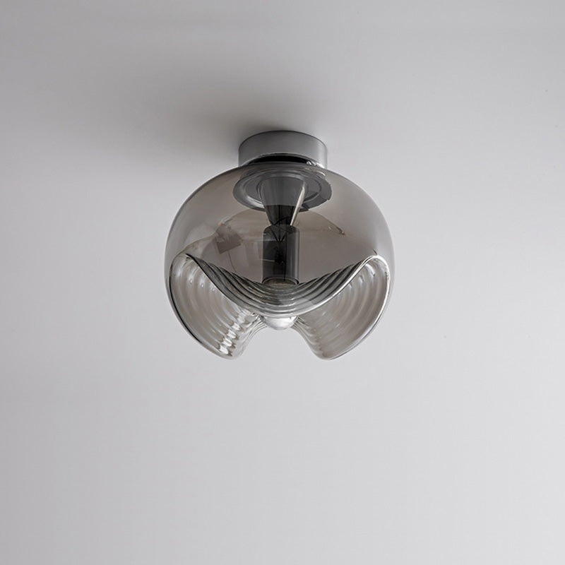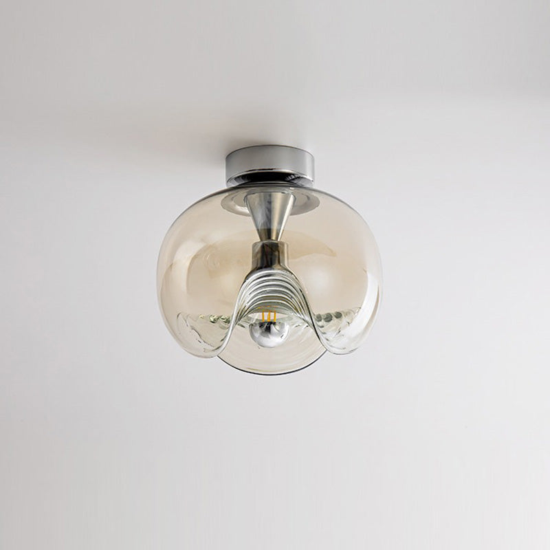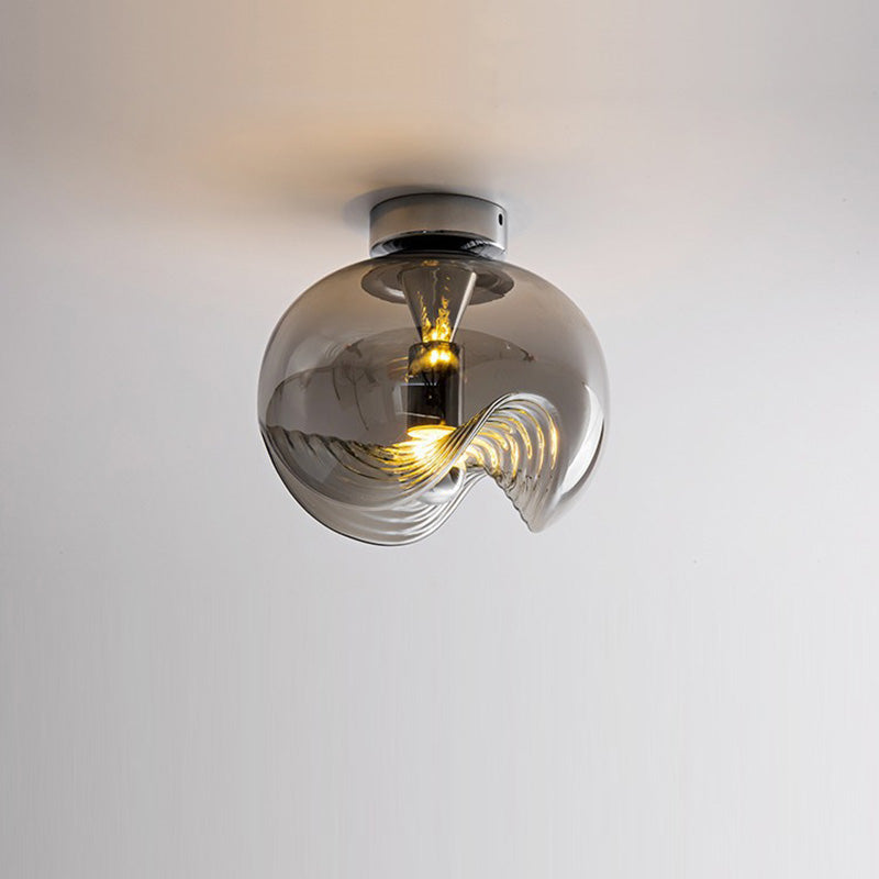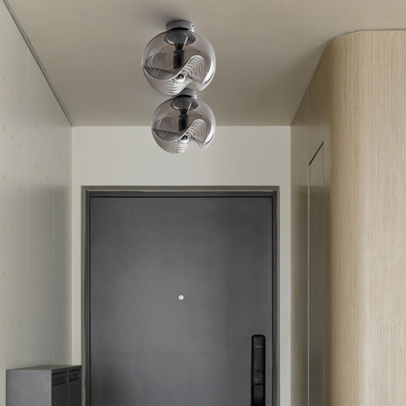 Contemporary Scandinavian Transparent Sphere Iron Glass 1-Light Semi-Flush Mount Ceiling Light For Bedroom