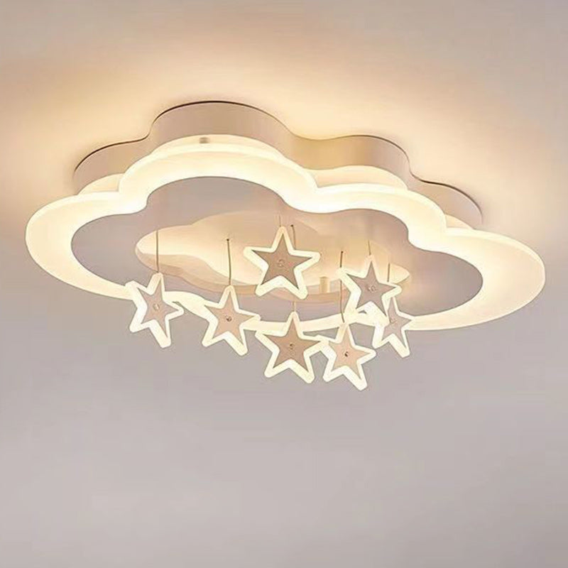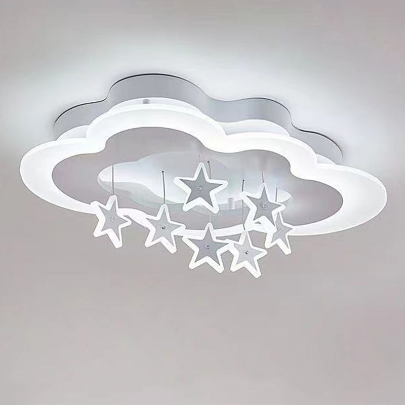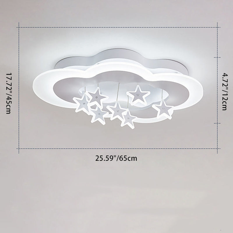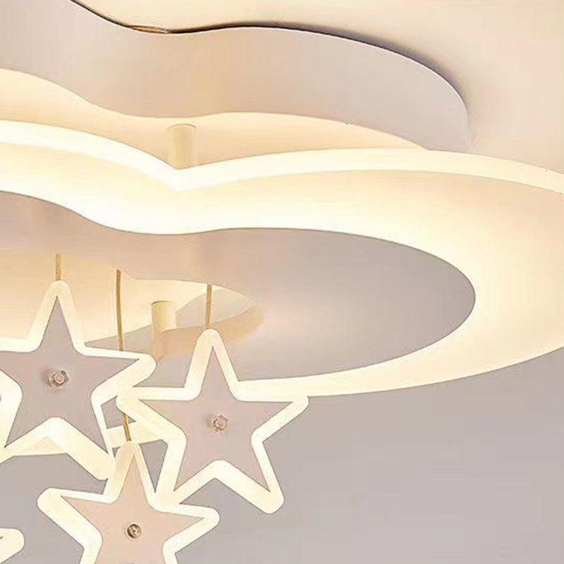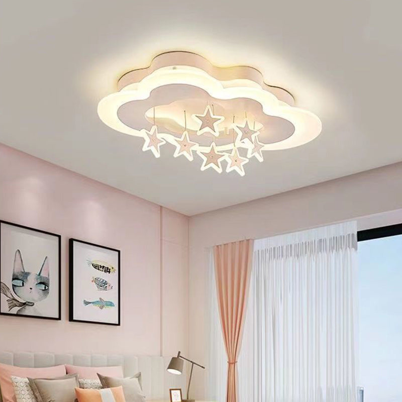 Contemporary Scandinavian Warm Kids Clouds Stars Iron Acrylic LED Flush Mount Ceiling Light For Bedroom