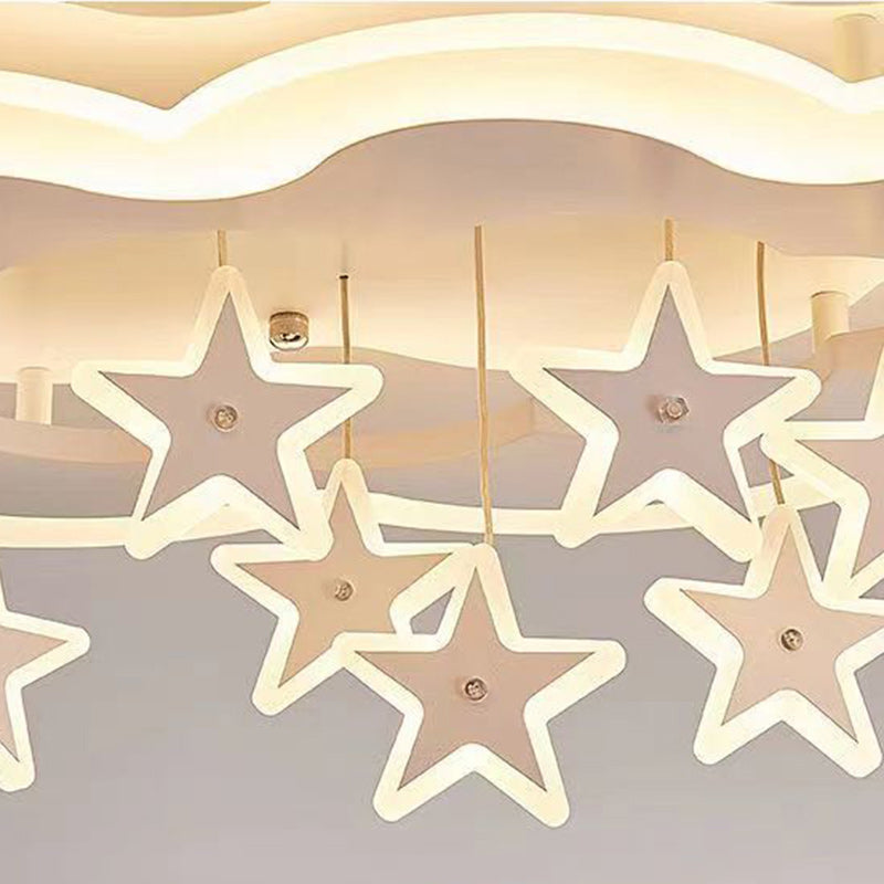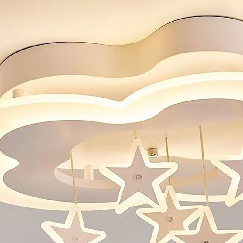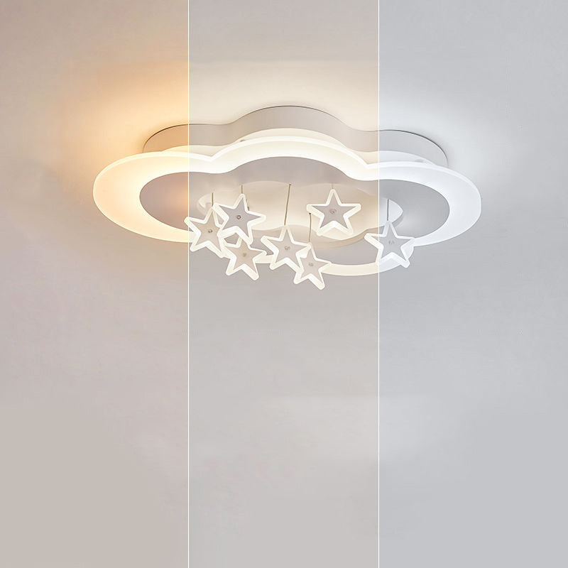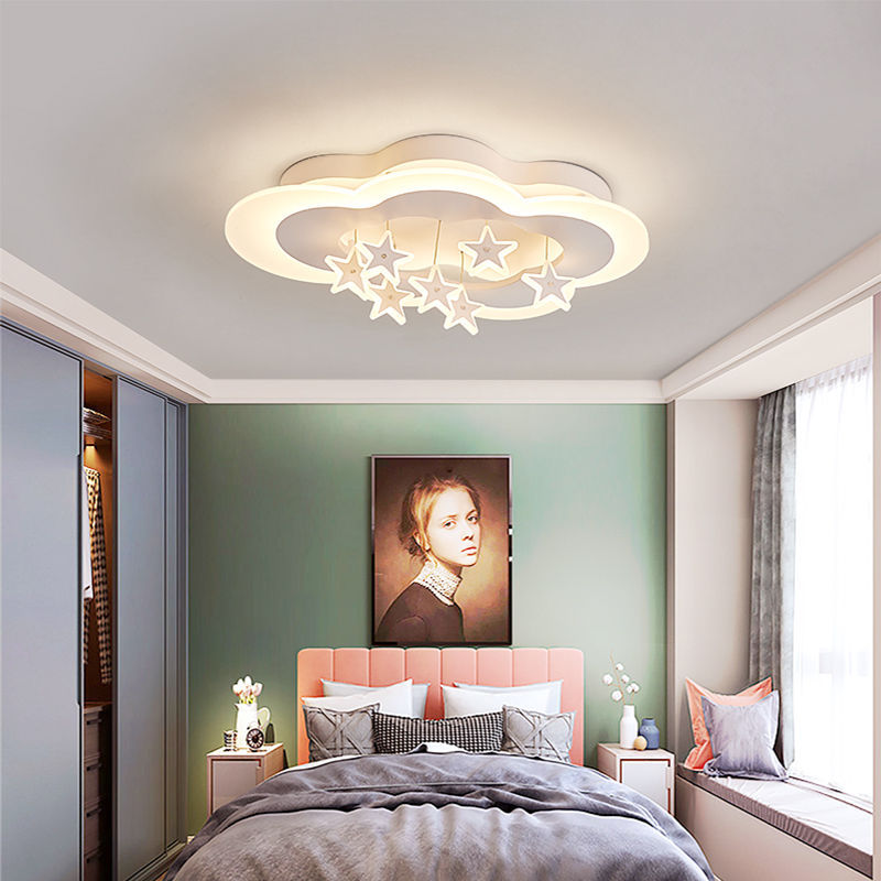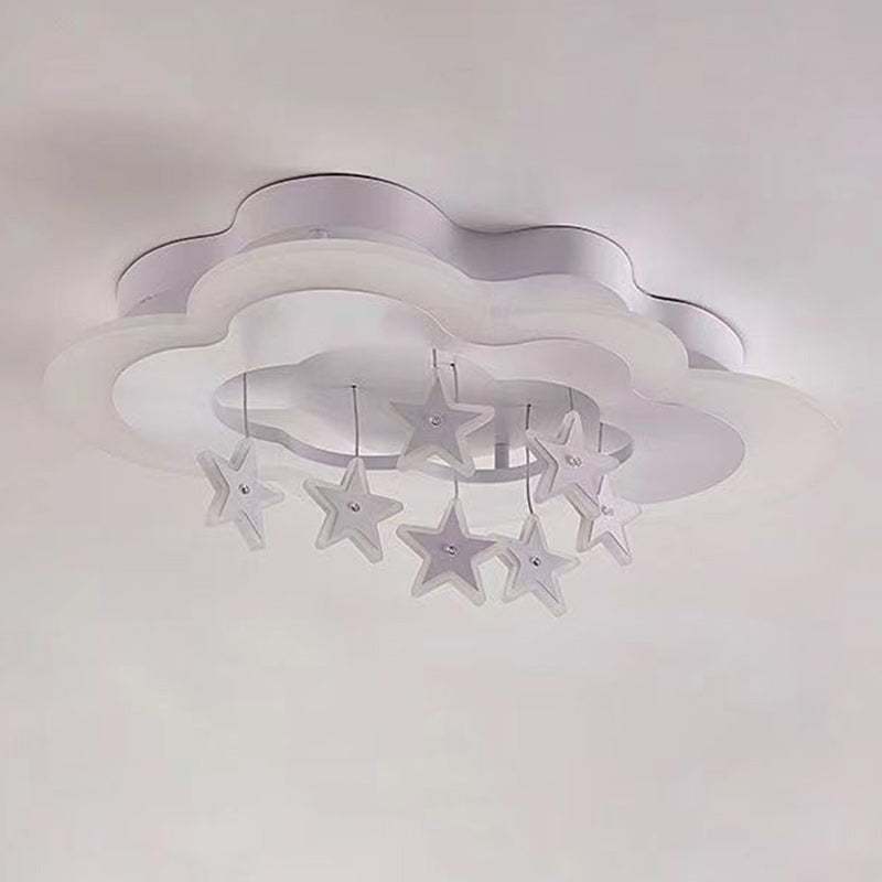 Contemporary Scandinavian Warm Kids Clouds Stars Iron Acrylic LED Flush Mount Ceiling Light For Bedroom