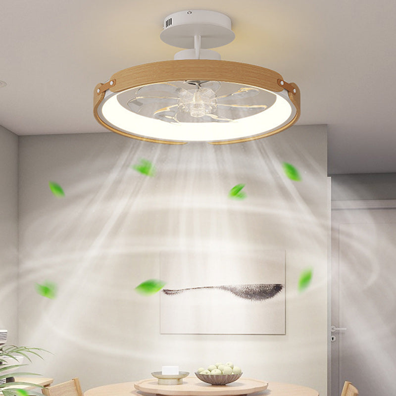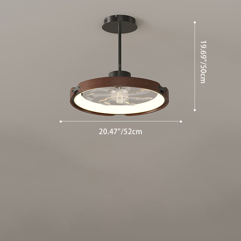 Contemporary Scandinavian Wood Acrylic PC Round LED Downrods Ceiling Fan Light For Dining Room
