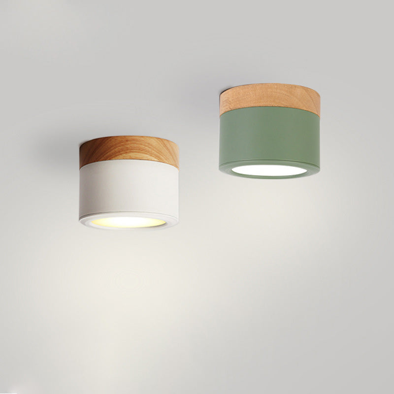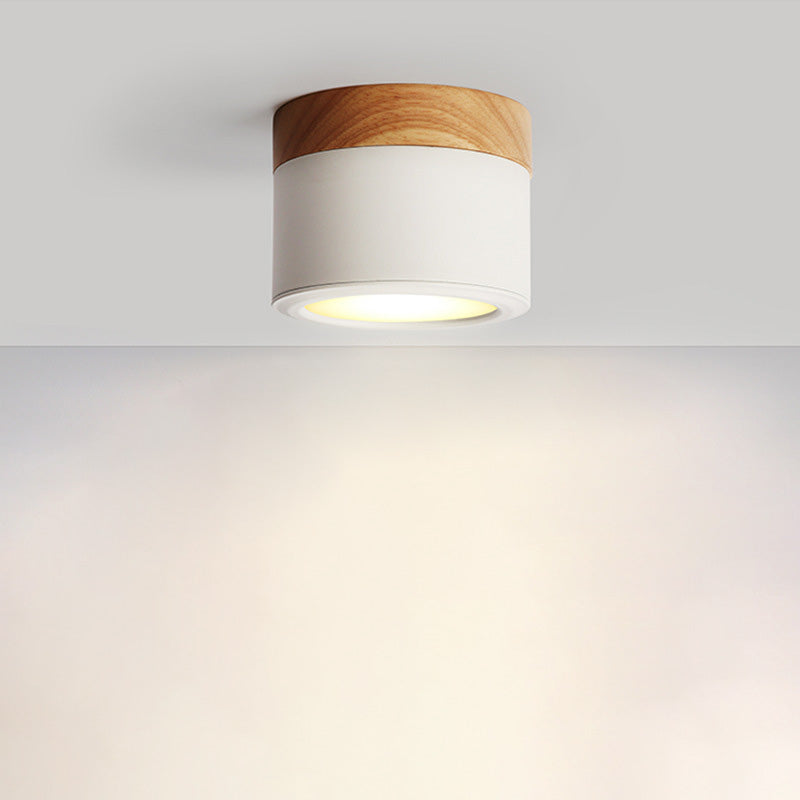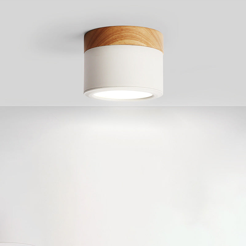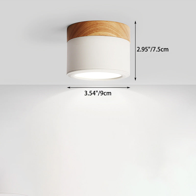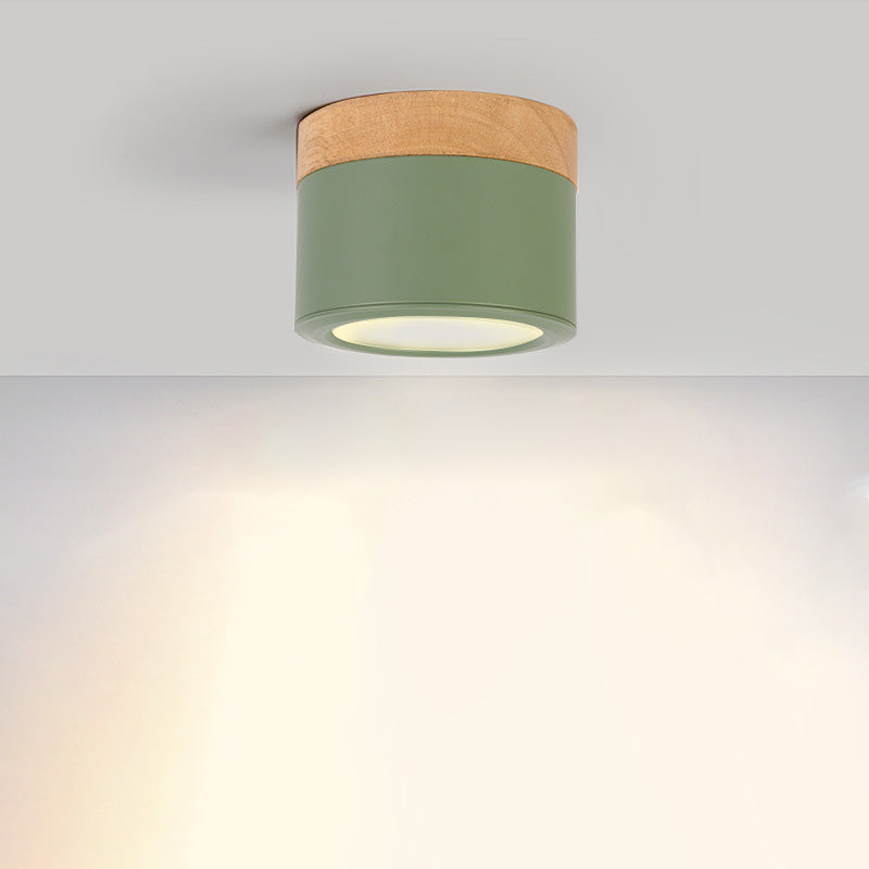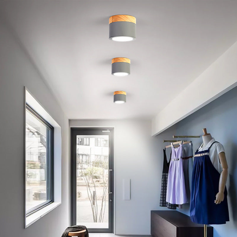 Contemporary Scandinavian Wood Iron Acrylic Cylinder LED Flush Mount Ceiling Light For Hallway
