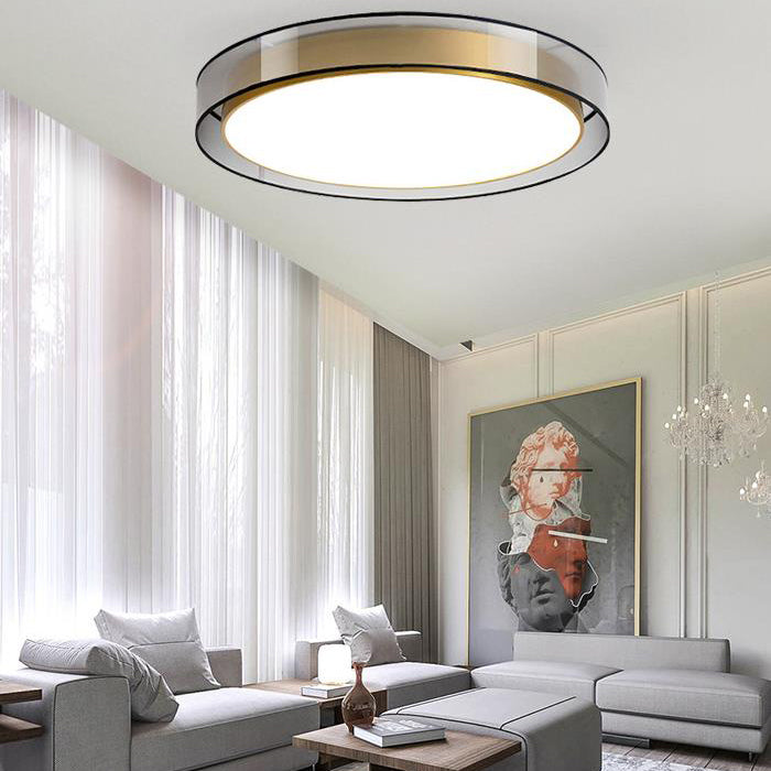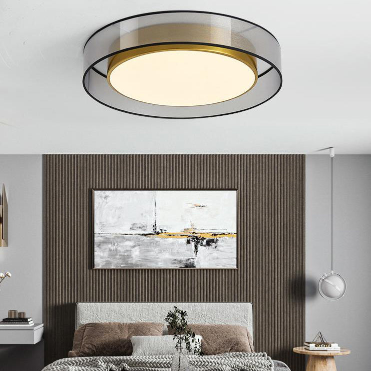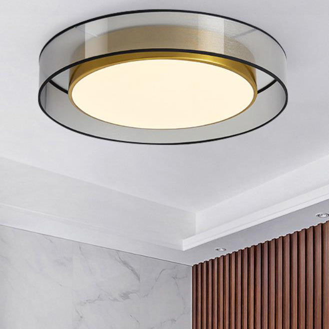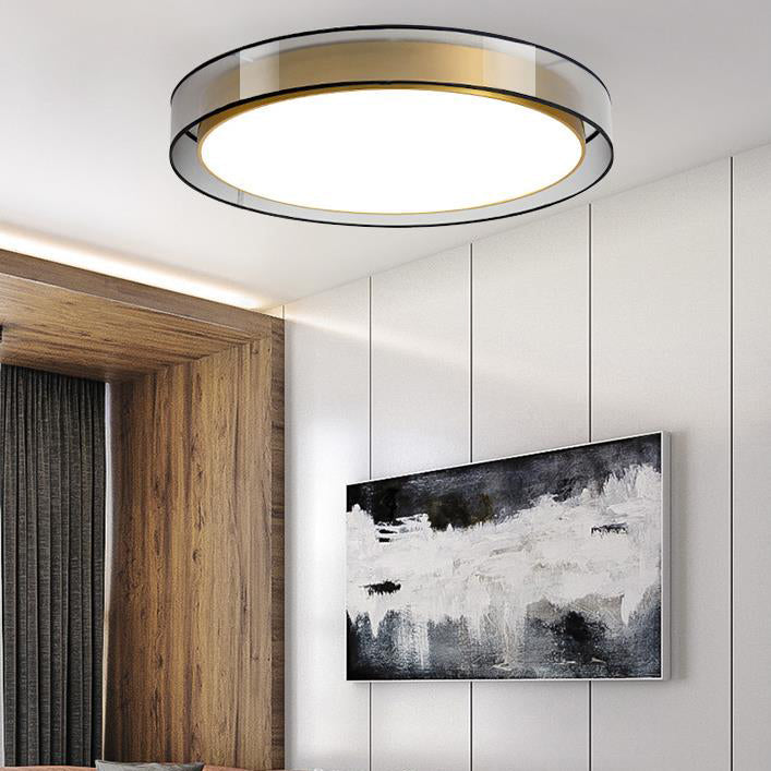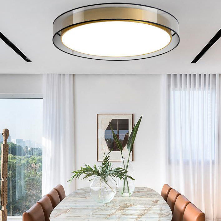Contemporary Simplicity All Brass Acrylic Cylinder Shade LED Flush Mount Ceiling Light For Living Room