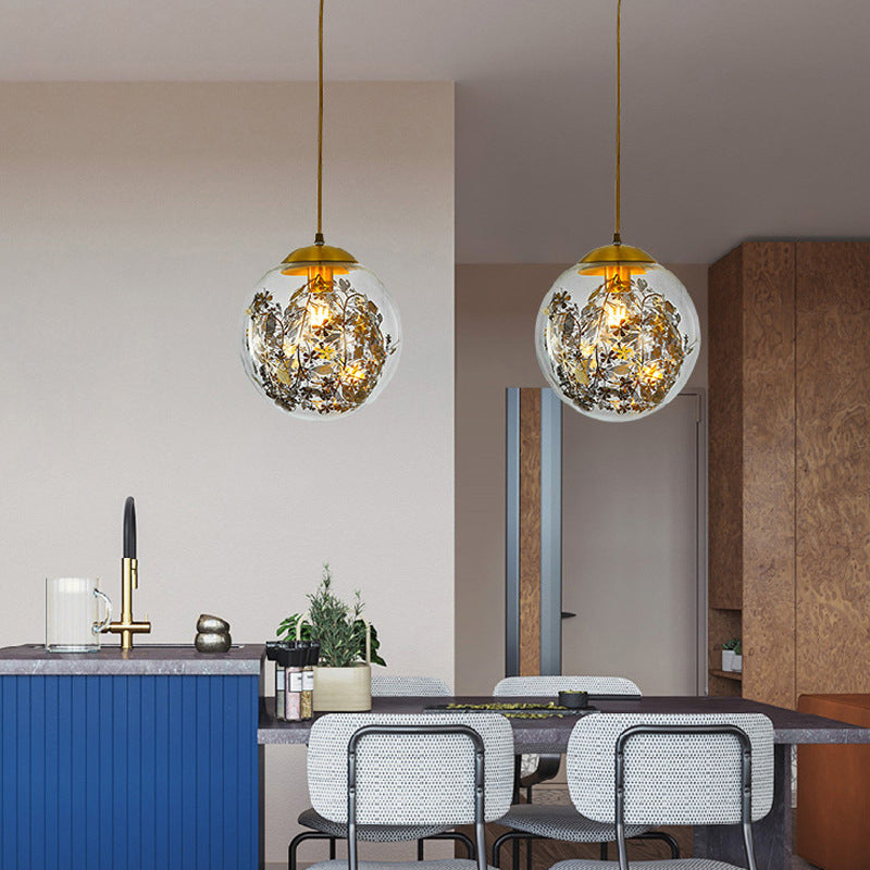 Contemporary Simplicity Glass Ball Shade Brass 1-Light Pendant Light For Living Room