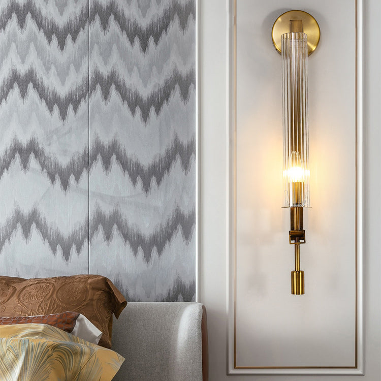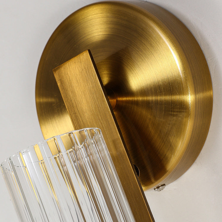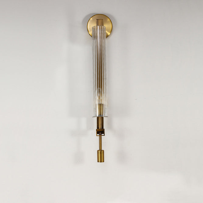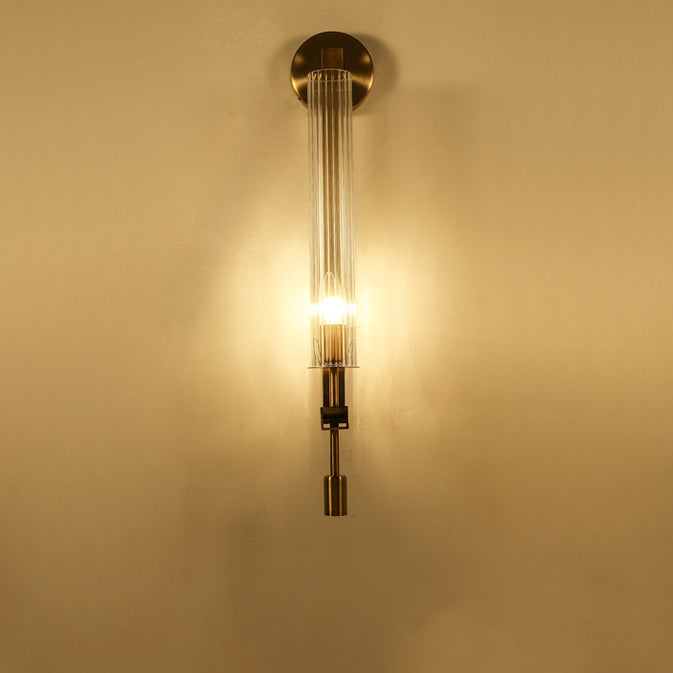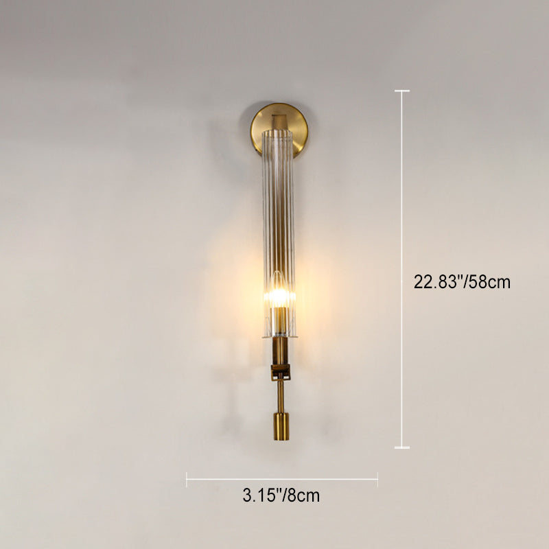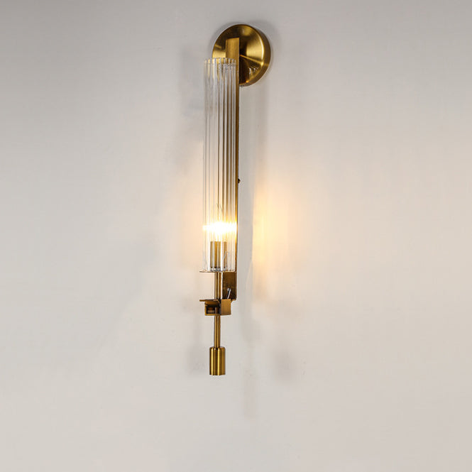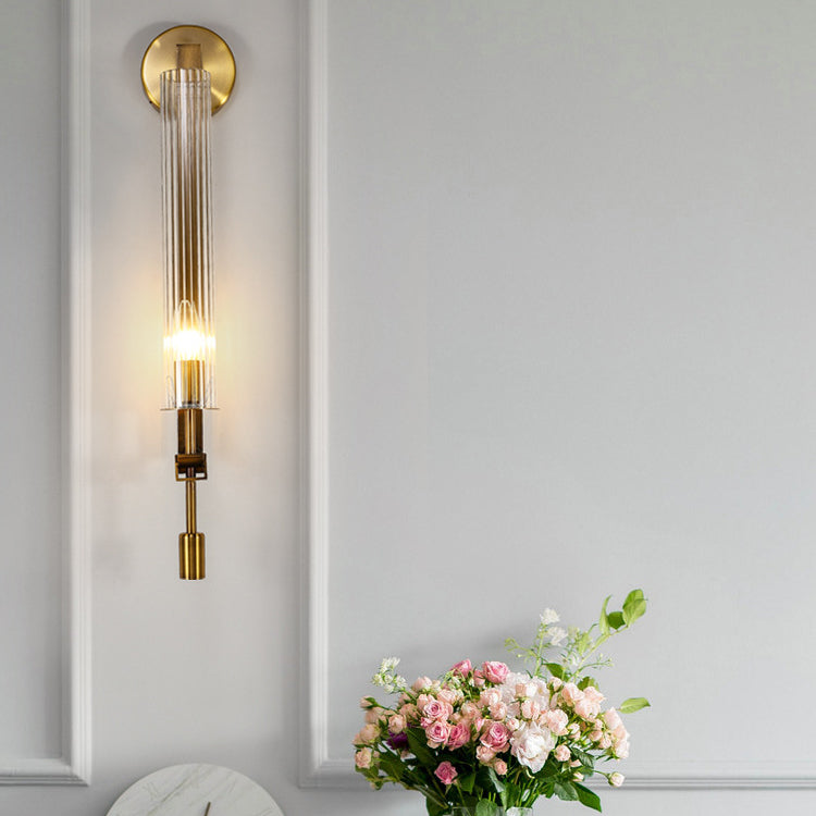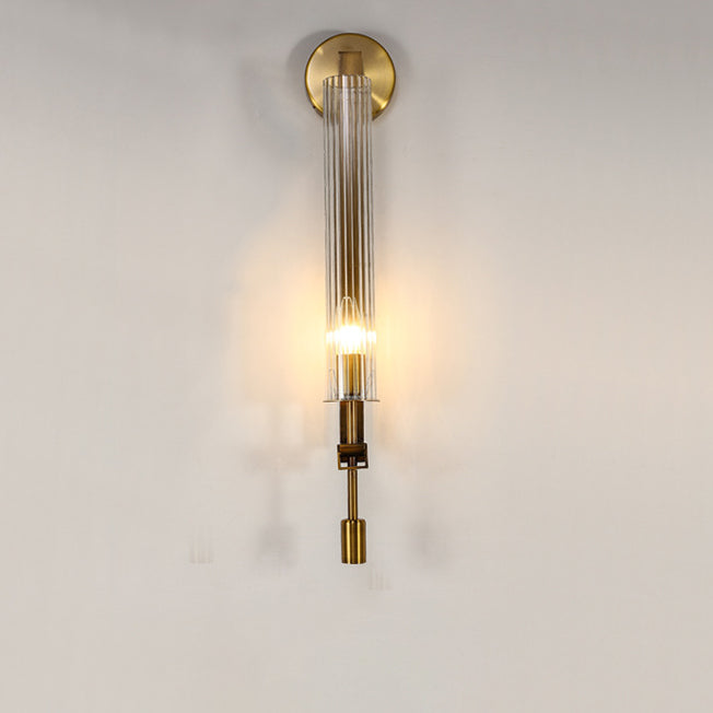 Contemporary Simplicity Hardware Ribbed Glass Column 1-Light Wall Sconce Lamp For Living Room