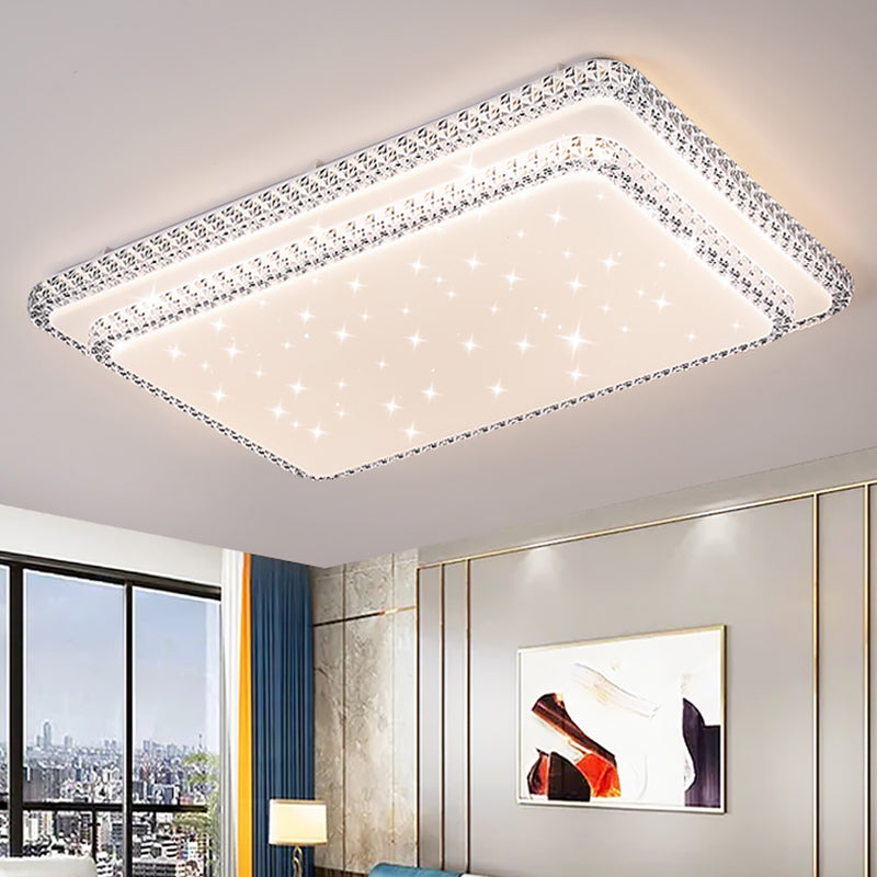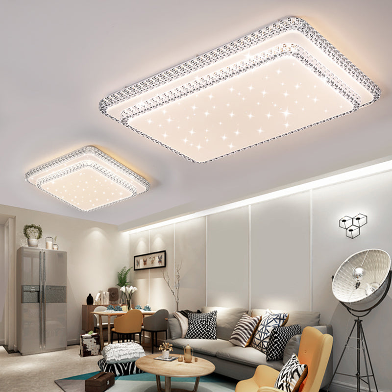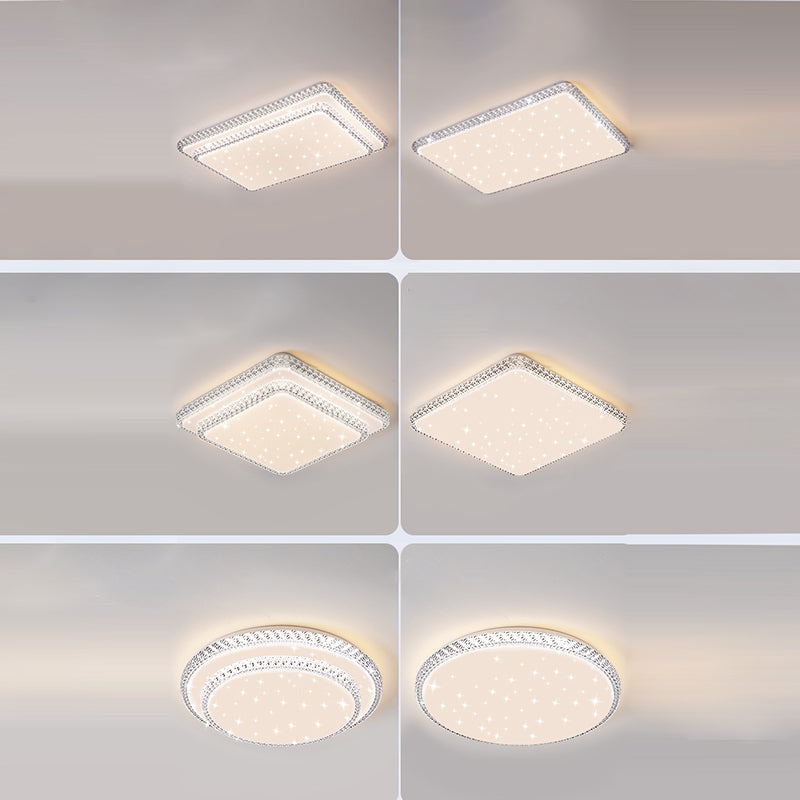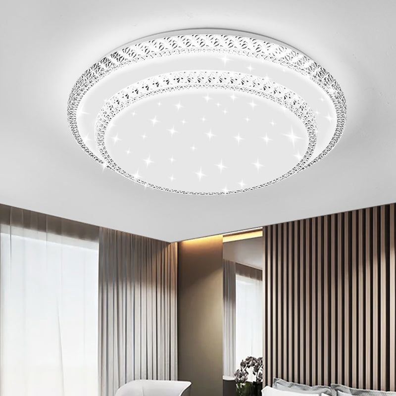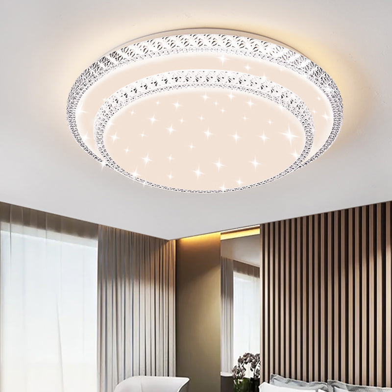 Contemporary Simplicity Iron Acrylic Round Square Rectangular Double Ring LED Spotlight Flush Mount Ceiling Light For Living Room
