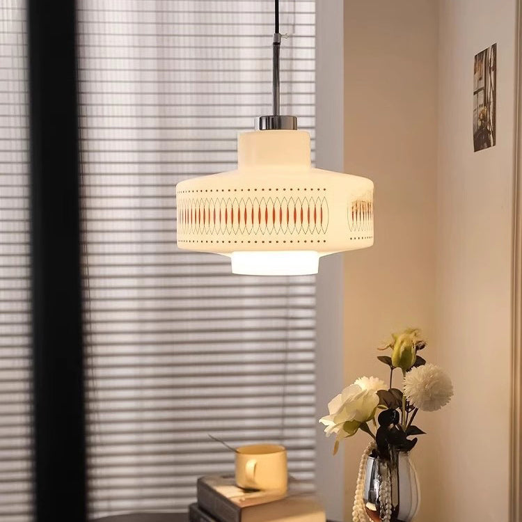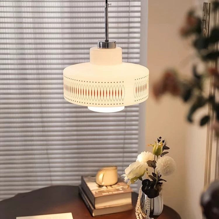 Contemporary Simplicity Patterned Glass Cylinder 1-Light Pendant Light For Living Room