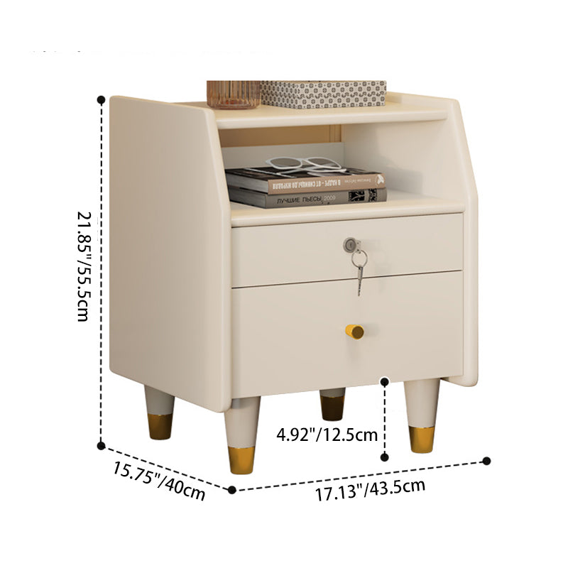Contemporary Simplicity Rectangular Rubber Wood Nightstand 2-Drawer Storage Shelves For Bedroom