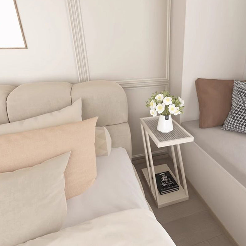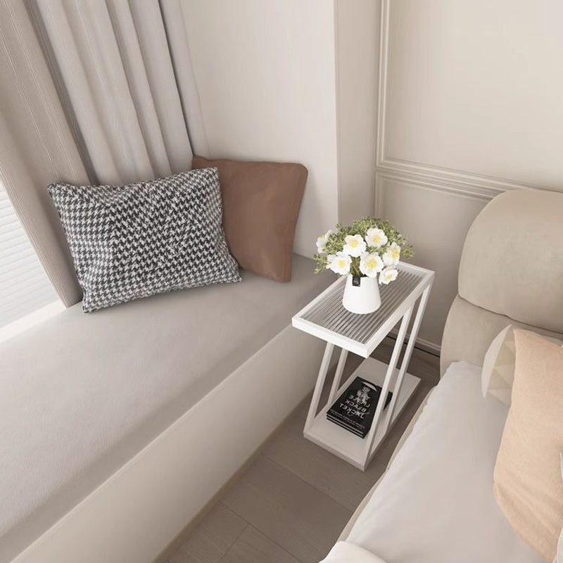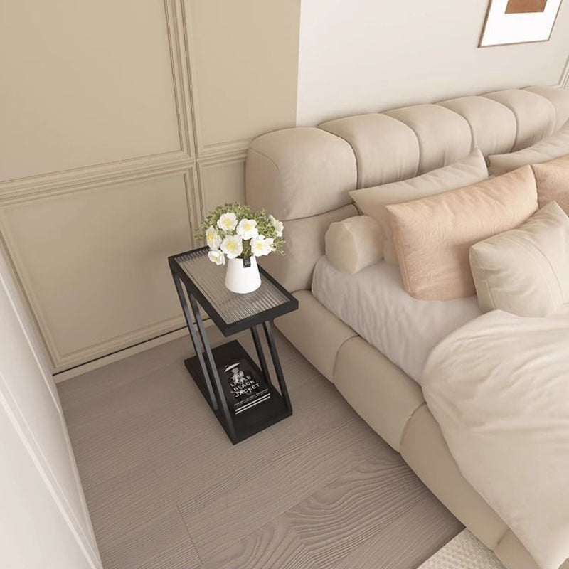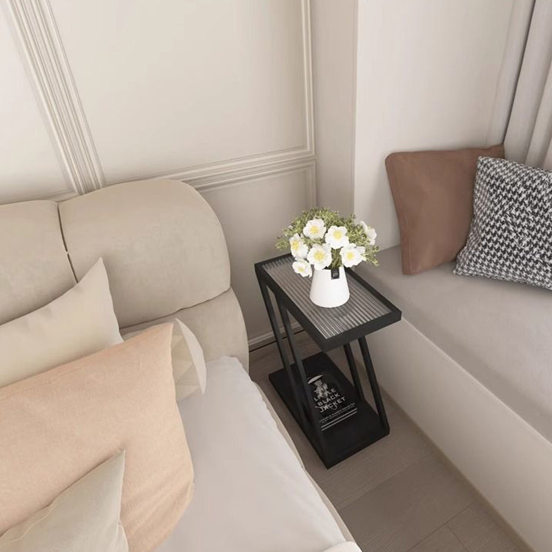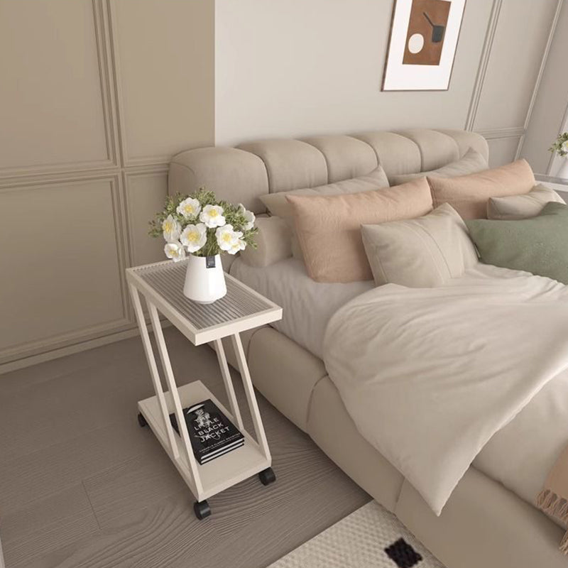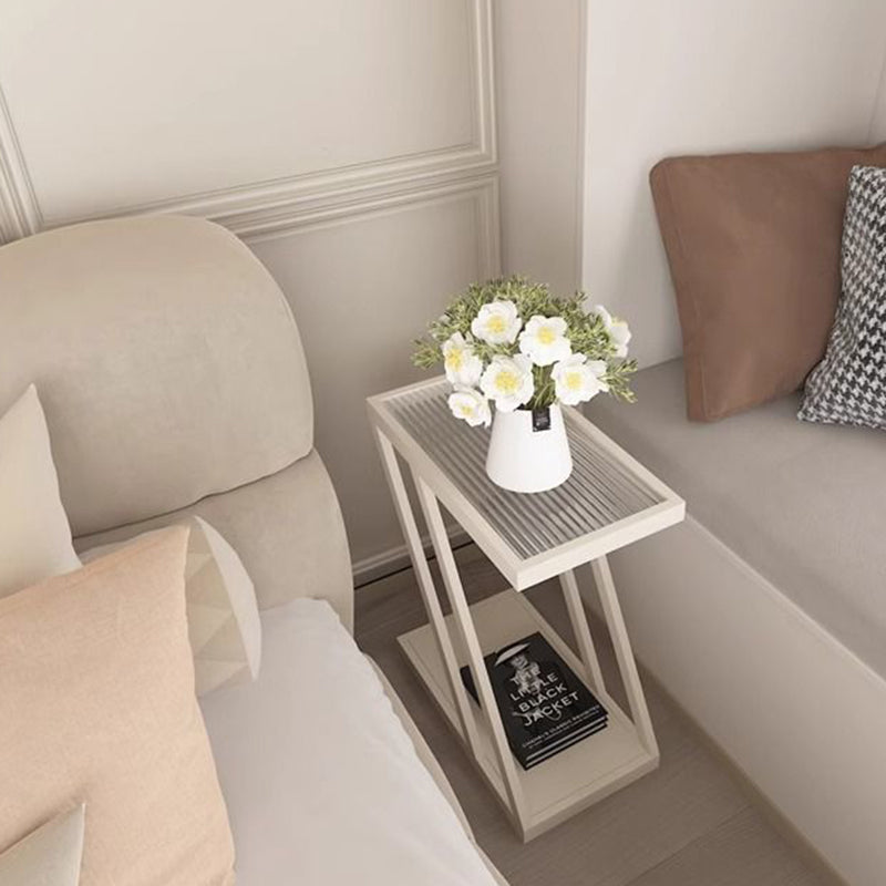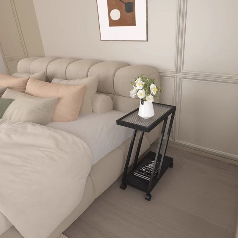 Contemporary Simplicity Rectangular Tempered Glass Z-Shaped Carbon Steel Frame Nightstand 2-Tier Casters For Bedroom