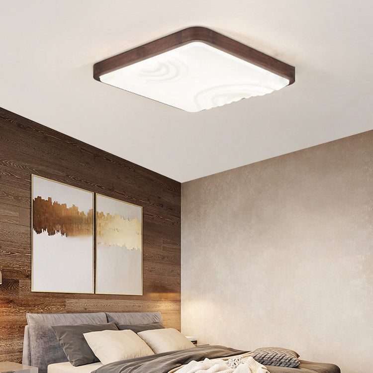 Contemporary Simplicity Walnut Wood Grain Acrylic Square LED Flush Mount Ceiling Light For Bedroom