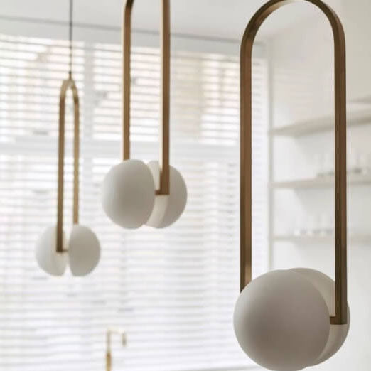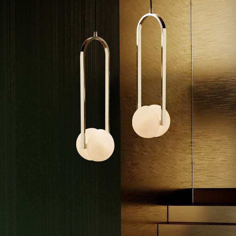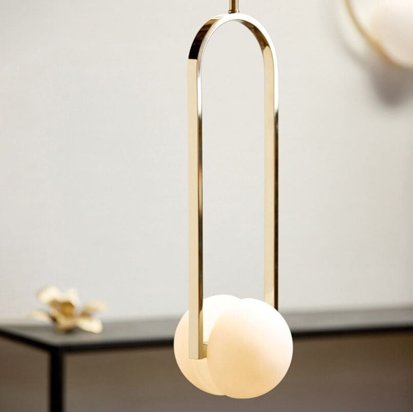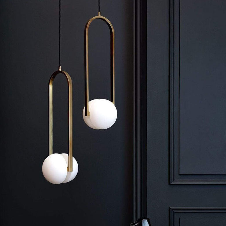 Danish Creative Milky White Glass Ball Gold-Finished Frame 2-Light Pendant Light