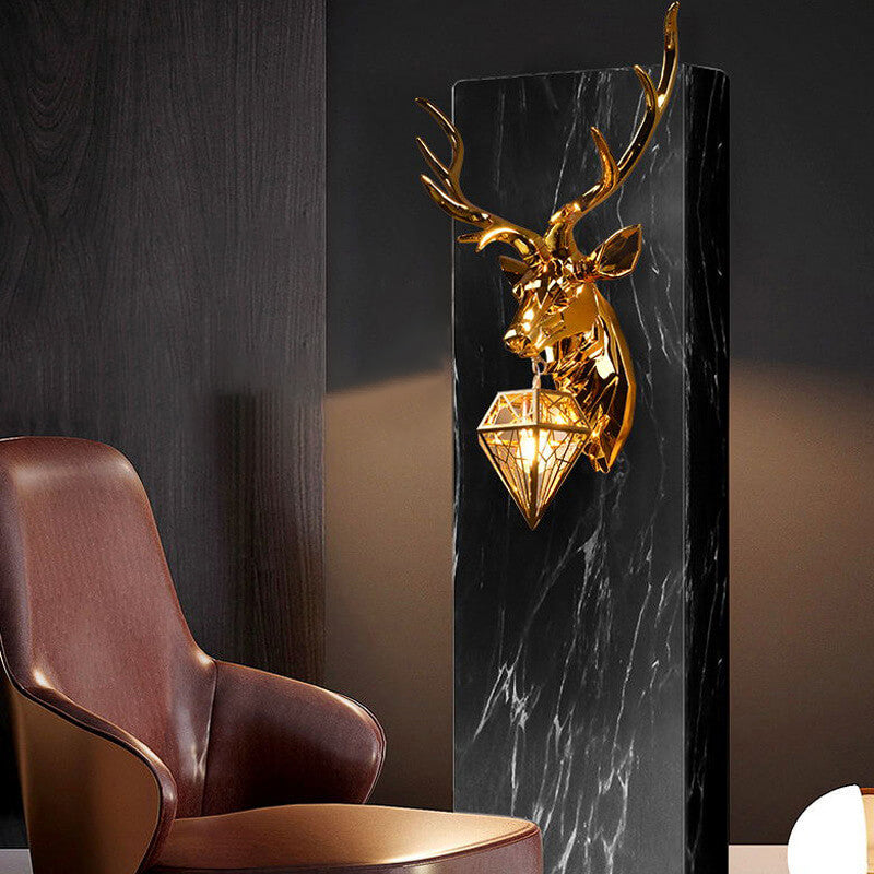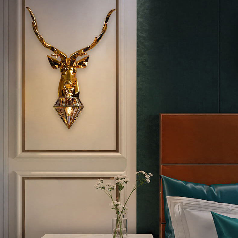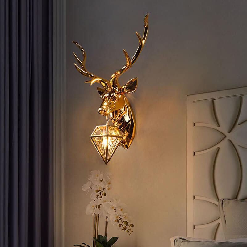 European Creative Plating Geometric Deer Head 1-Light Wall Sconce Lamp