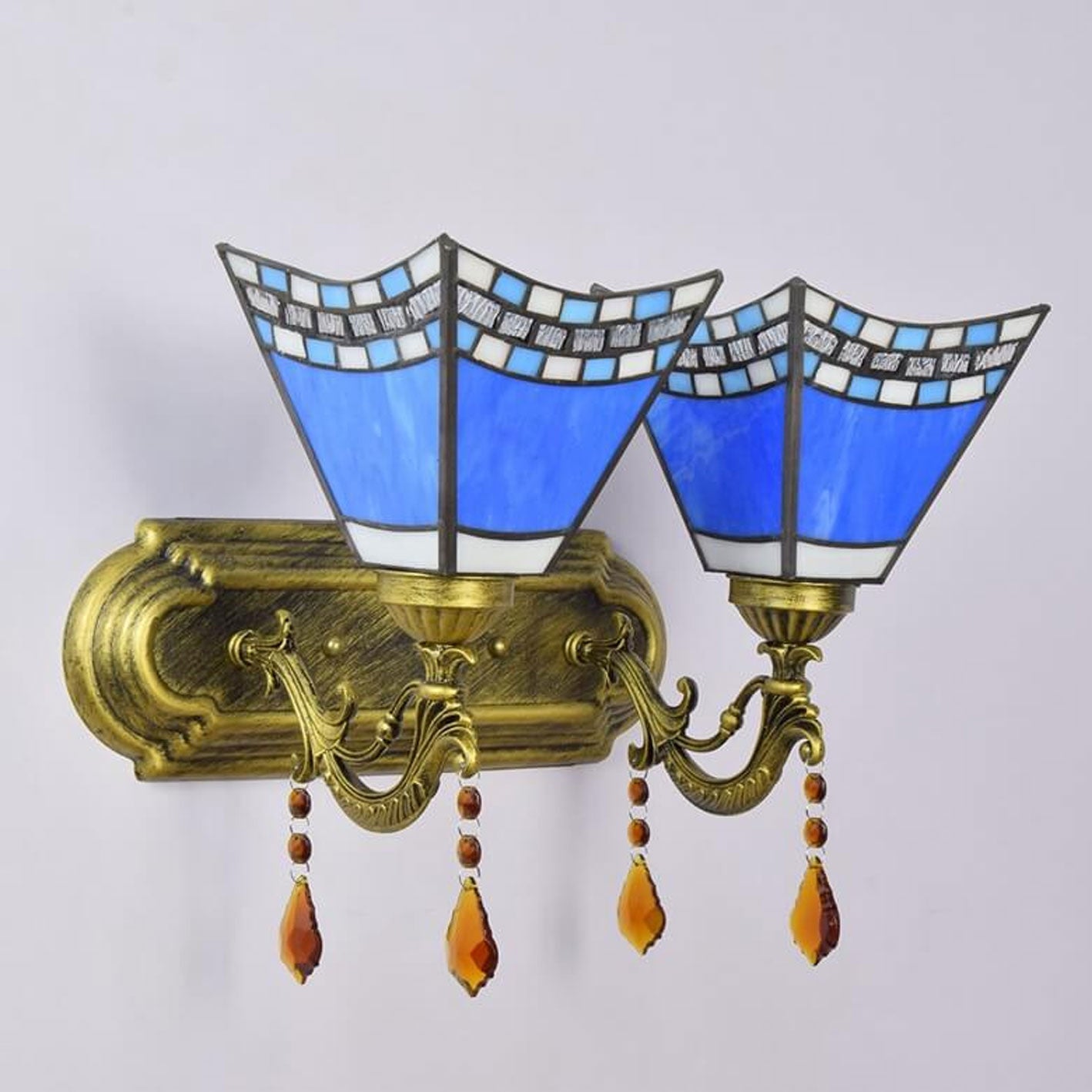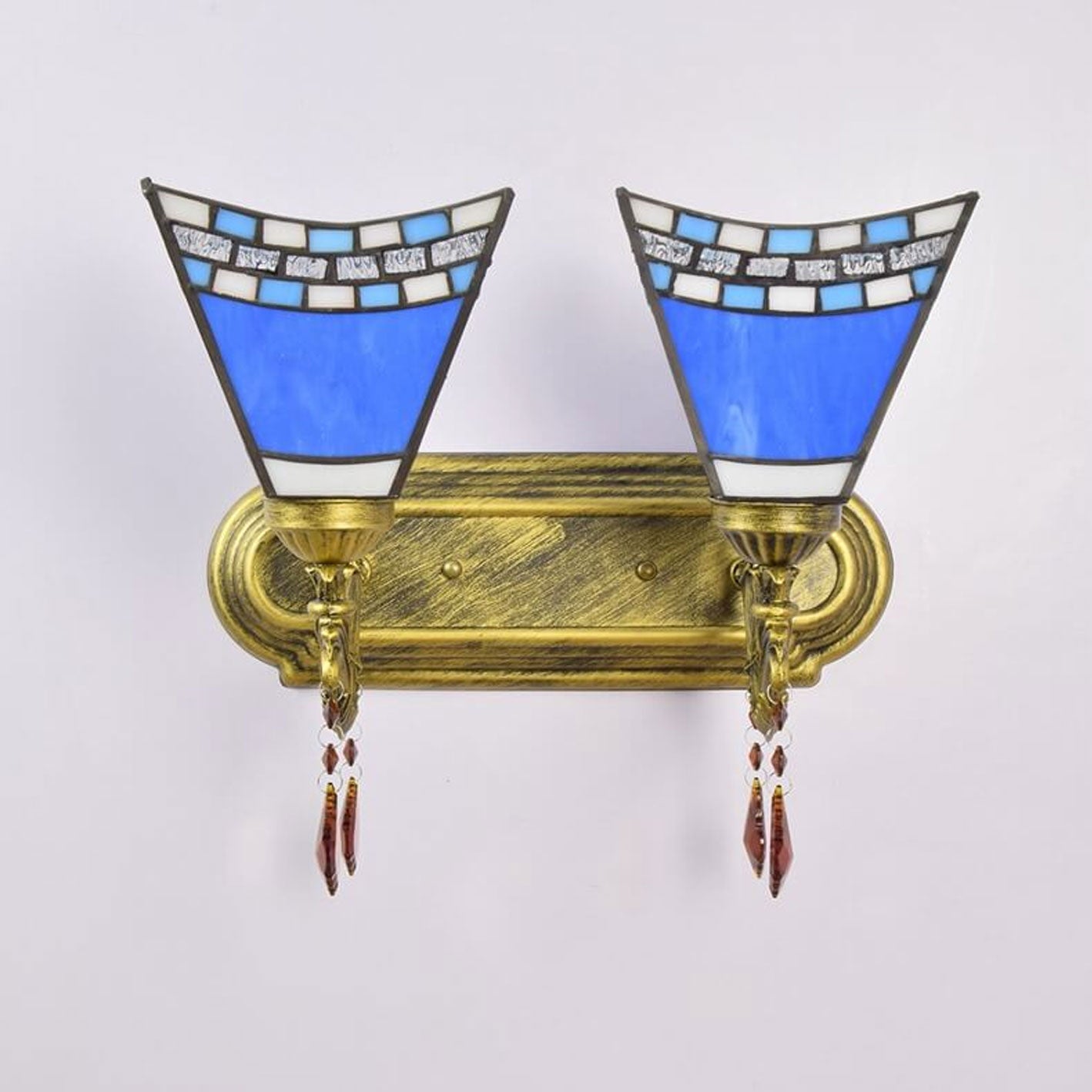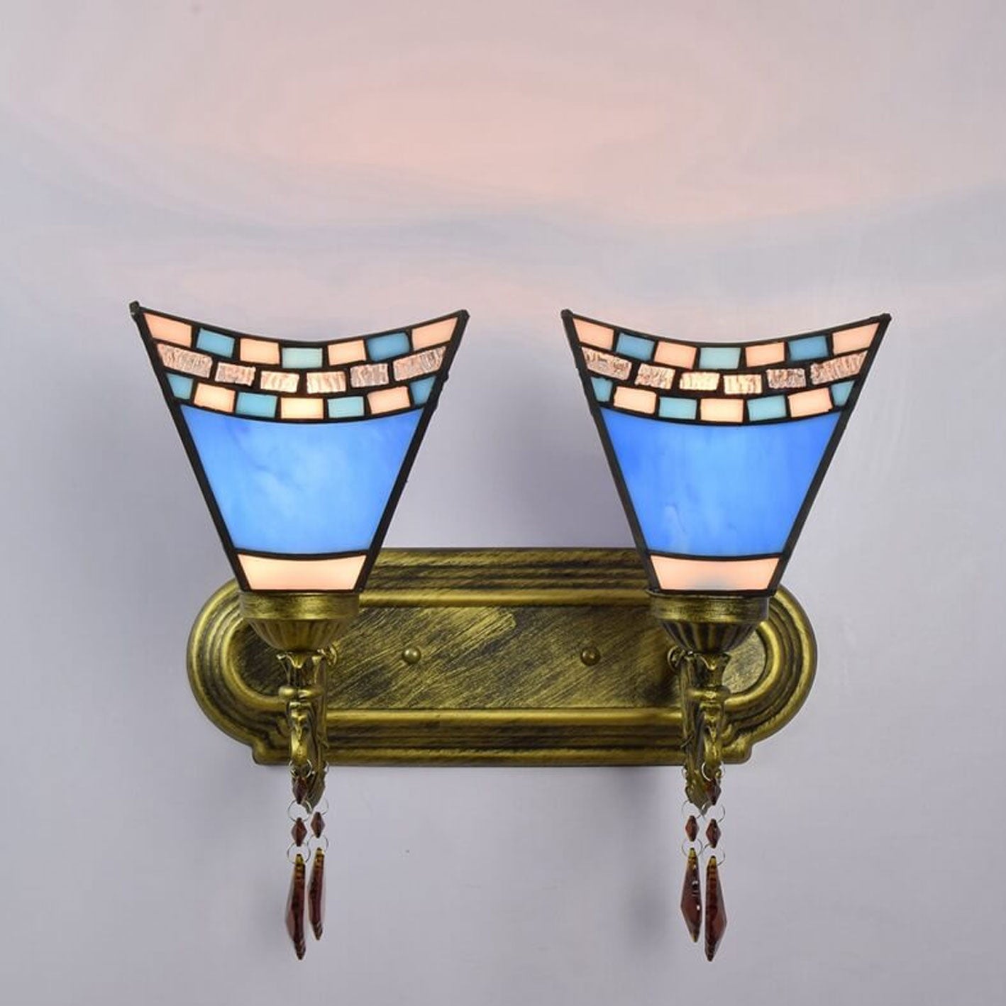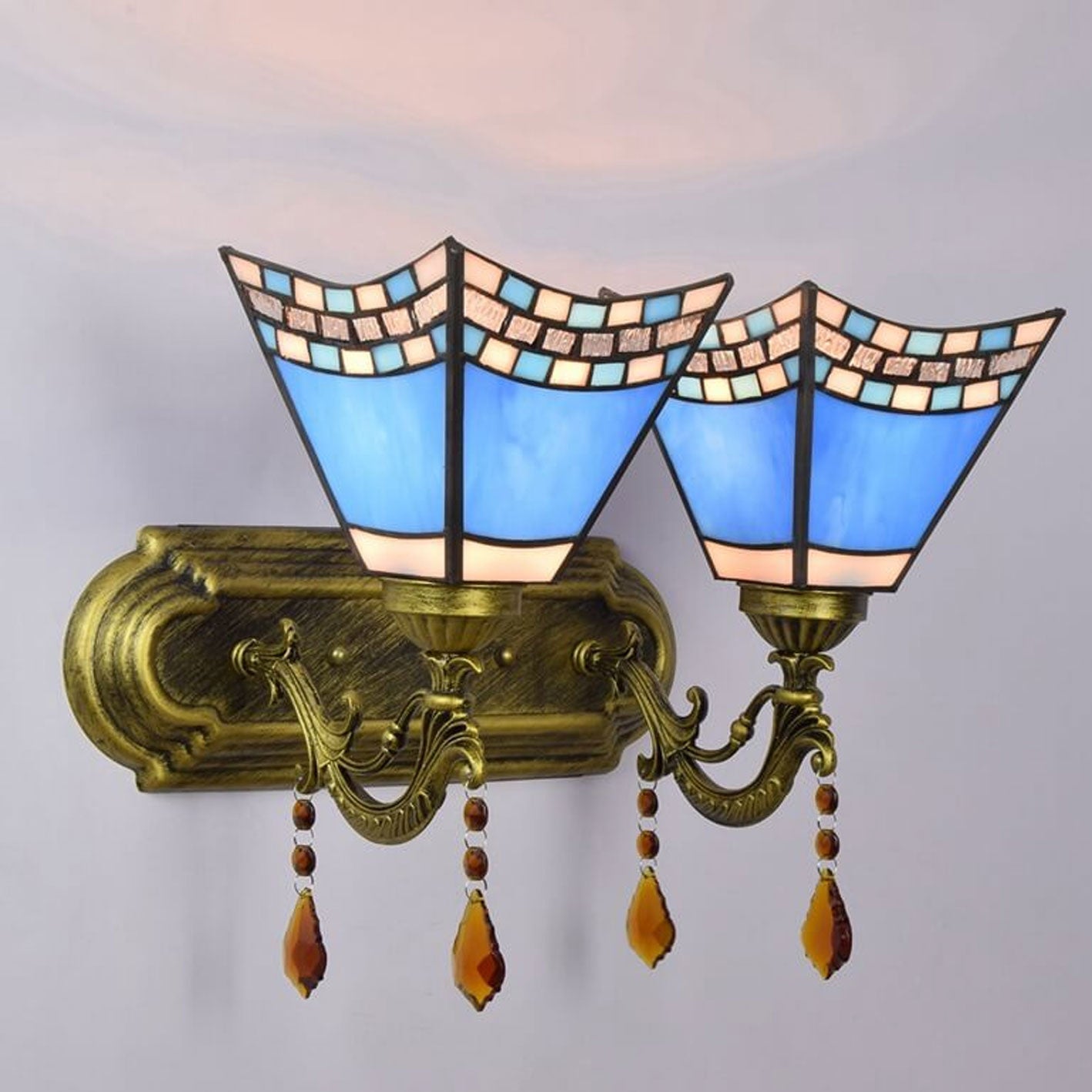 European Creative Tiffany Blue Glass Crystal 2-Light Wall Sconce Lamp