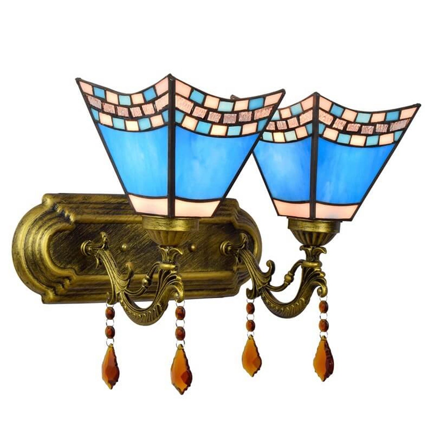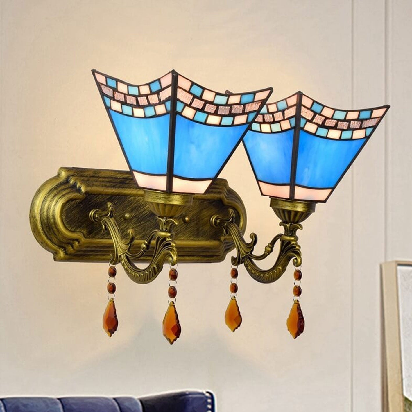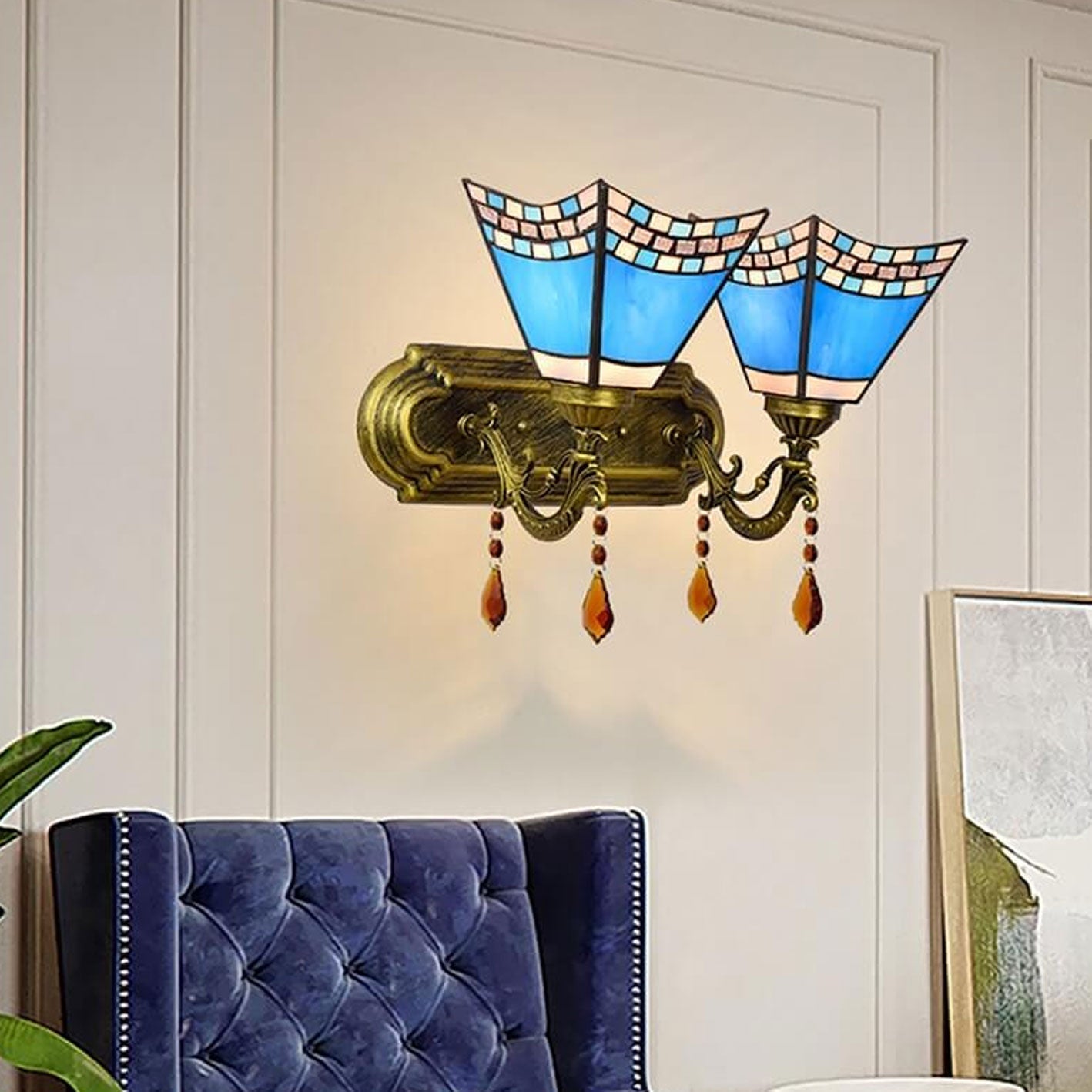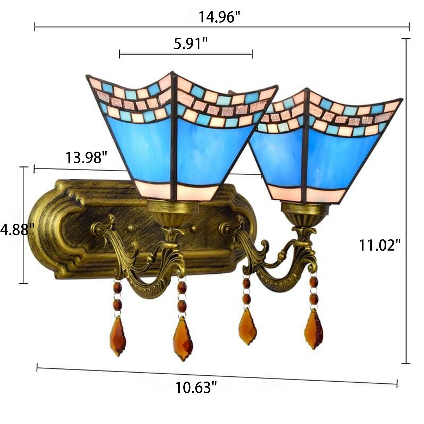 European Creative Tiffany Blue Glass Crystal 2-Light Wall Sconce Lamp