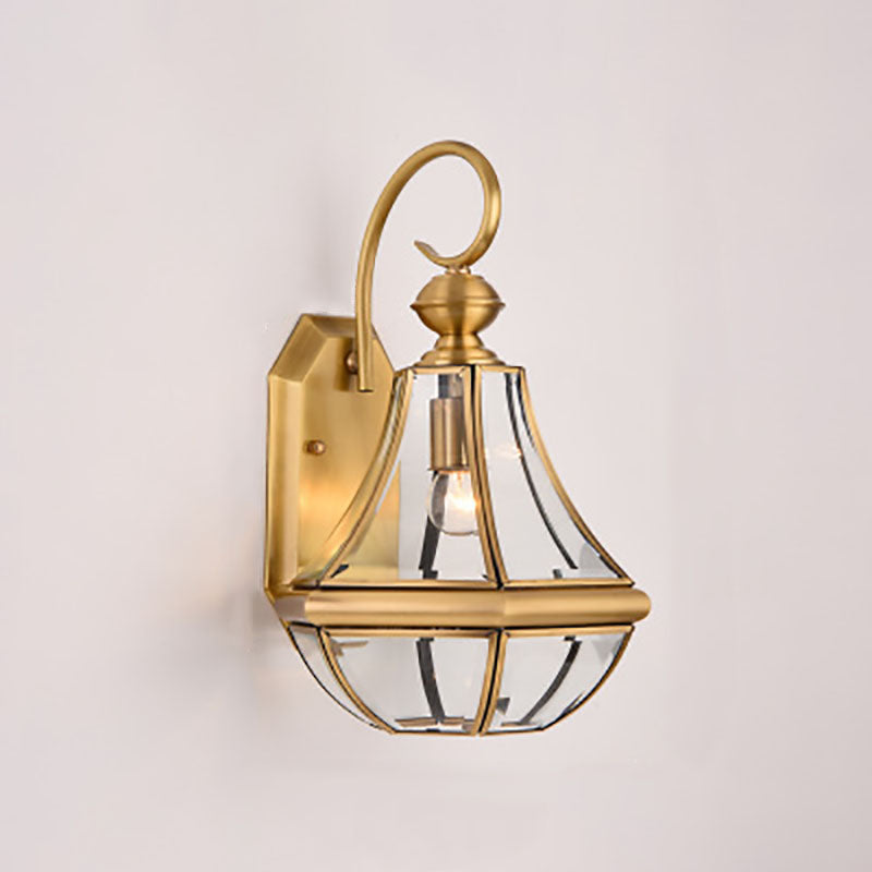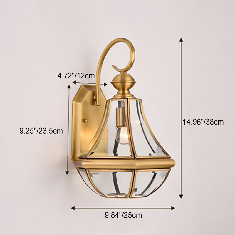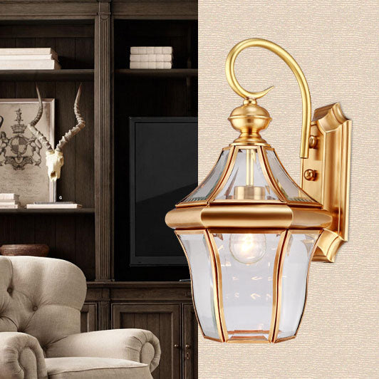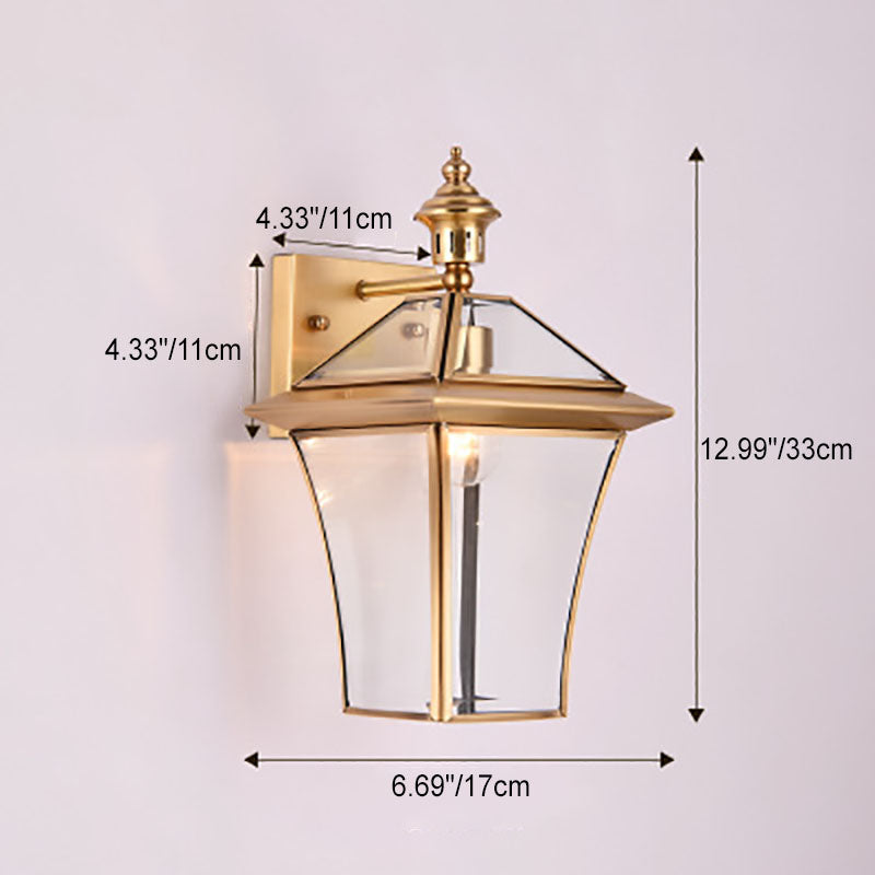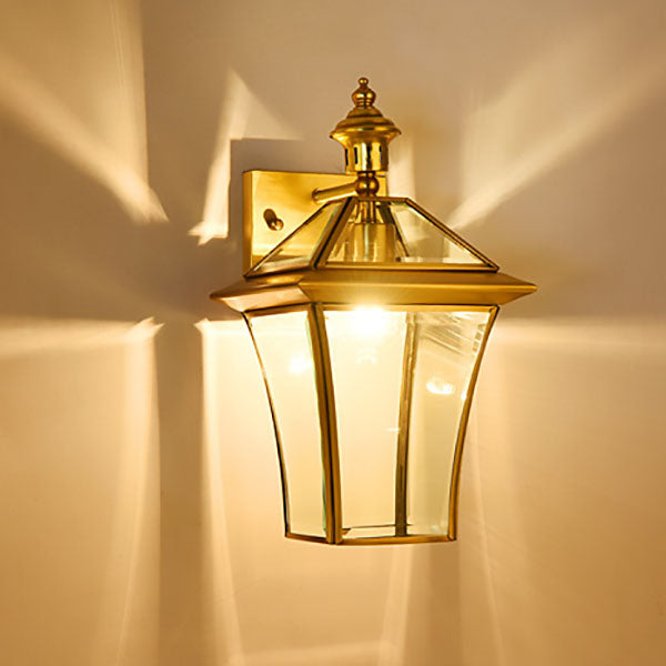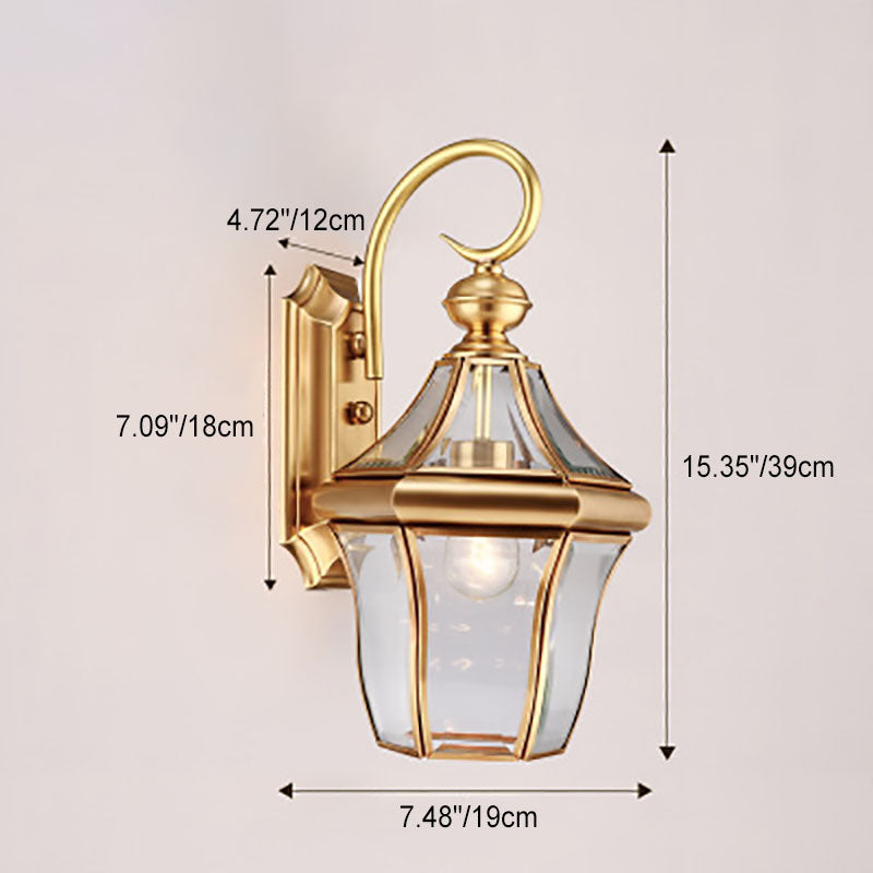 European Modern Luxury Hexagonal Lantern Brass Glass Waterproof 1-Light Outdoor Wall Sconce Lamp