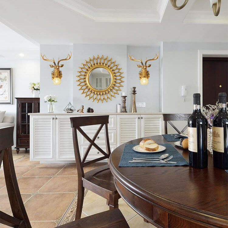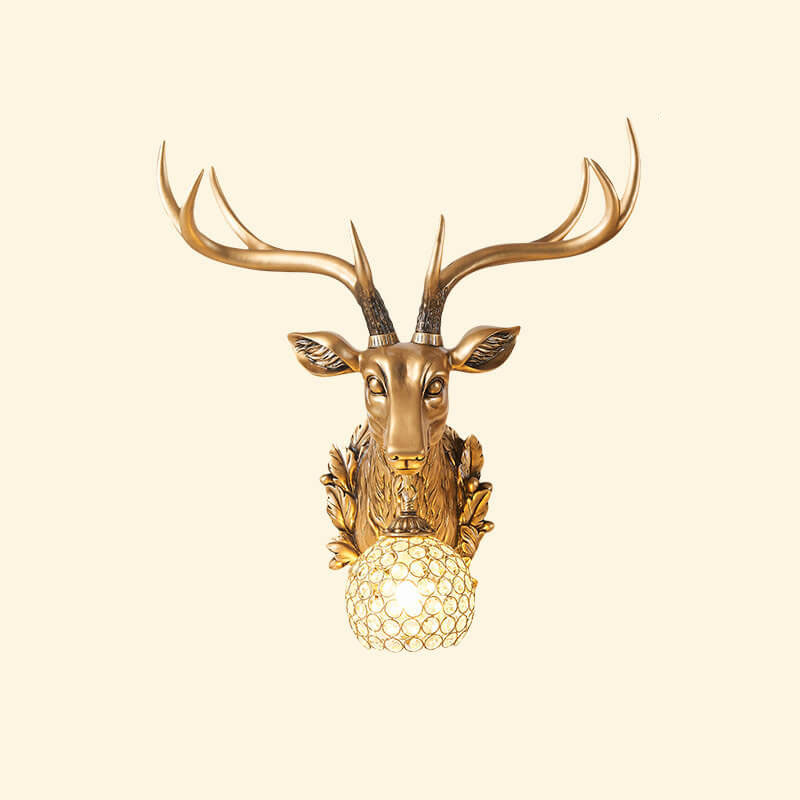 European Retro Deer Head Resin 1-Light Wall Sconce Lamp