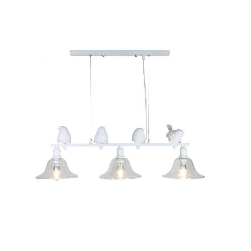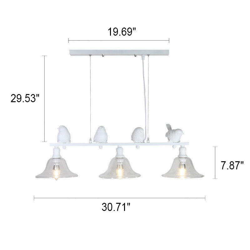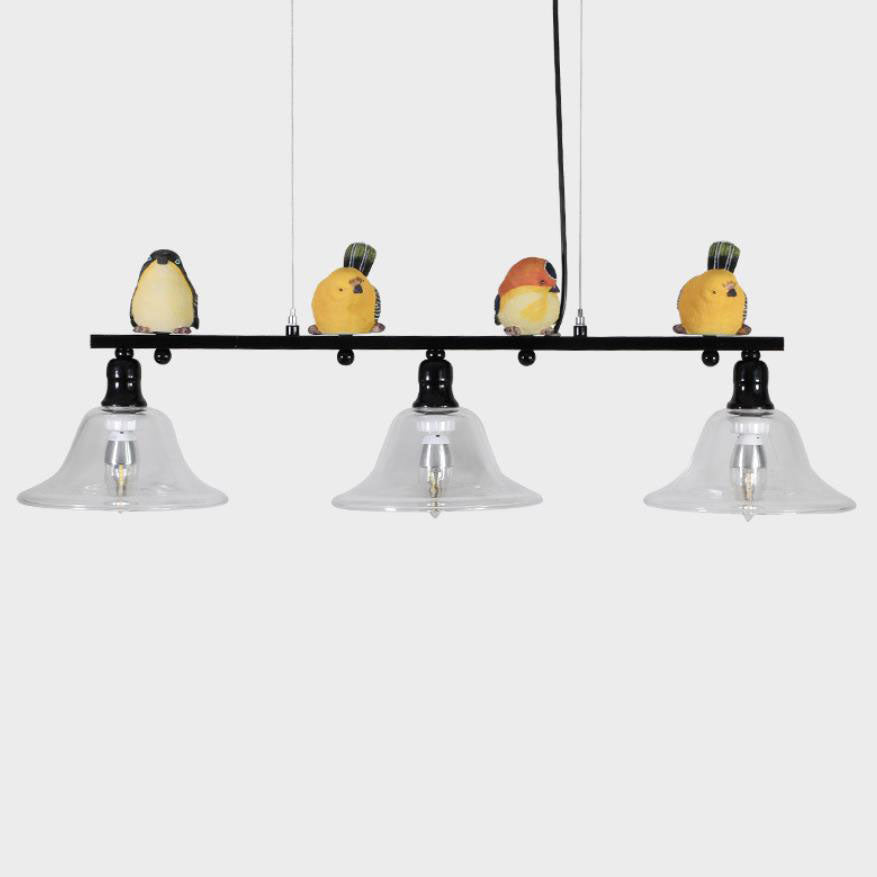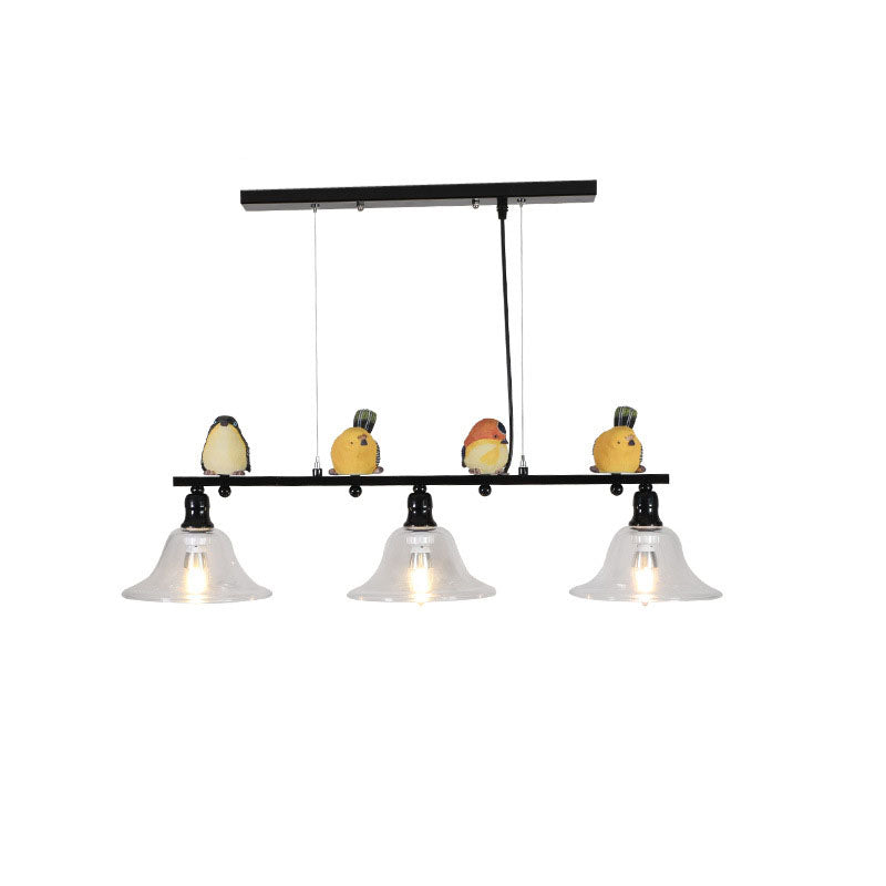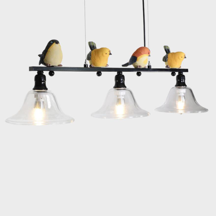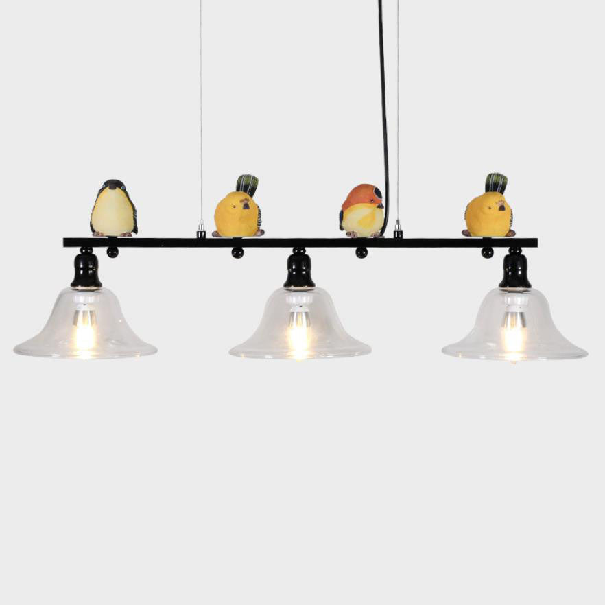 European Rustic Bird Iron Glass 3-Light Chandelier
