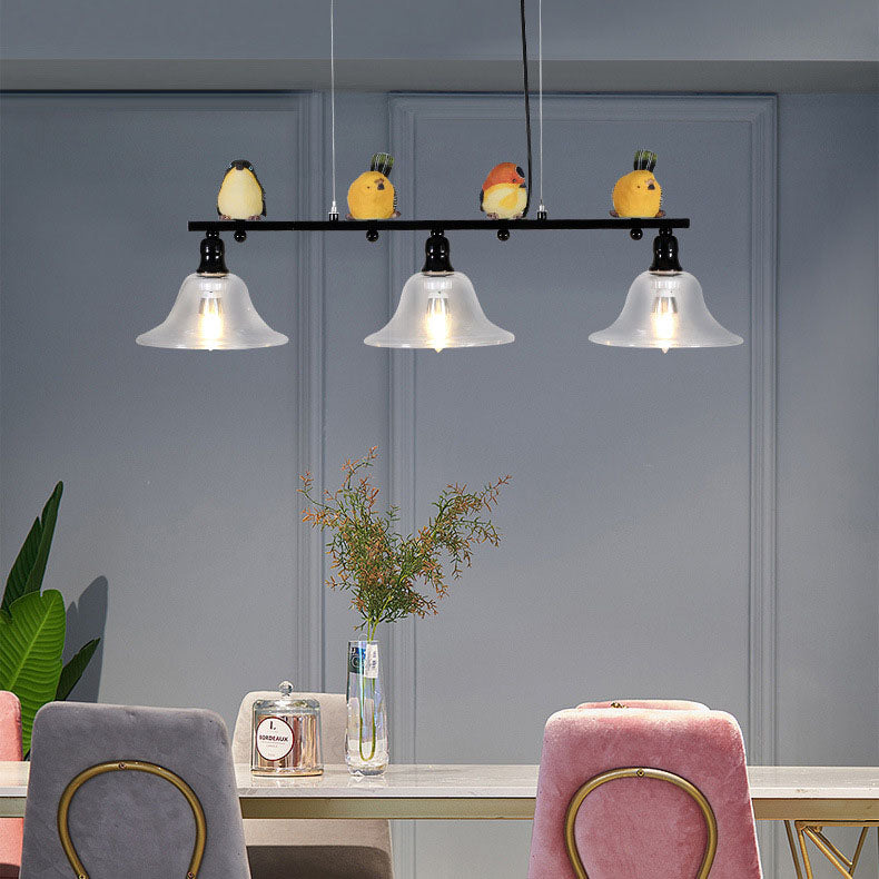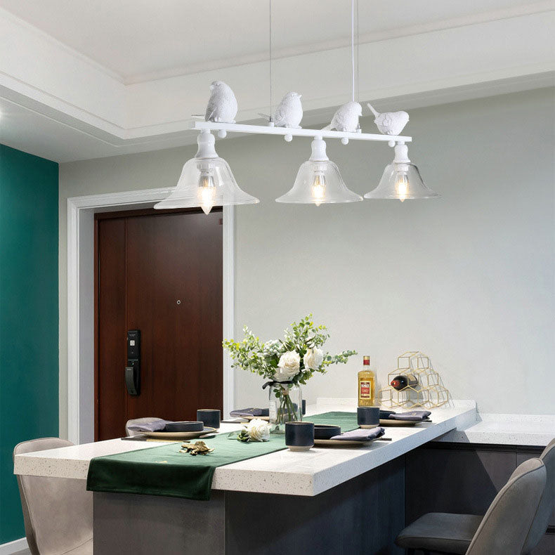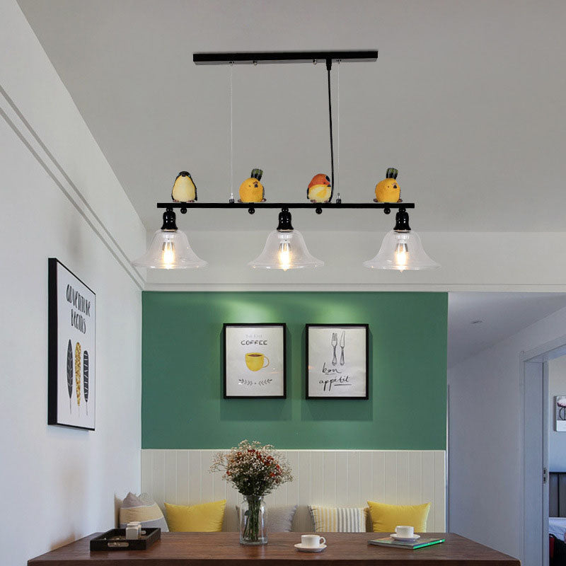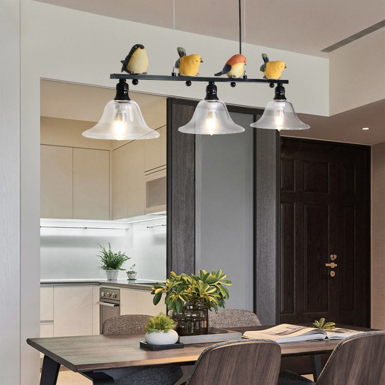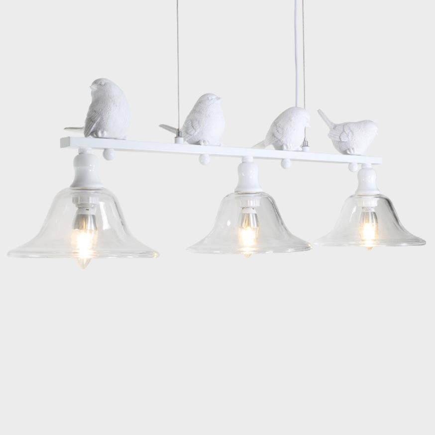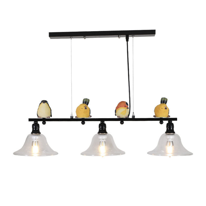 European Rustic Bird Iron Glass 3-Light Chandelier