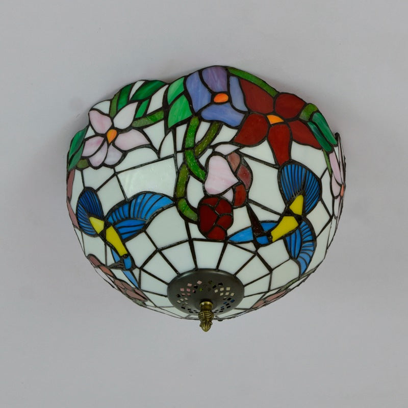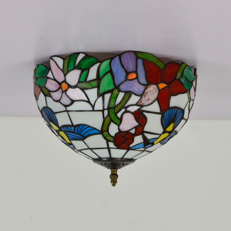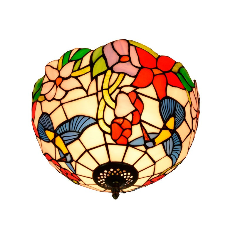 European Rustic Tiffany 2-Light Flush Mount Lighting